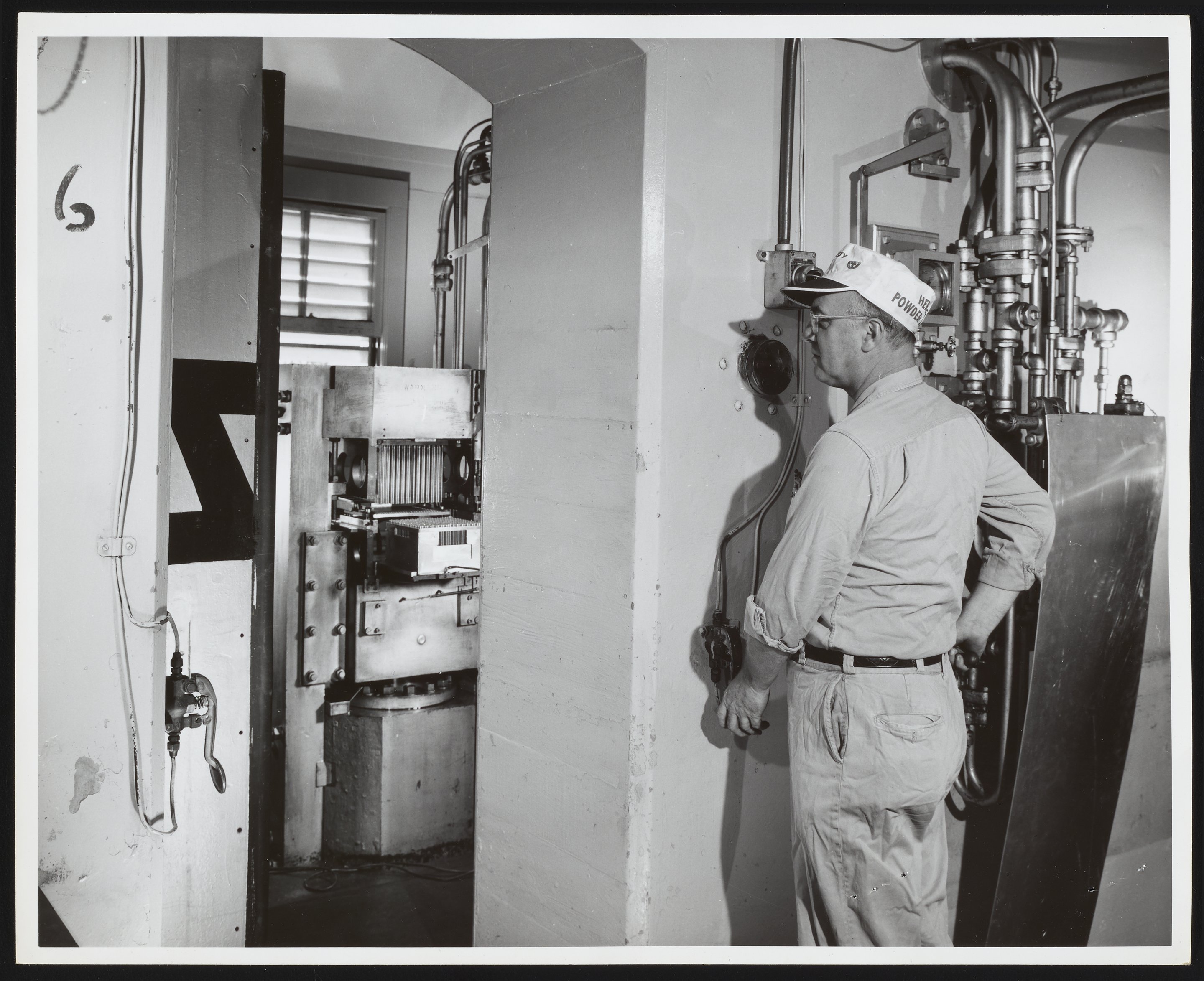 Hercules Incorporated. “Kenneth Newell Operating Press Machine at Hercules Port Ewen Plant,” 1960. Photographs from the Records & Ephemera of Hercules Incorporated, Box 2, Folder 38. Science History Institute. Philadelphia. https://digital.sciencehistory.org/works/vx021f61k.
