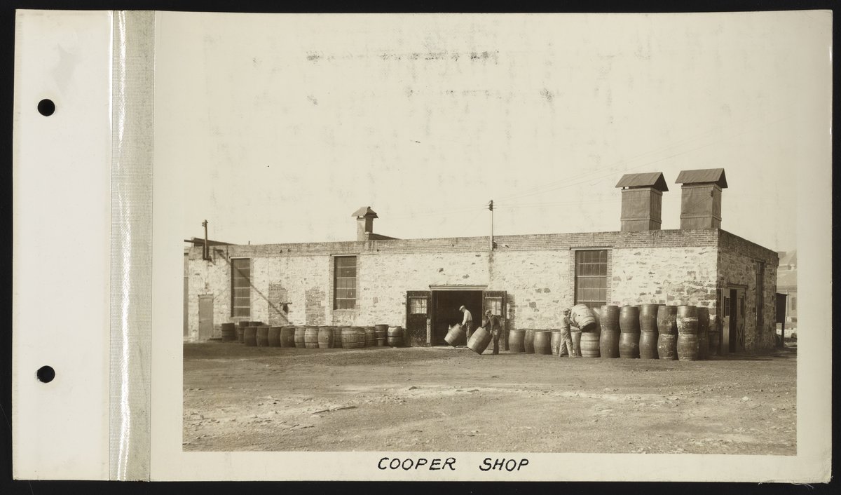 Sliker Photo Service, and Rohm and Haas Company. “Cooper Shop at Bridesburg Plant.” Exterior Views of Charles Lennig and Company Plant in Bridesburg, 1931. Rohm & Haas Company Archives, Box 27 (Photographs), Folder 8. Science History Institute. Philadelphia. https://digital.sciencehistory.org/works/vx021f898.