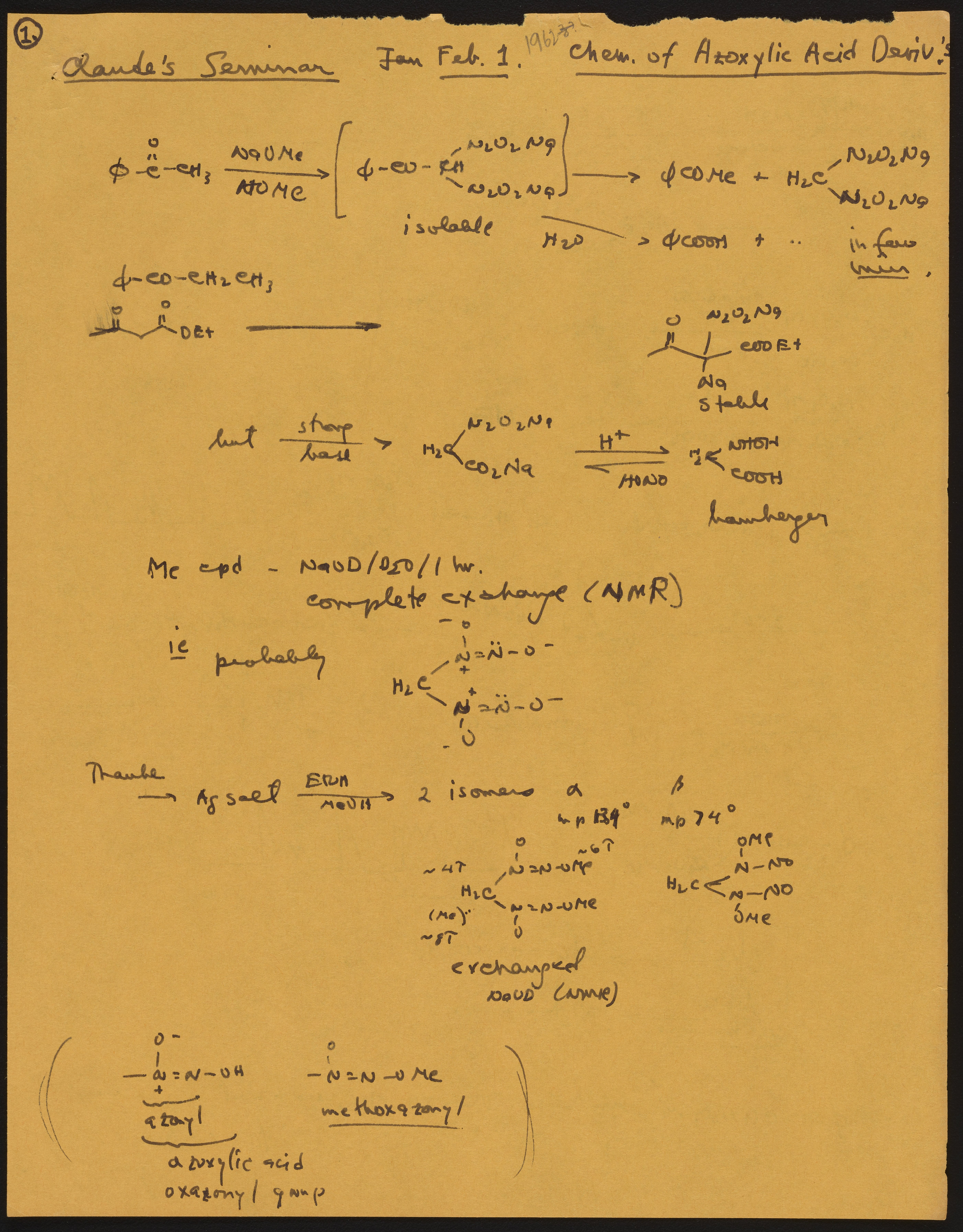 R. B. (Robert Burns) Woodward Seminar entitled "[Chemistry] of Azoxylic Acid [Derivatives]"