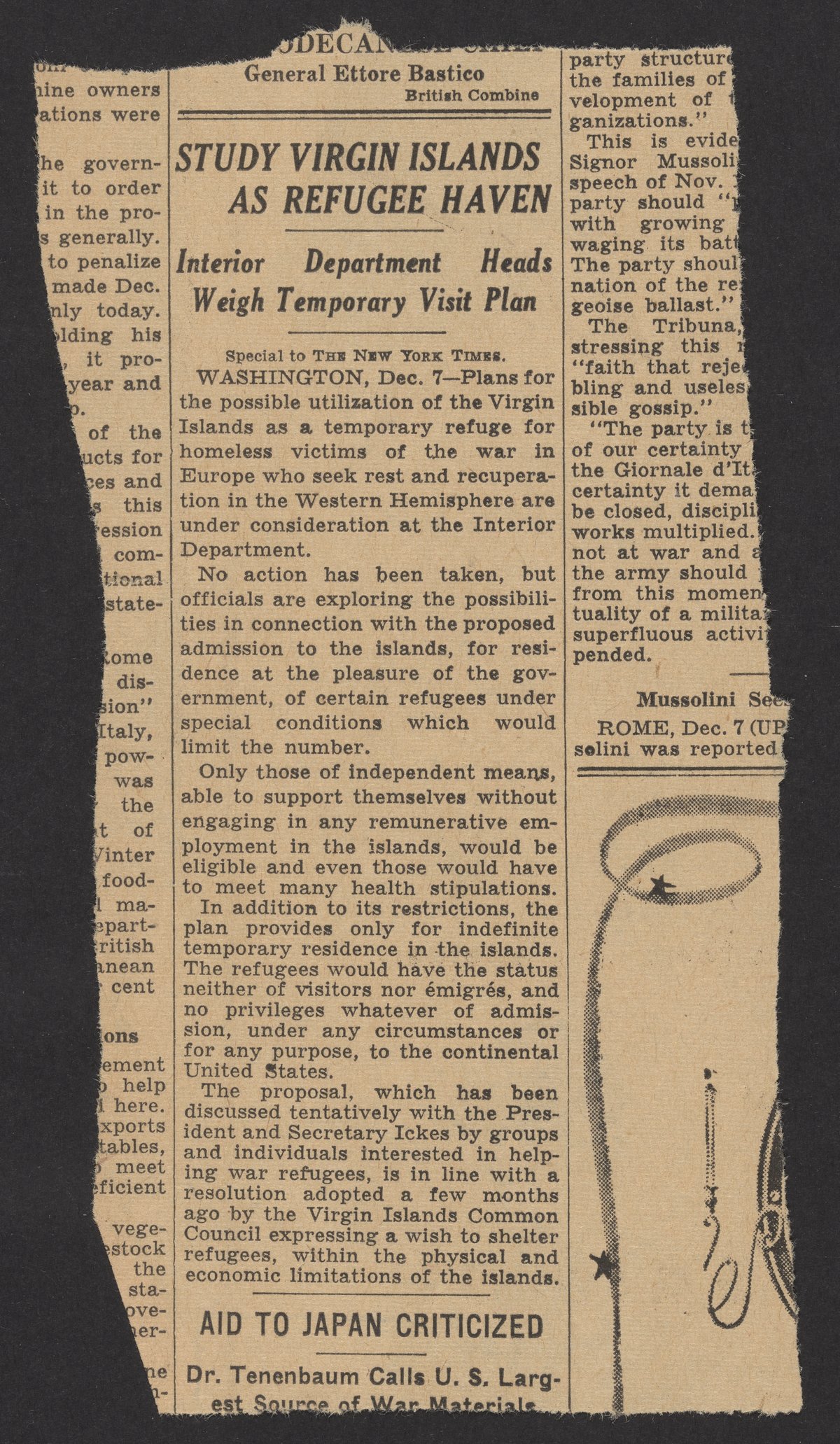 Study Virgin Islands As Refugee Haven; Interior Department Heads Weigh Temporary Visit Plan