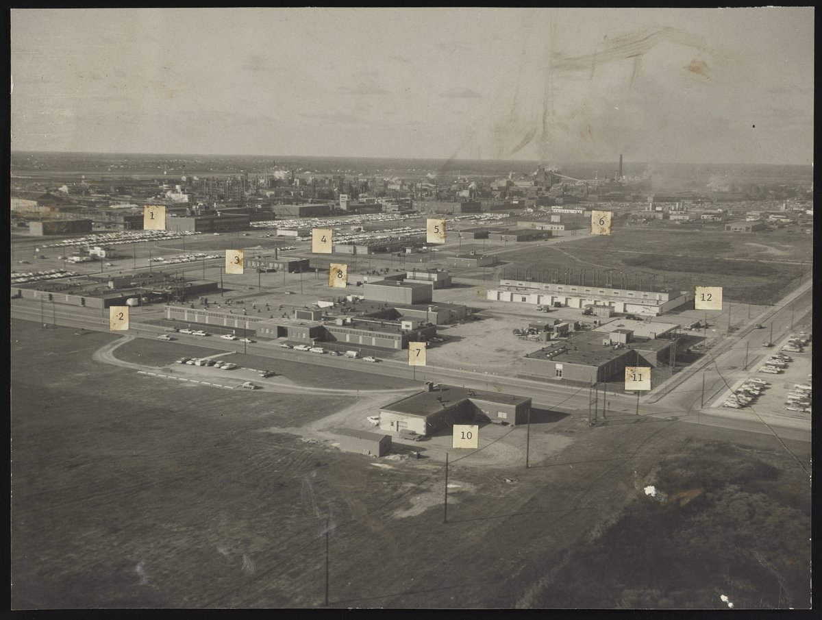 Dow Chemical Company. “Aerial View of Dow Chemical Company Research Center,” 1964. Dow Chemical Company Historical Image Collection, Box Oversized Plants 1. Science History Institute. Philadelphia. https://digital.sciencehistory.org/works/w0892995q.