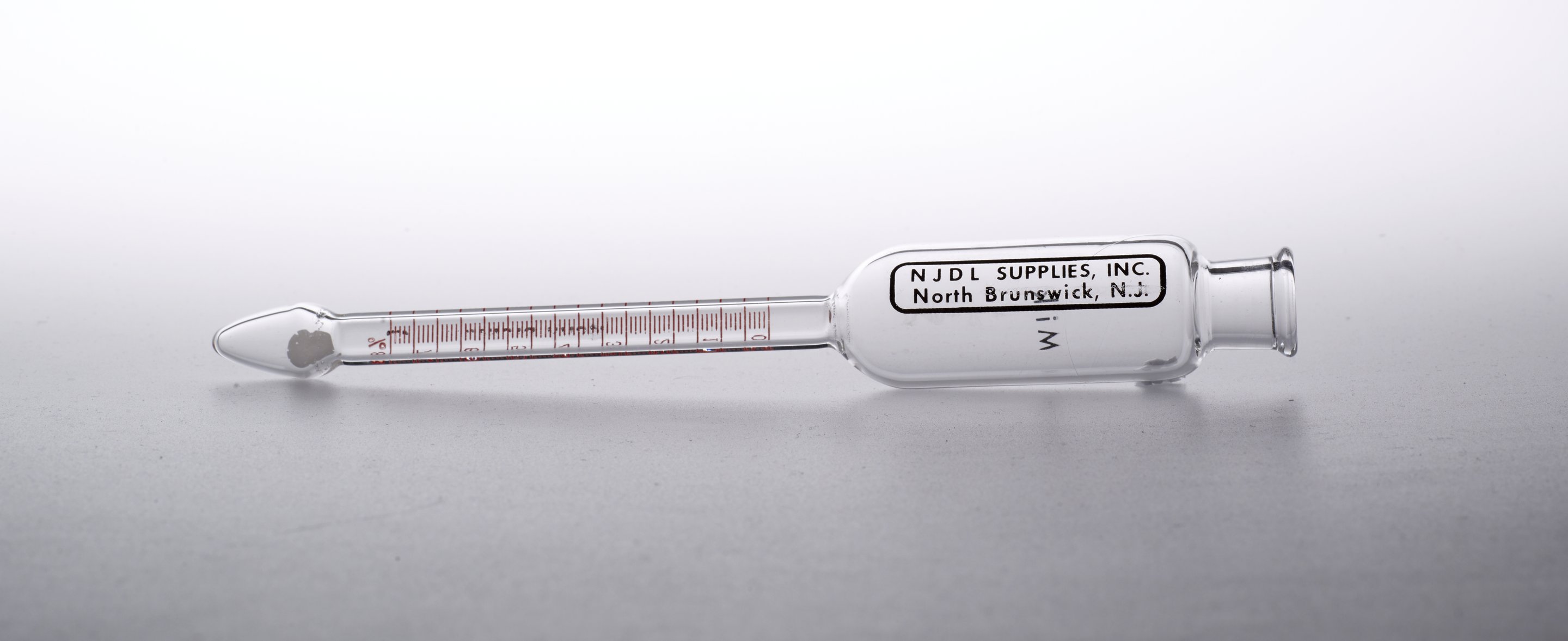 Small JPG1200 x 490px — 53.5 KBLarge JPG2880 x 1177px — 197 KBFull-sized JPG6772 x 2768px — 940 KBOriginal fileTIFF — 6772 x 2768px — 53.6 MBPyrex 70% Gerber Bottle - A glass tube bottle with bulbous ends and a flattened midsection. The mid-section has measurements from 0 to 70 mL. One end is inscribed in red "Cheese".