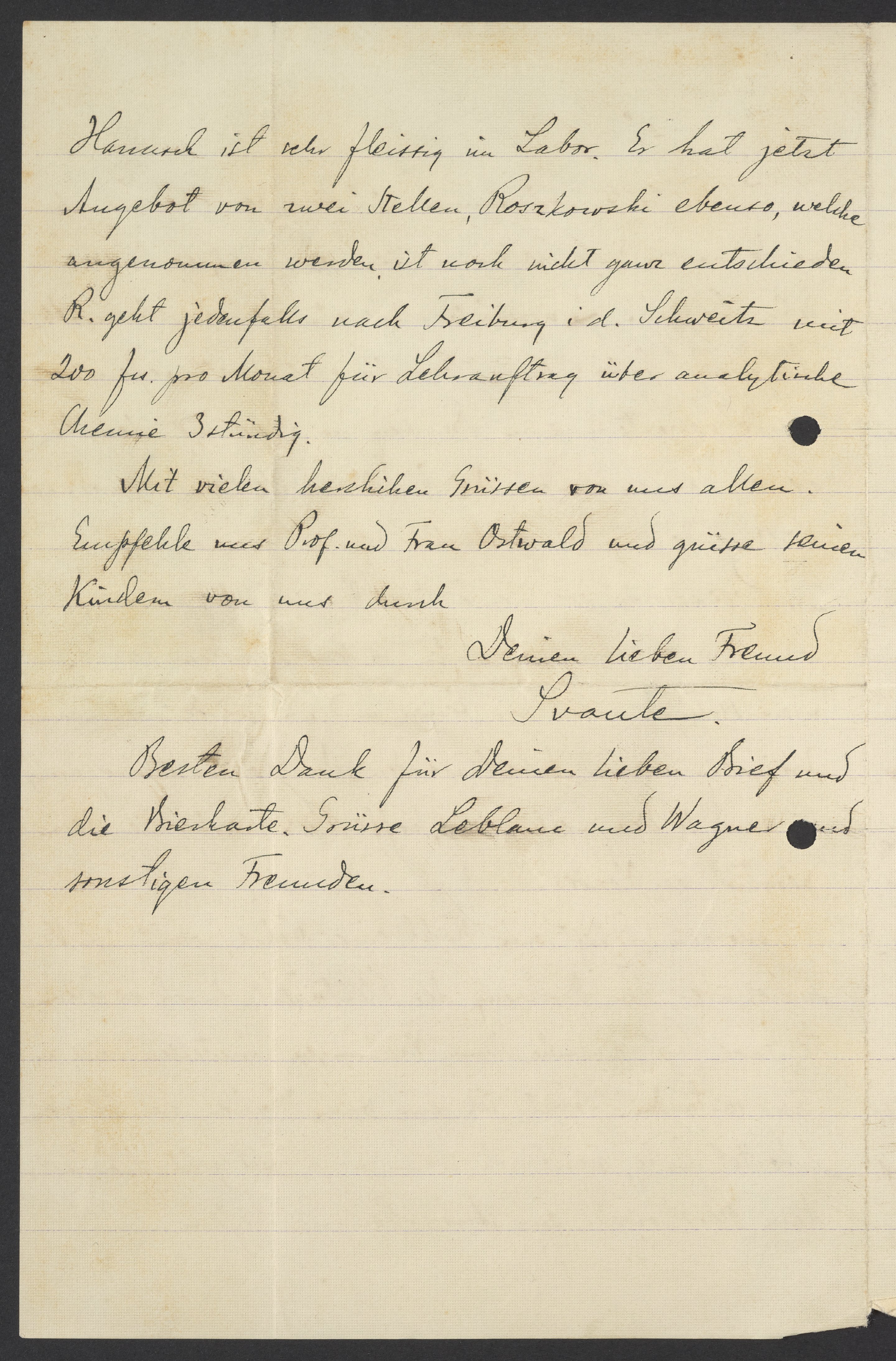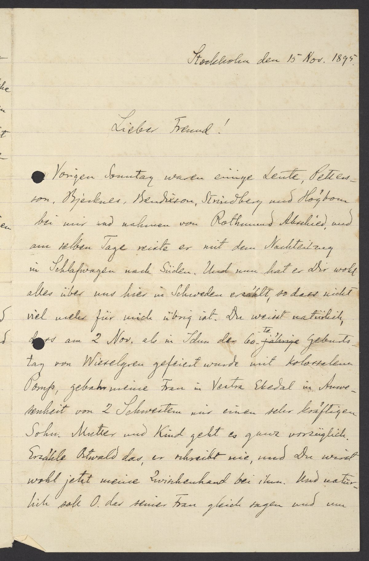 Letter from Svante Arrhenius to Georg Bredig, November 1895