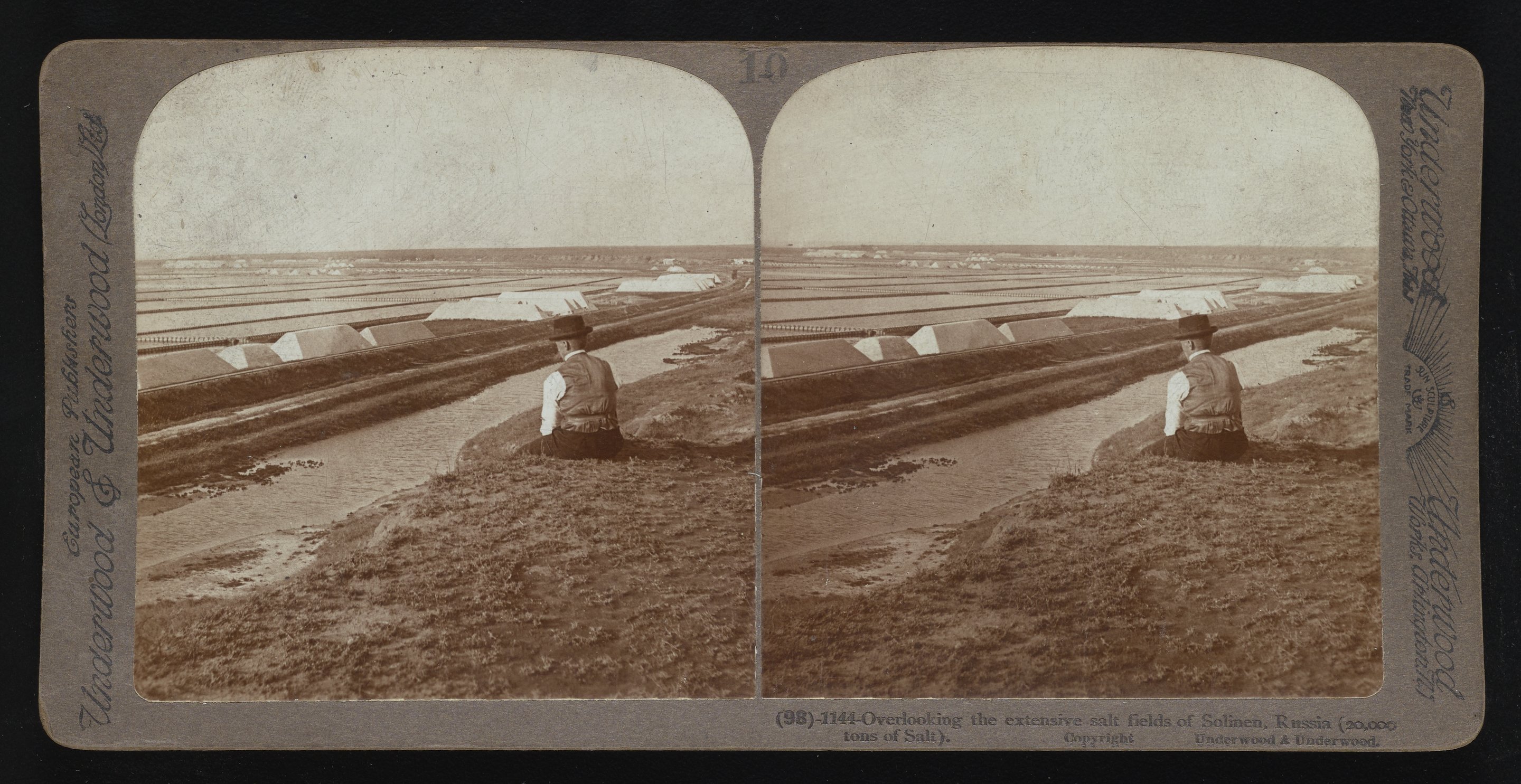 “Overlooking the Extensive Salt Fields of Solinen, Russia (20,000 Tons of Salt).” Underwood & Underwood, n.d. Underwood & Underwood Stereographs of Manufacturing Industries. Science History Institute. Philadelphia. https://digital.sciencehistory.org/works/w66343603.
