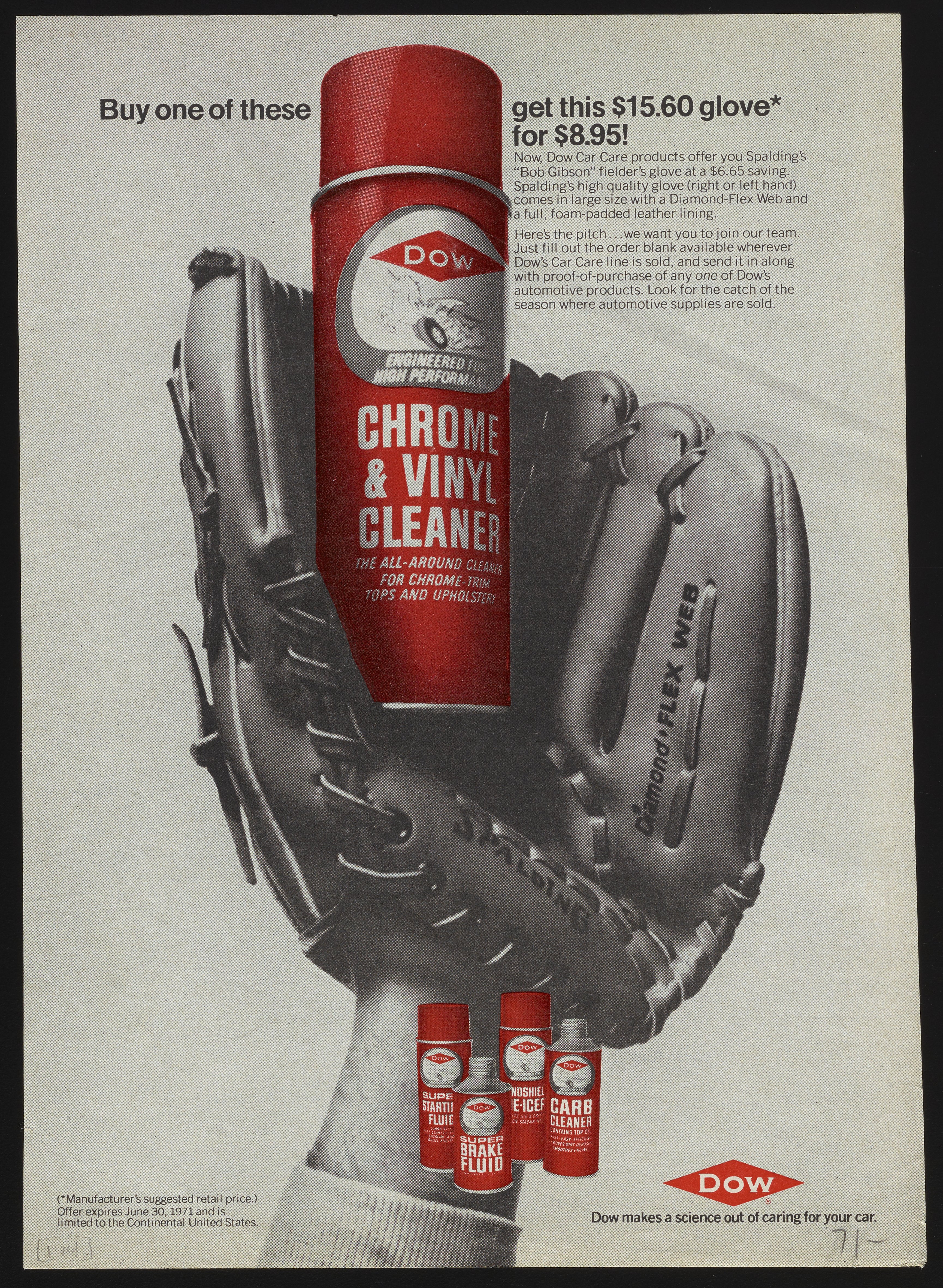 Dow Chemical Company. “Advertisement for Dow Car Care Products,” 1971. Advertisements from the Dow Chemical Historical Collection, Box 7. Science History Institute. Philadelphia. https://digital.sciencehistory.org/works/w6634438s.