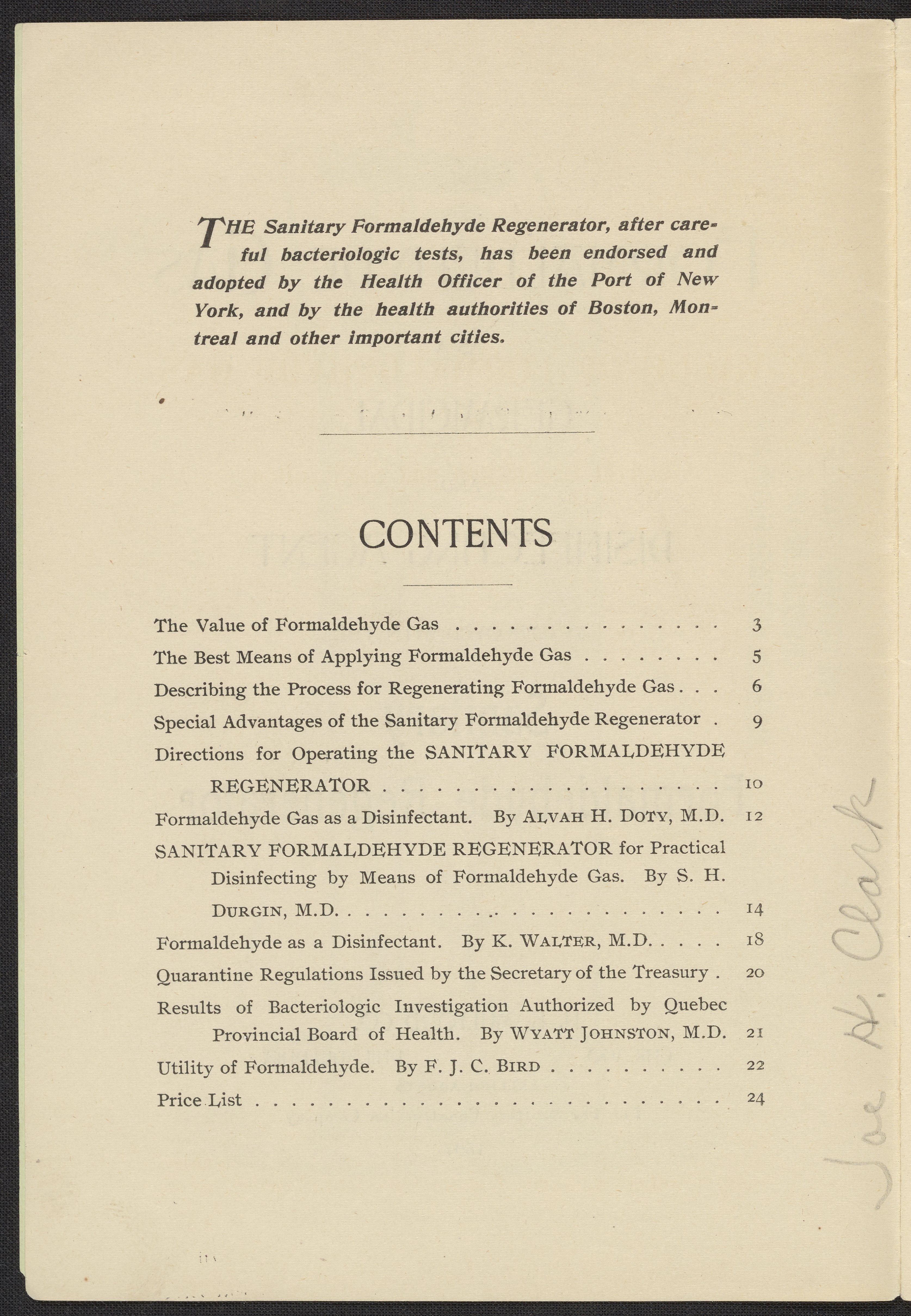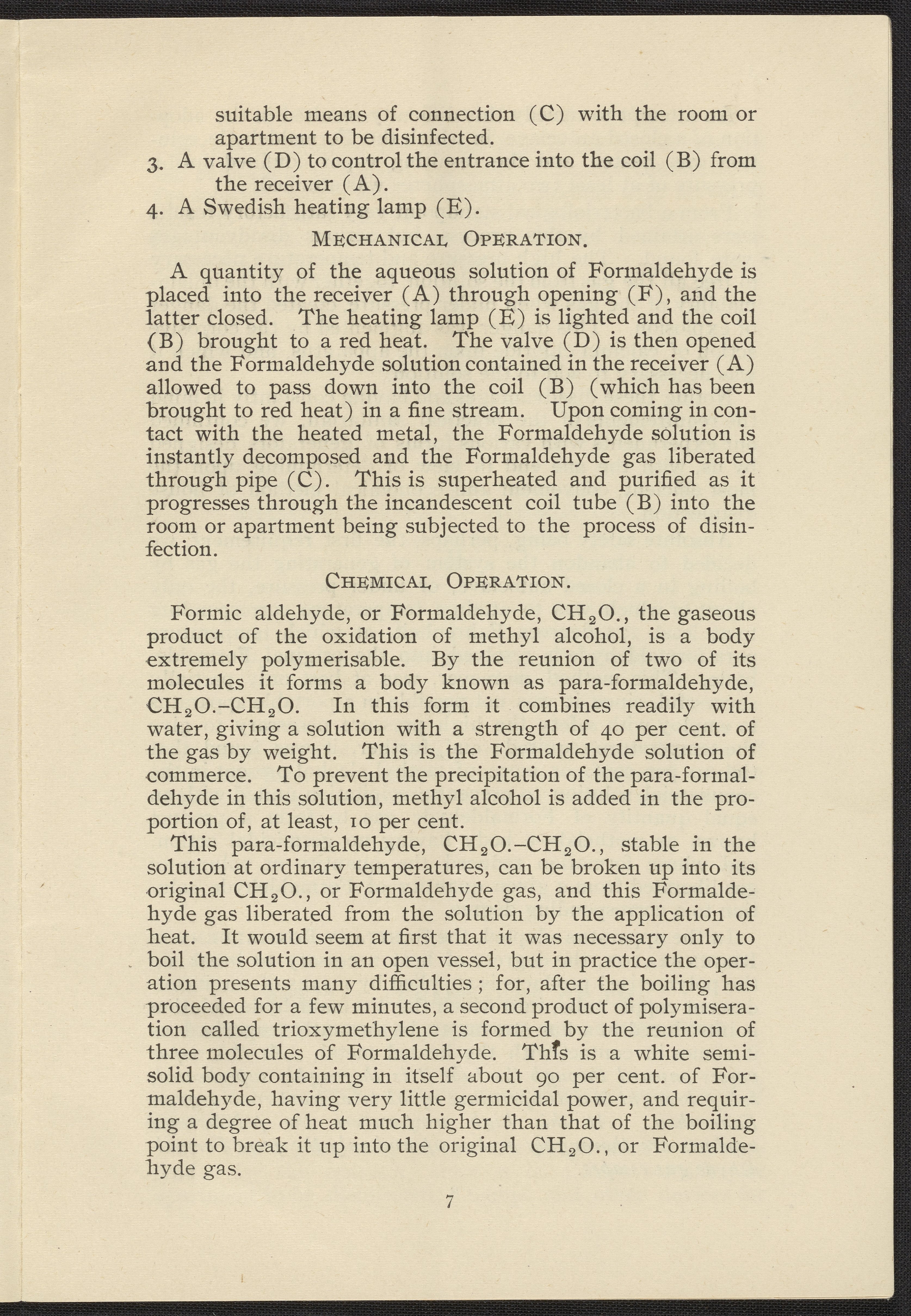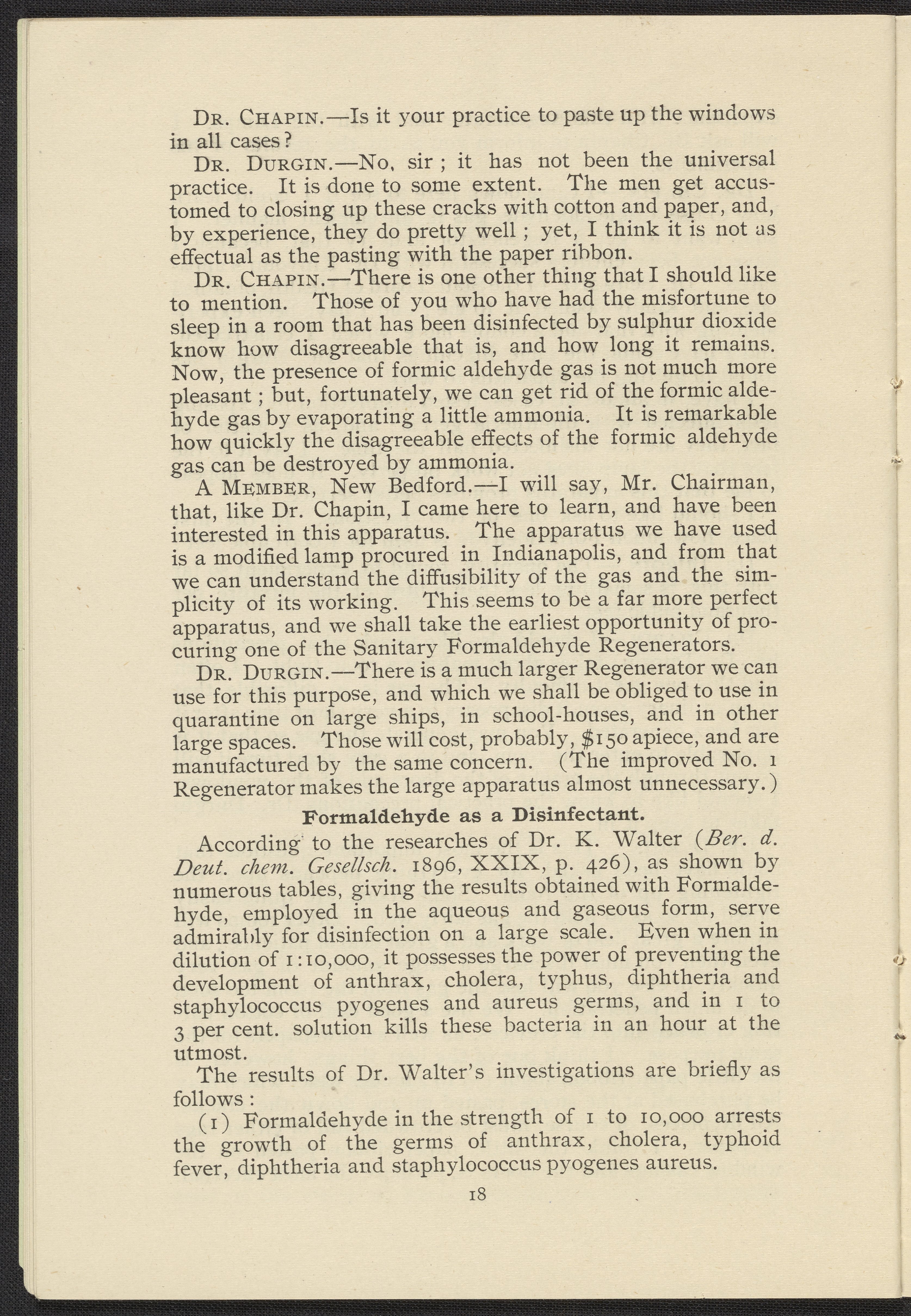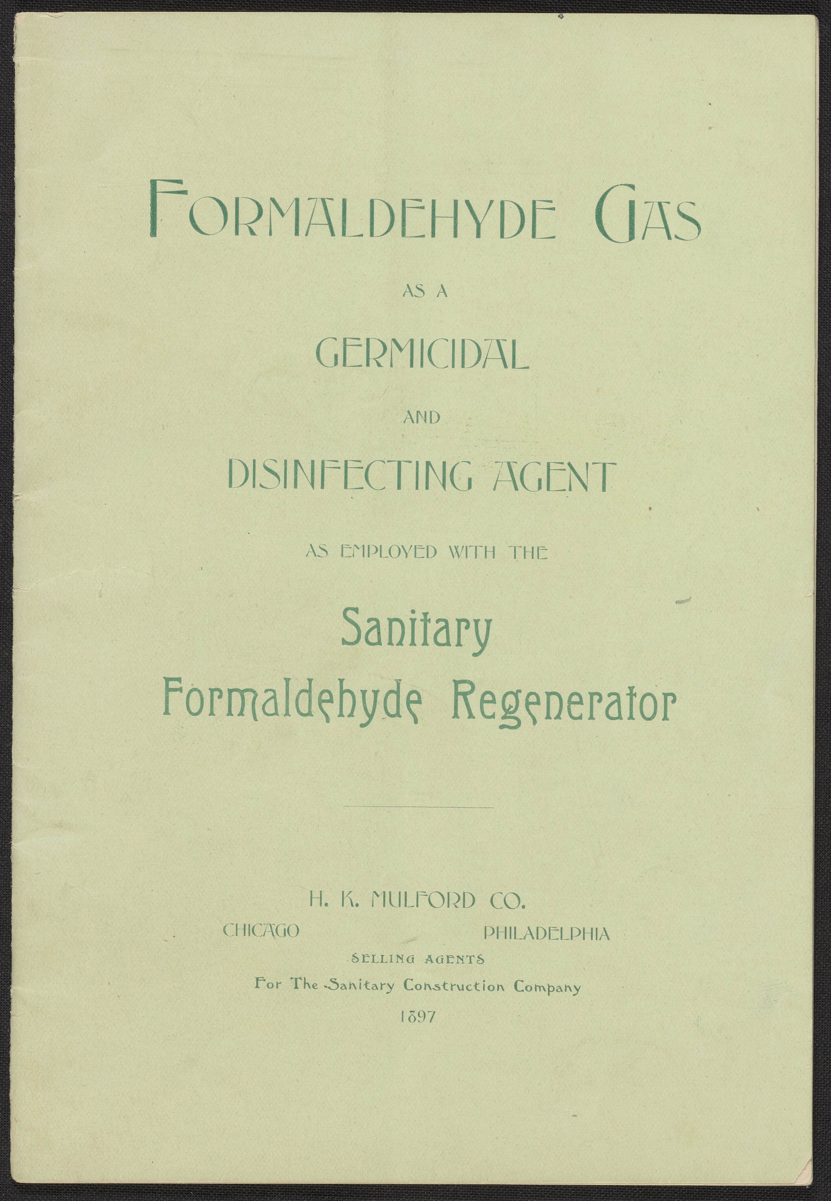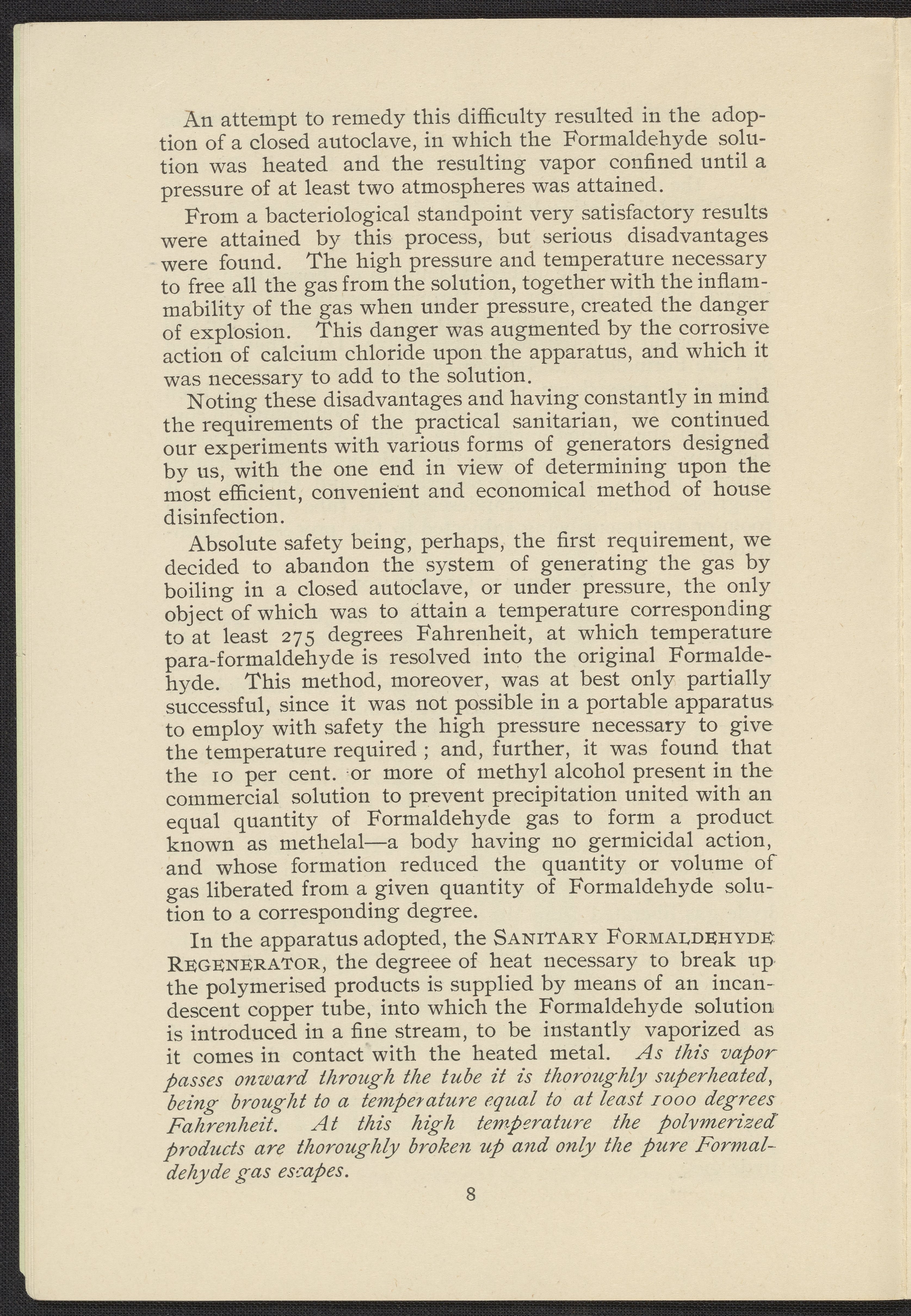 Formaldehyde Gas as a Germicidal and Disinfecting Agent as Employed with the Sanitary Formaldehyde Regenerator