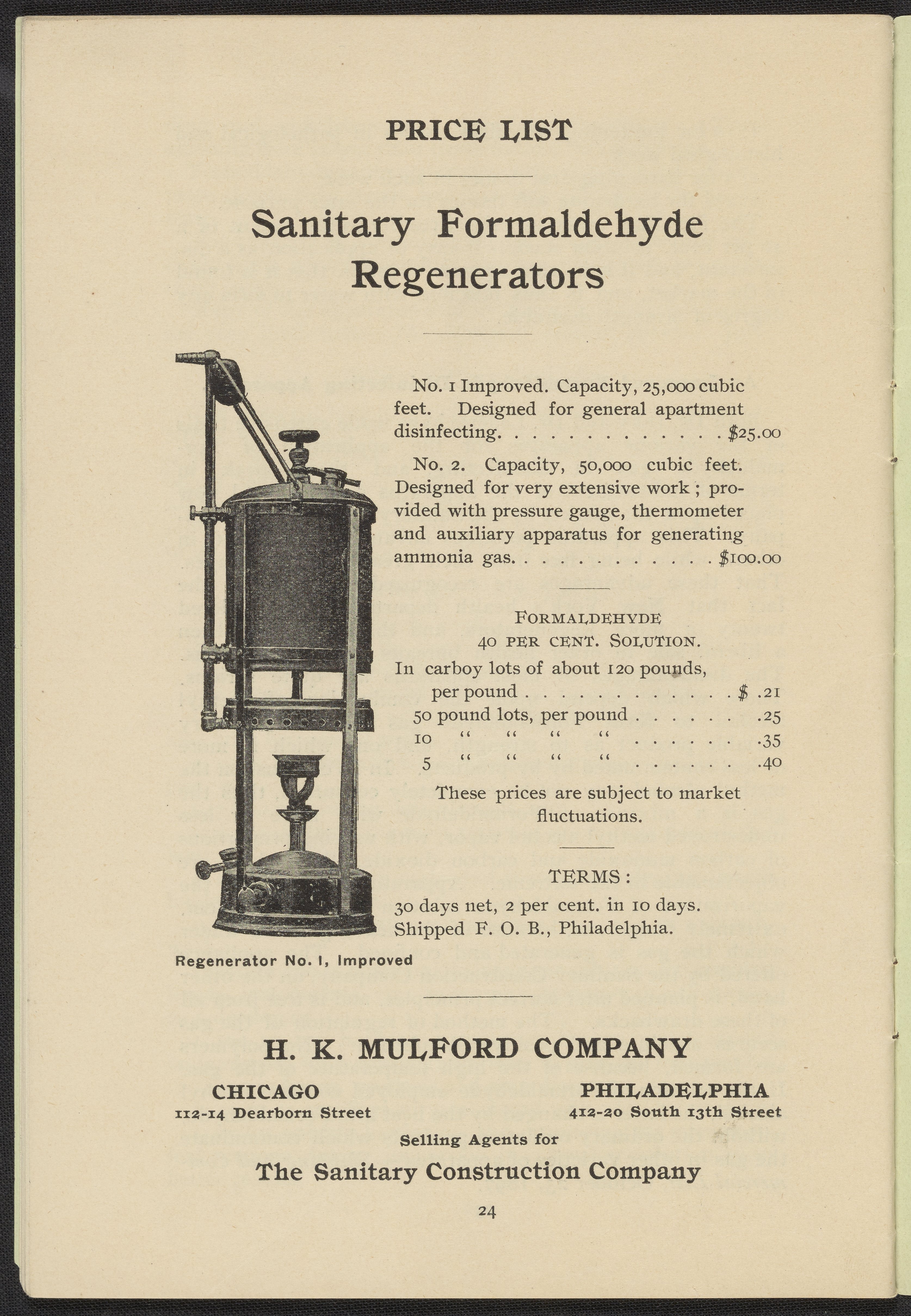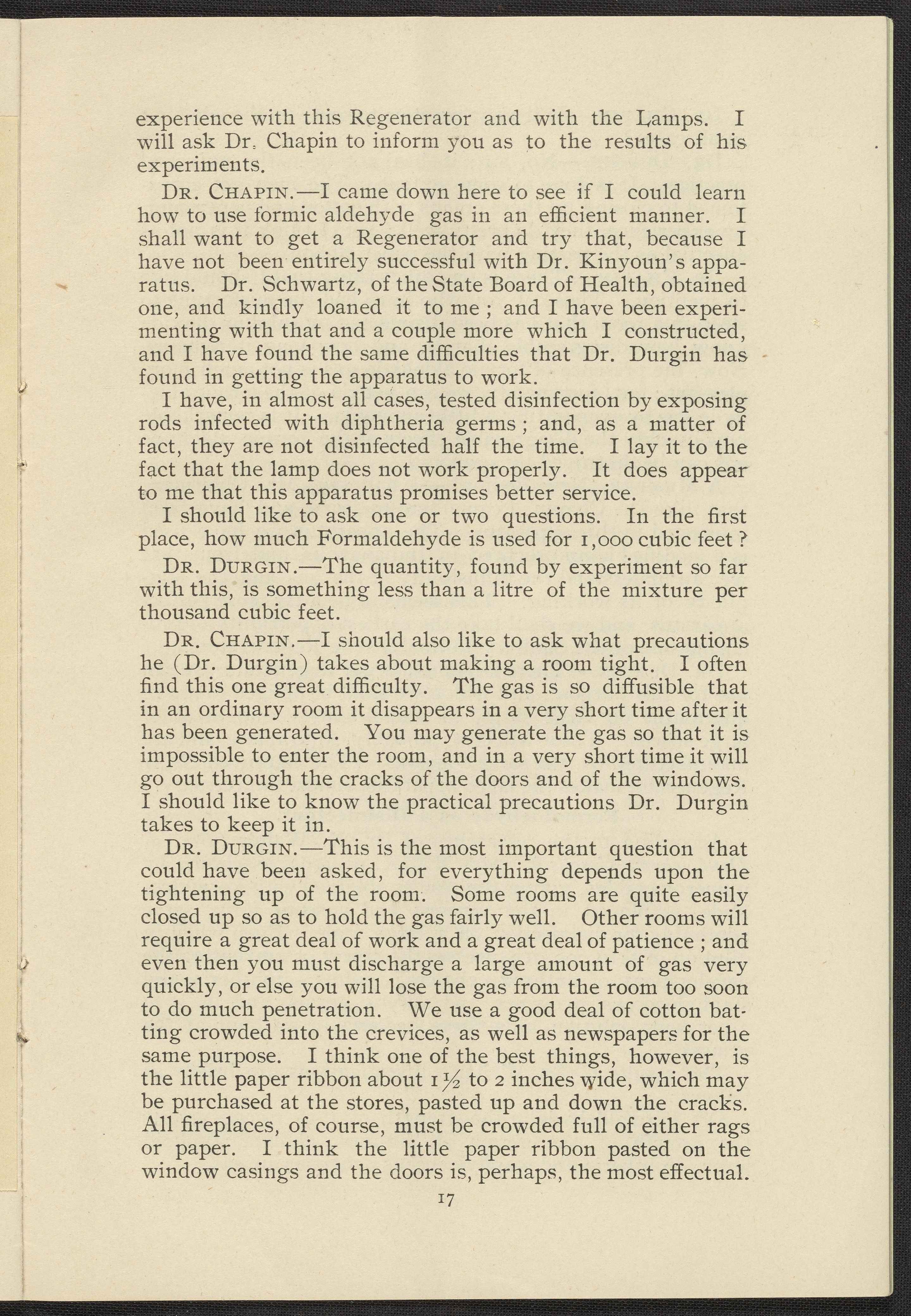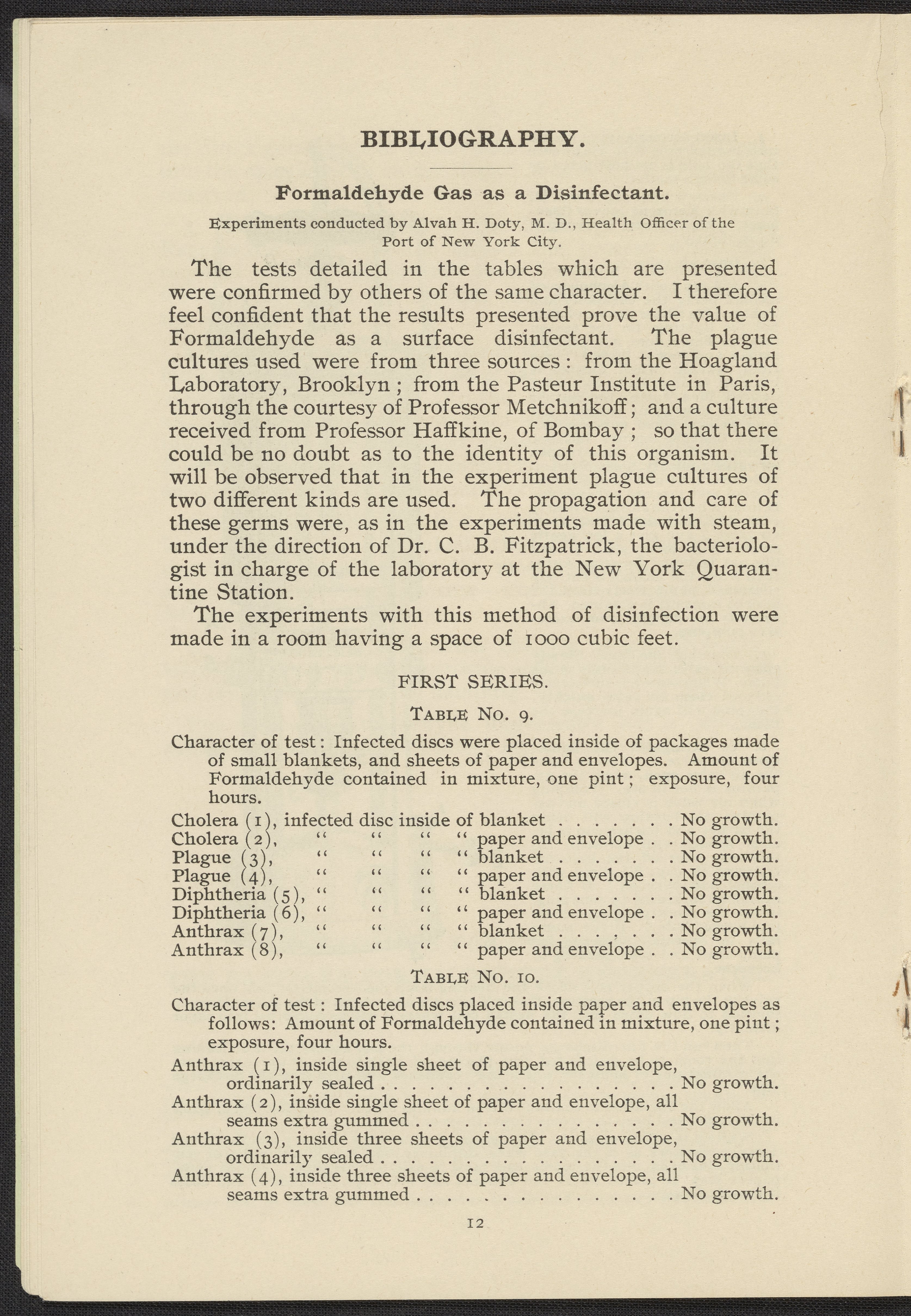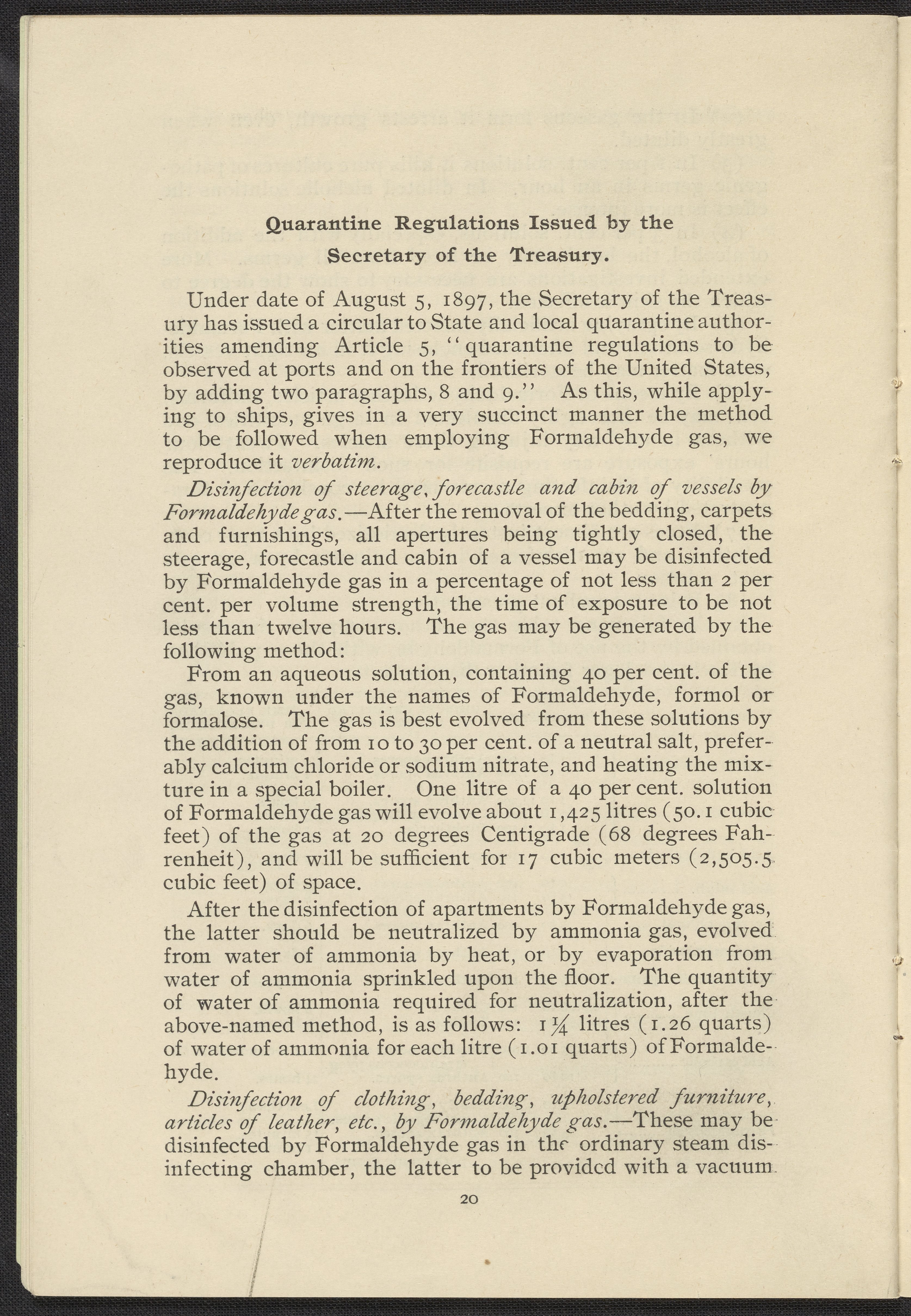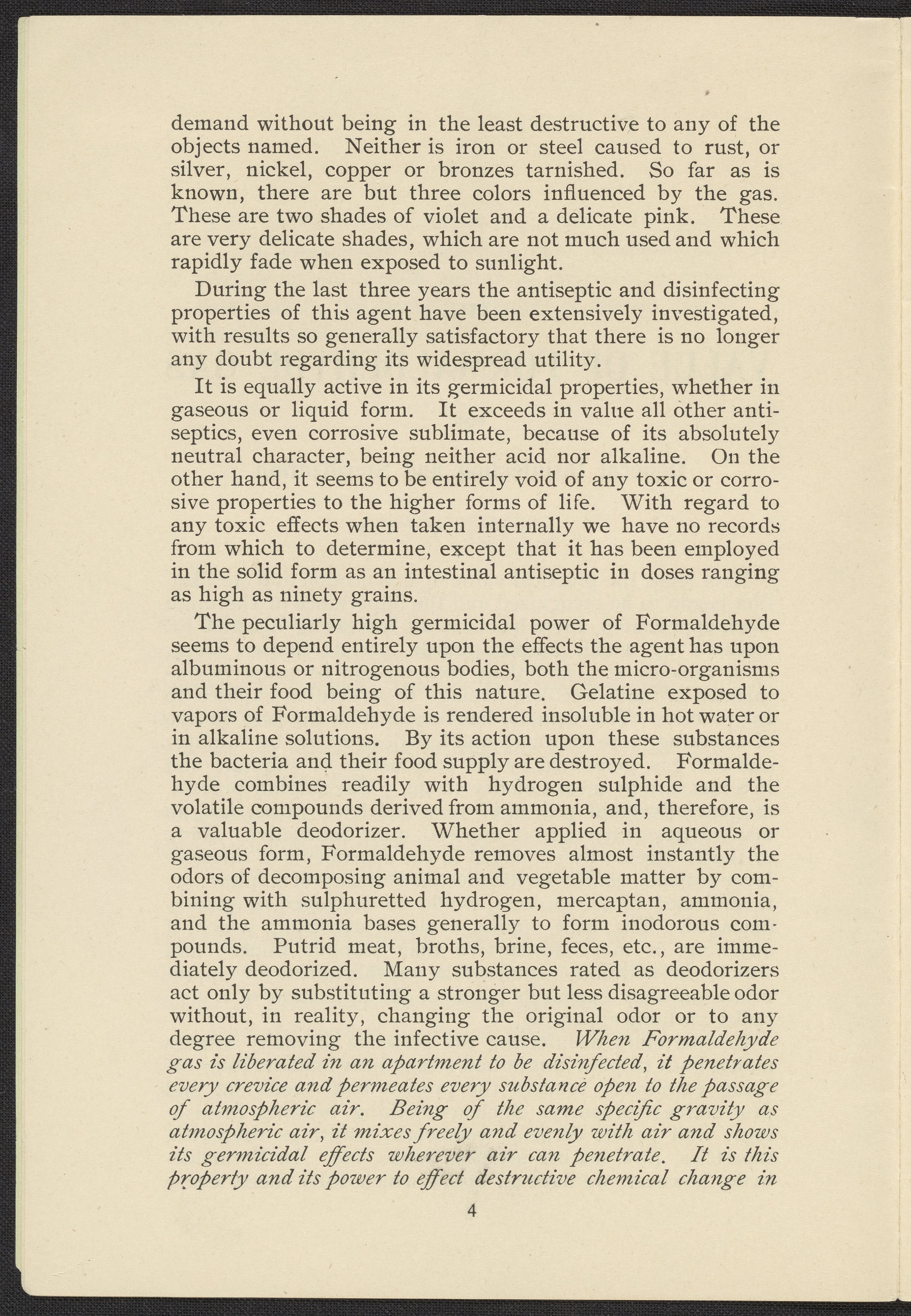 Formaldehyde Gas as a Germicidal and Disinfecting Agent as Employed with the Sanitary Formaldehyde Regenerator
