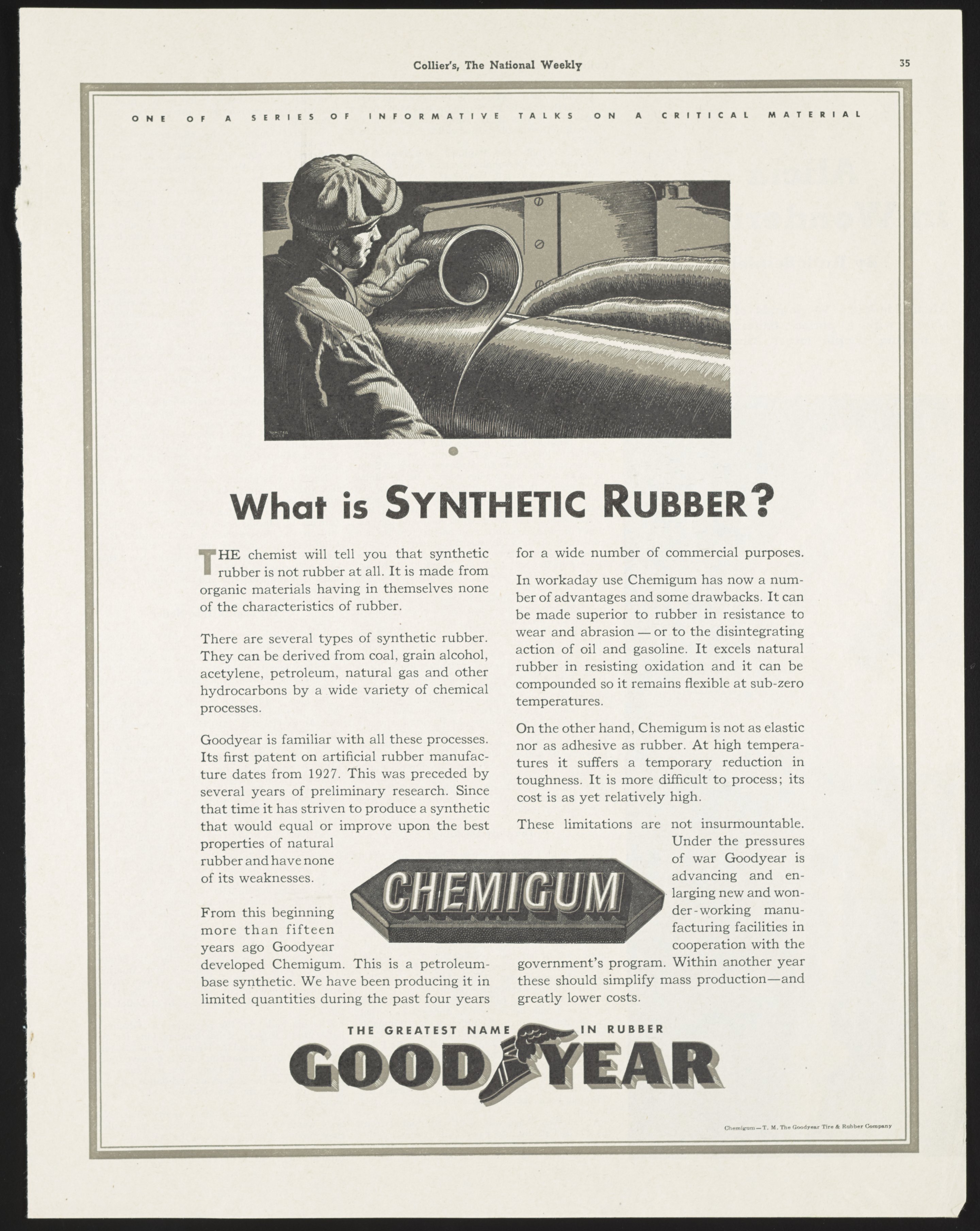 Cole, Walter. “What Is Synthetic Rubber?,” 1942. Science History Institute. Philadelphia. https://digital.sciencehistory.org/works/w95050635.