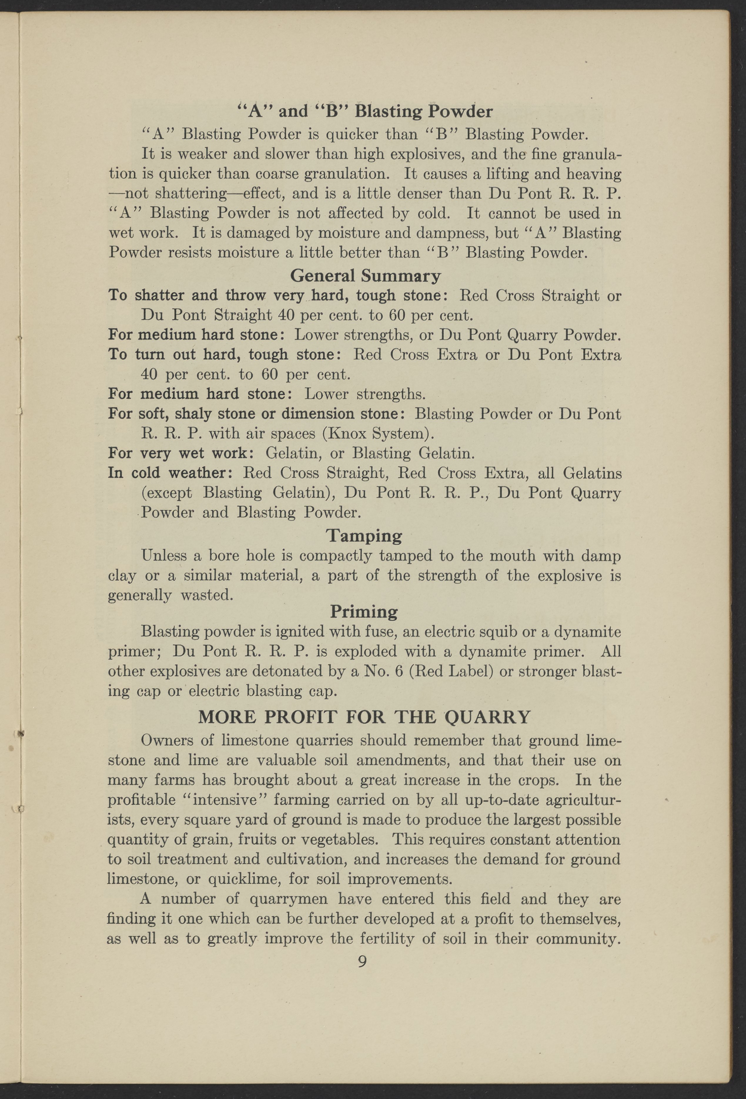 Explosives for quarry blasting : practical information relating to the selection of explosives and methods of application to assure the most satisfactory results