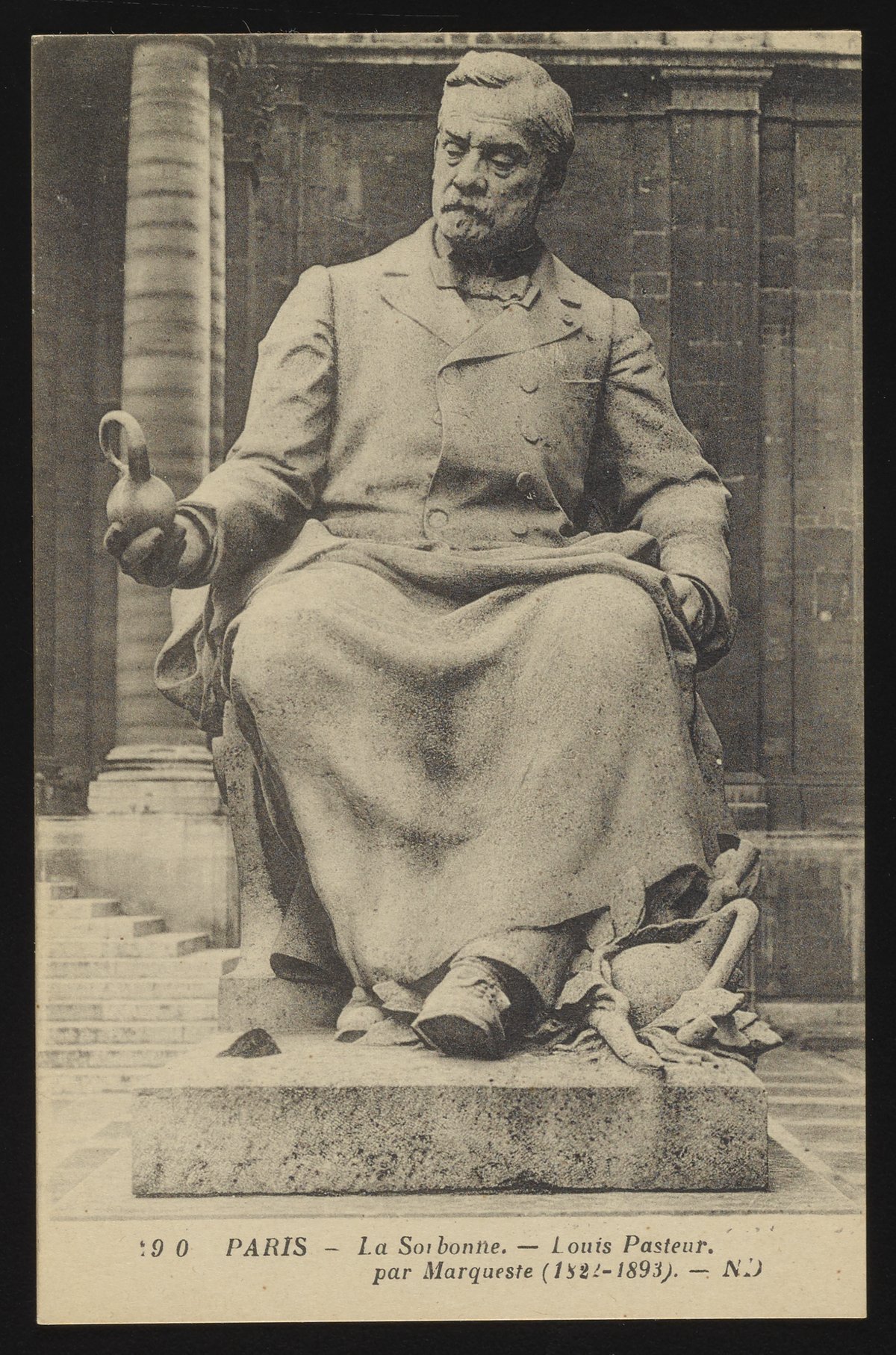 Lévy et Neurdein réunis. “Postcard - La Sorbonne - Louis Pasteur Par Marqueste.” Paris, France, circa 1920. Fisher-Pasteur Memorial Collection, Box 1, Folder 24. Science History Institute. Philadelphia. https://digital.sciencehistory.org/works/wd375w35b.