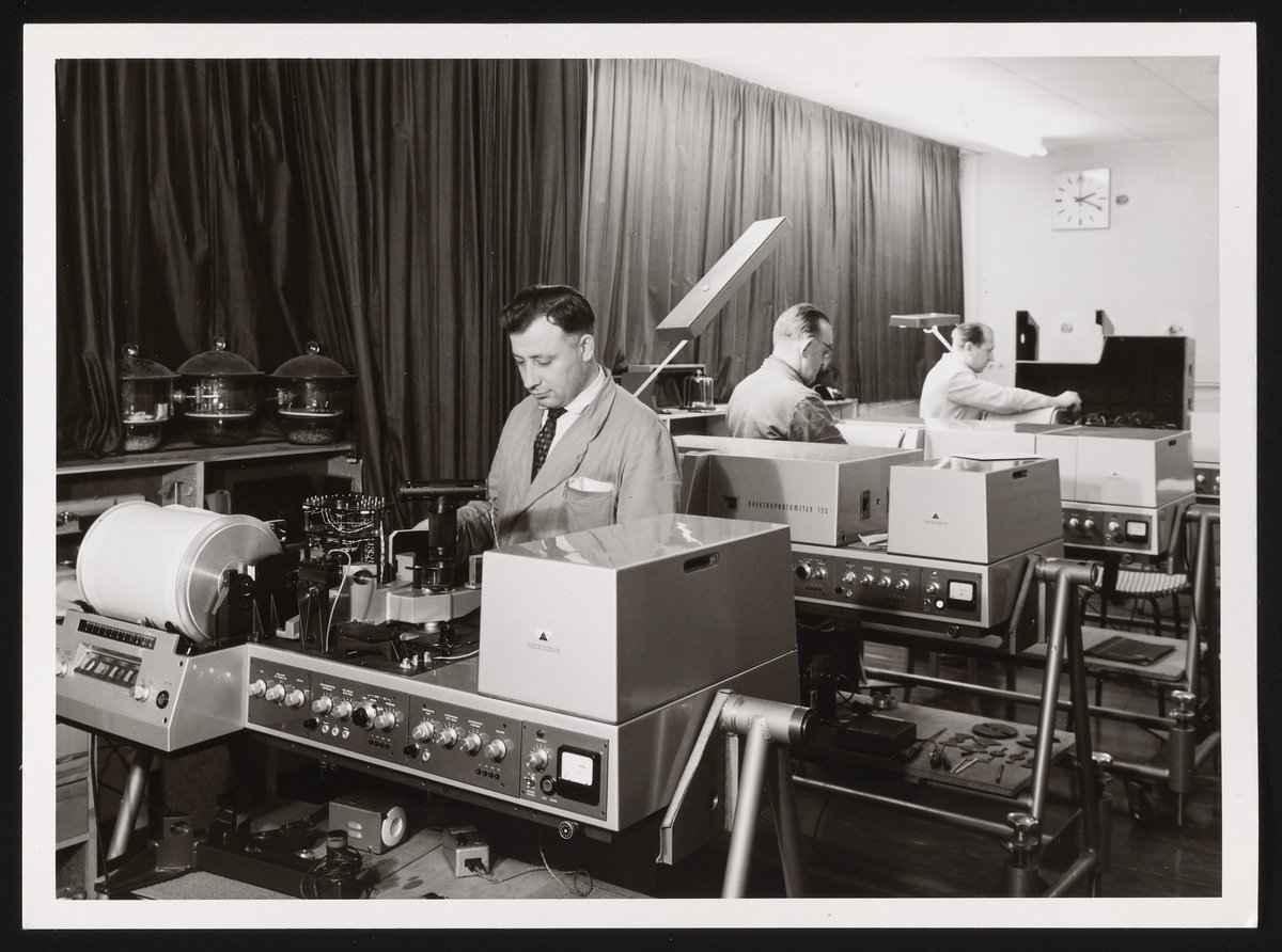 Perkin-Elmer Corporation. “Test Shop for Perkin-Elmer Spectrophotometer,” n.d. Photographs from the Perkin-Elmer-Applera Collection, Box 1. Science History Institute. Philadelphia. https://digital.sciencehistory.org/works/wd375x10p.