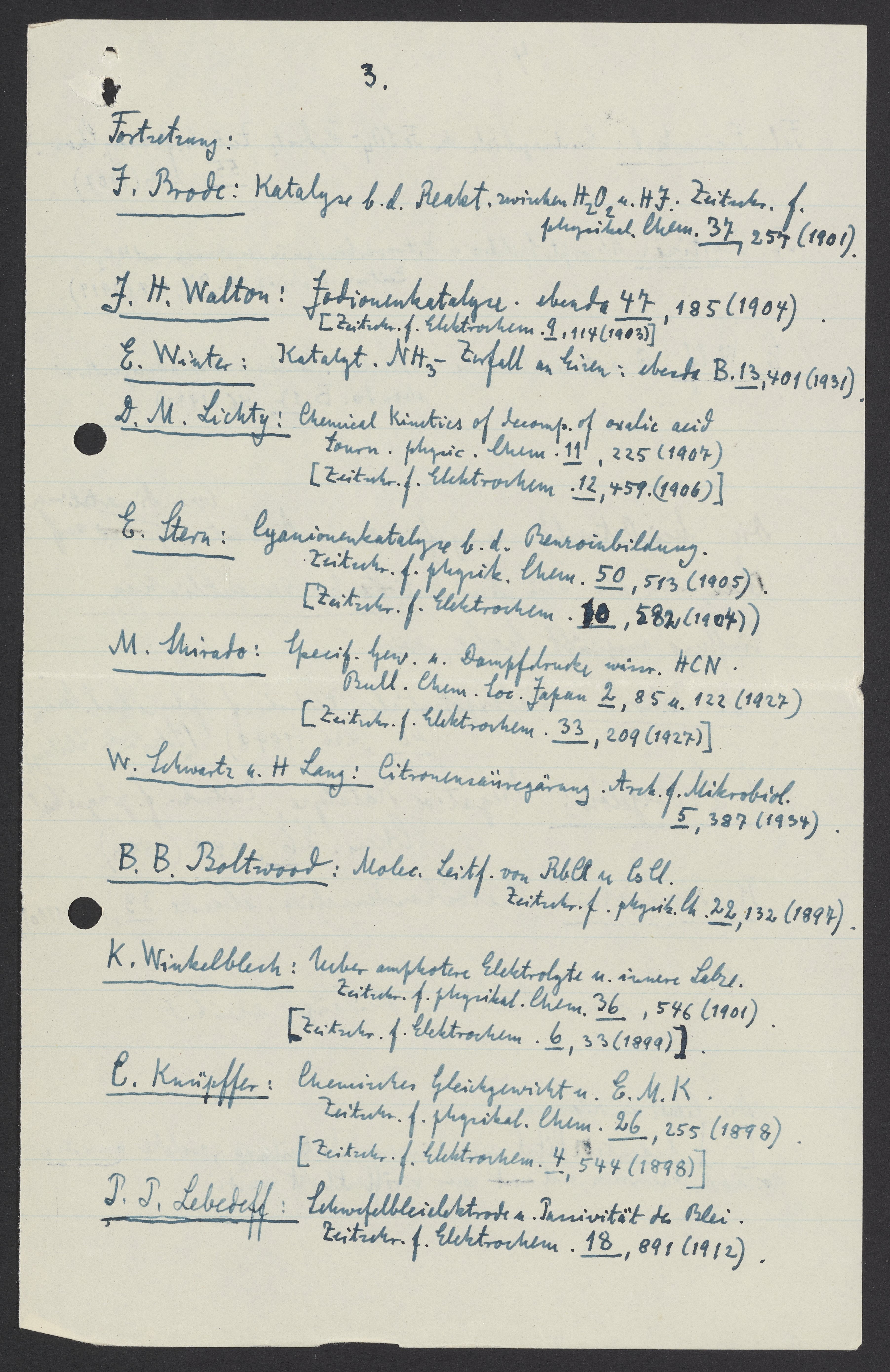 Citation list written by Georg Bredig