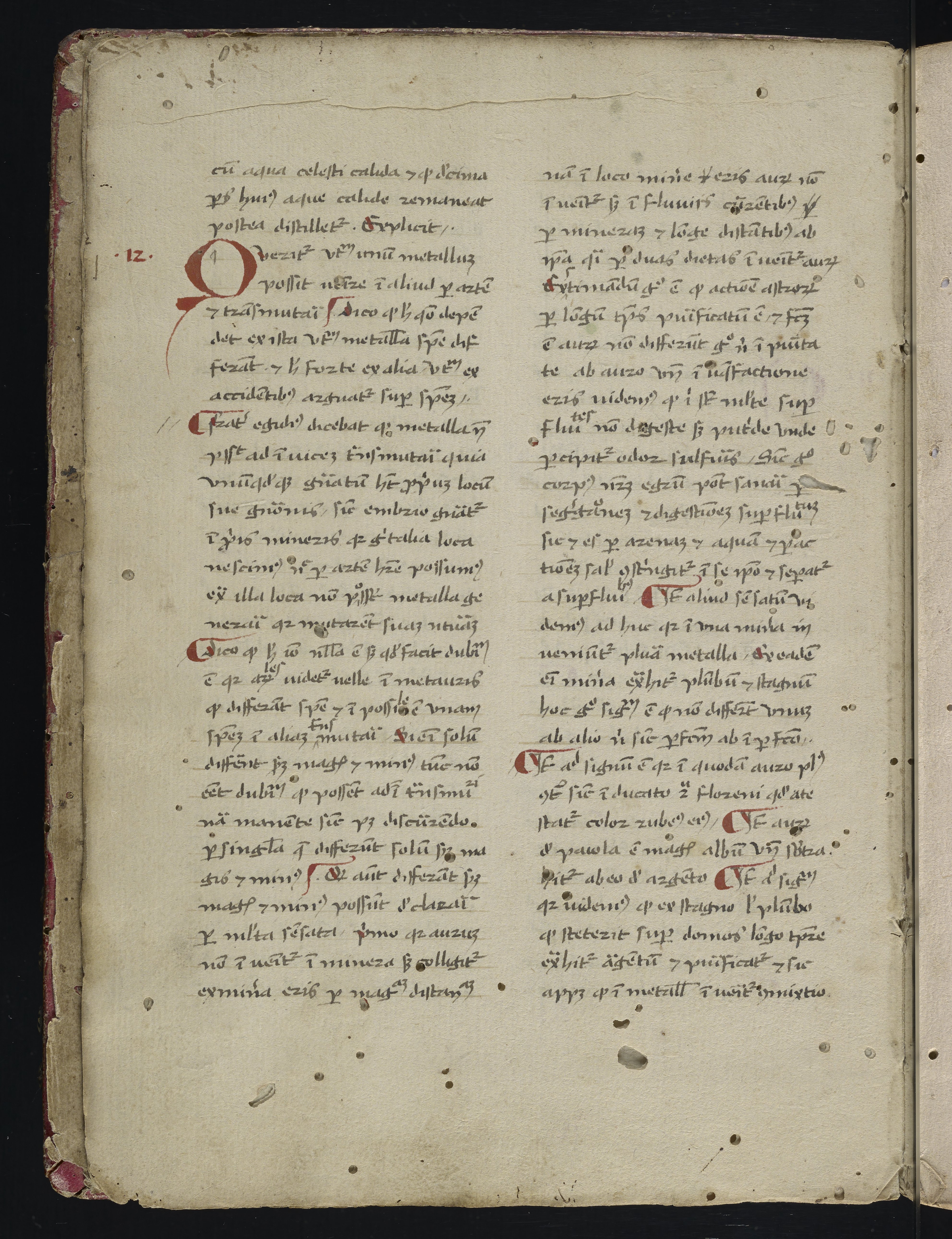 The contents of the manuscript are varied, but include fairly extensive sections devoted to alchemical recipes. Other topics represented include medicine, such as treating diseases of the eye and bloodletting; recipes of a domestic, household nature, including various recipes for inks, how to erase things from parchment, and how to get rid of vermin; cosmetic recipes related to caring for the hair and face; agricultural recipes, including a lengthy section of wine; and recipes for treating disease in animals.