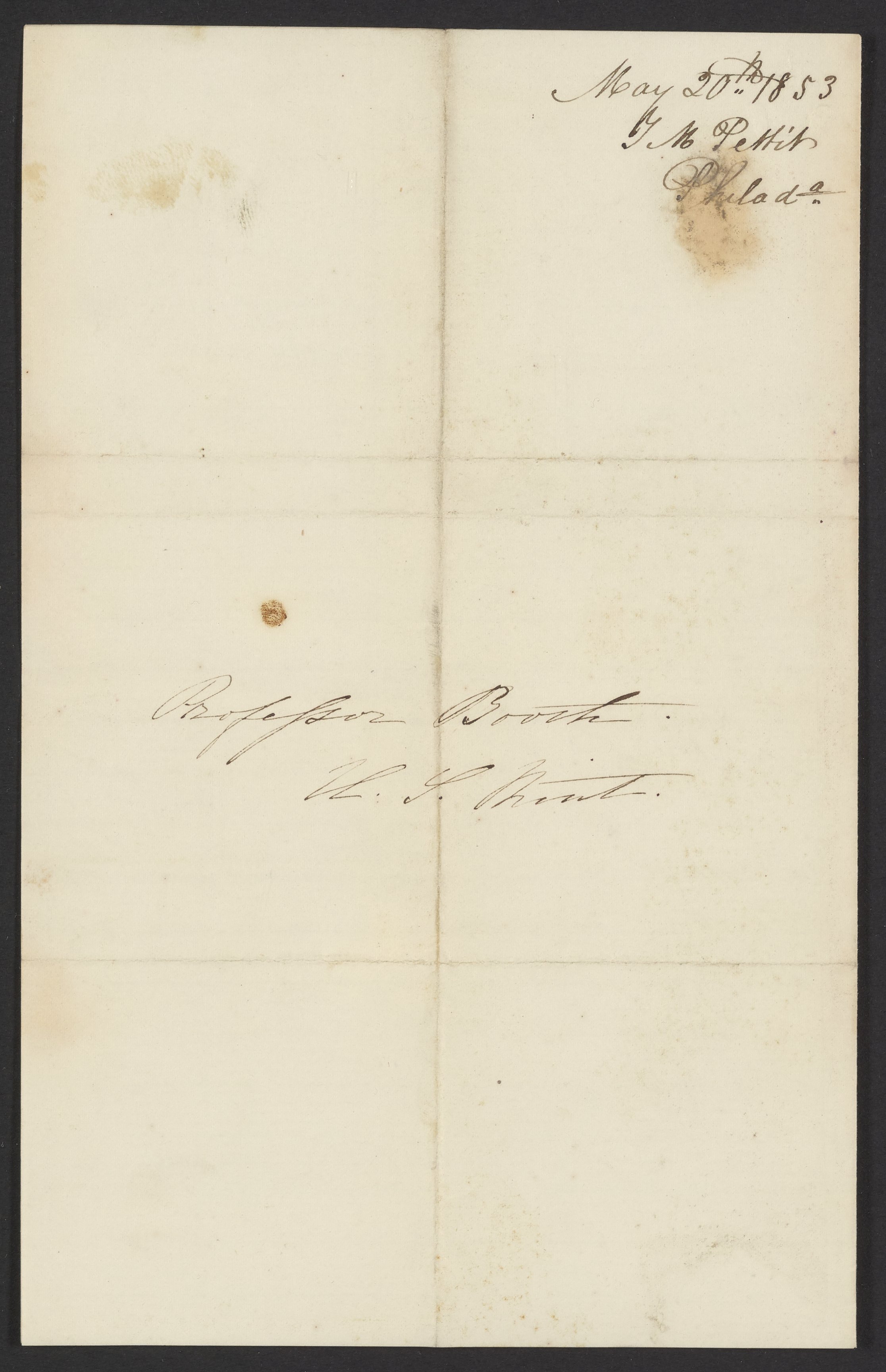 Letter from G.M. Pettit to James Curtis Booth, May 20, 1853