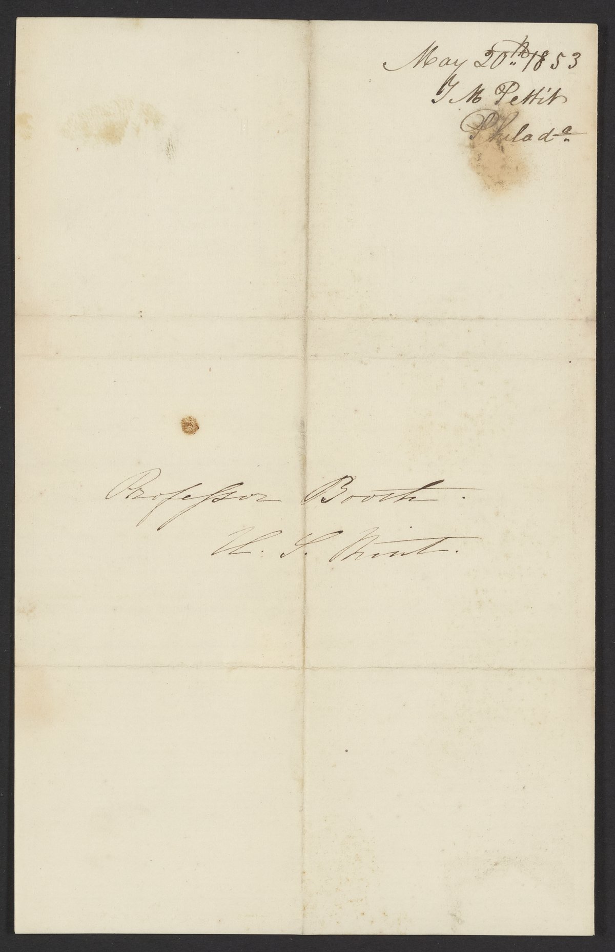 Letter from G.M. Pettit to James Curtis Booth, May 20, 1853