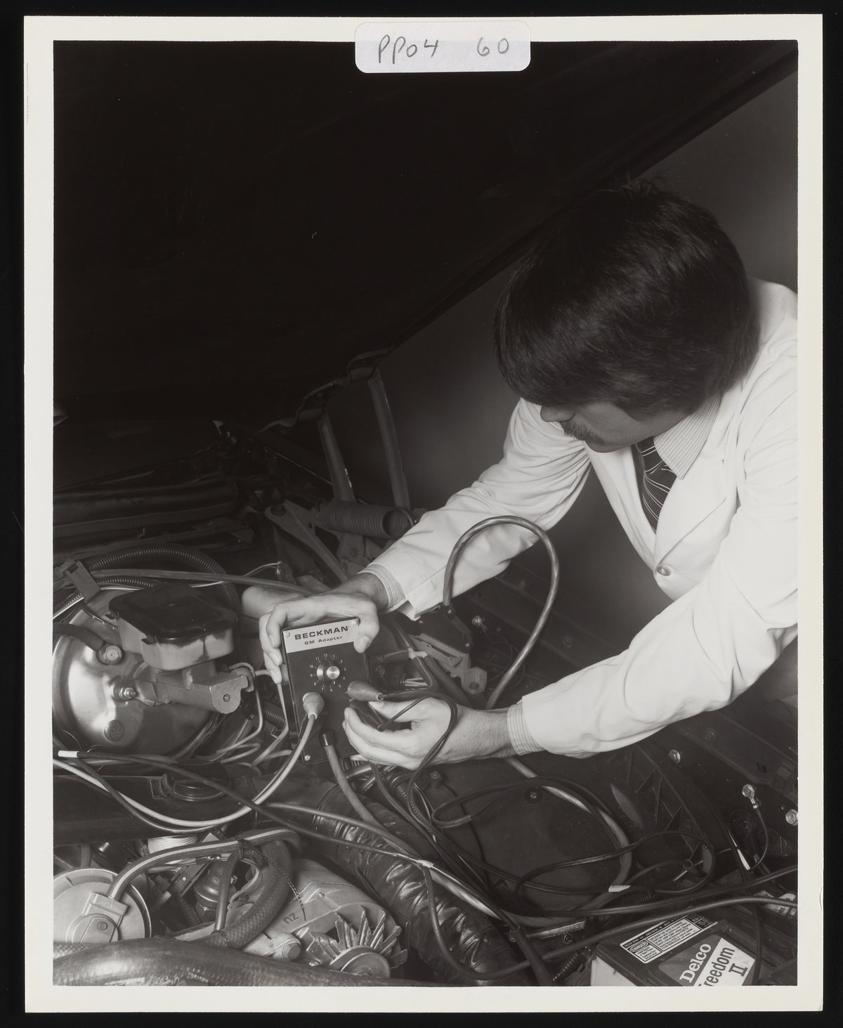 Man using a Beckman GM Adapter with a automobile engine