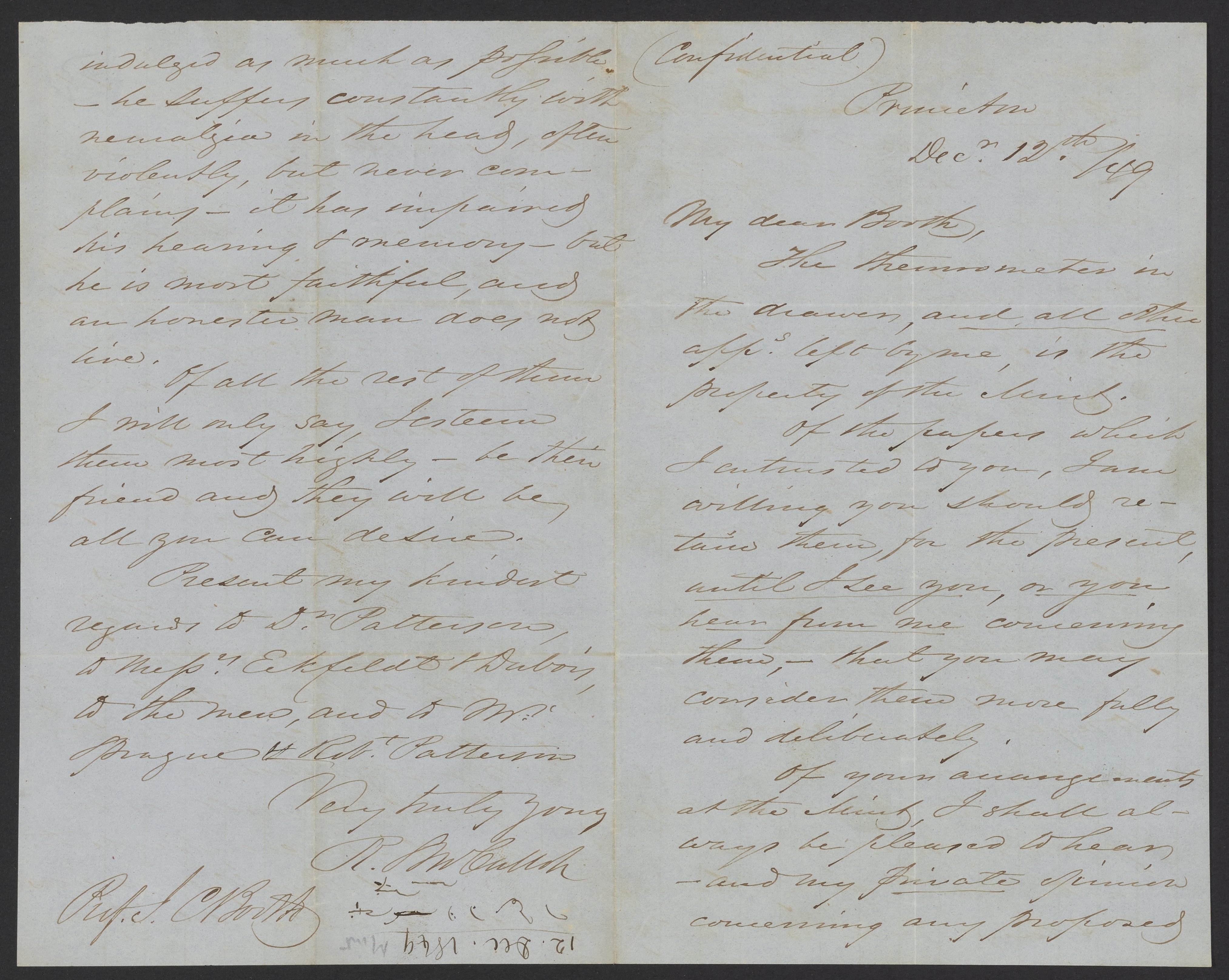 McCulloh, R. S. (Richard Sears). “Confidential Letter from Richard McCulloh to James Curtis Booth,” December 12, 1849. Papers of James Curtis Booth, Box 1, Folder 5a. Science History Institute. Philadelphia. https://digital.sciencehistory.org/works/wk4u53t.