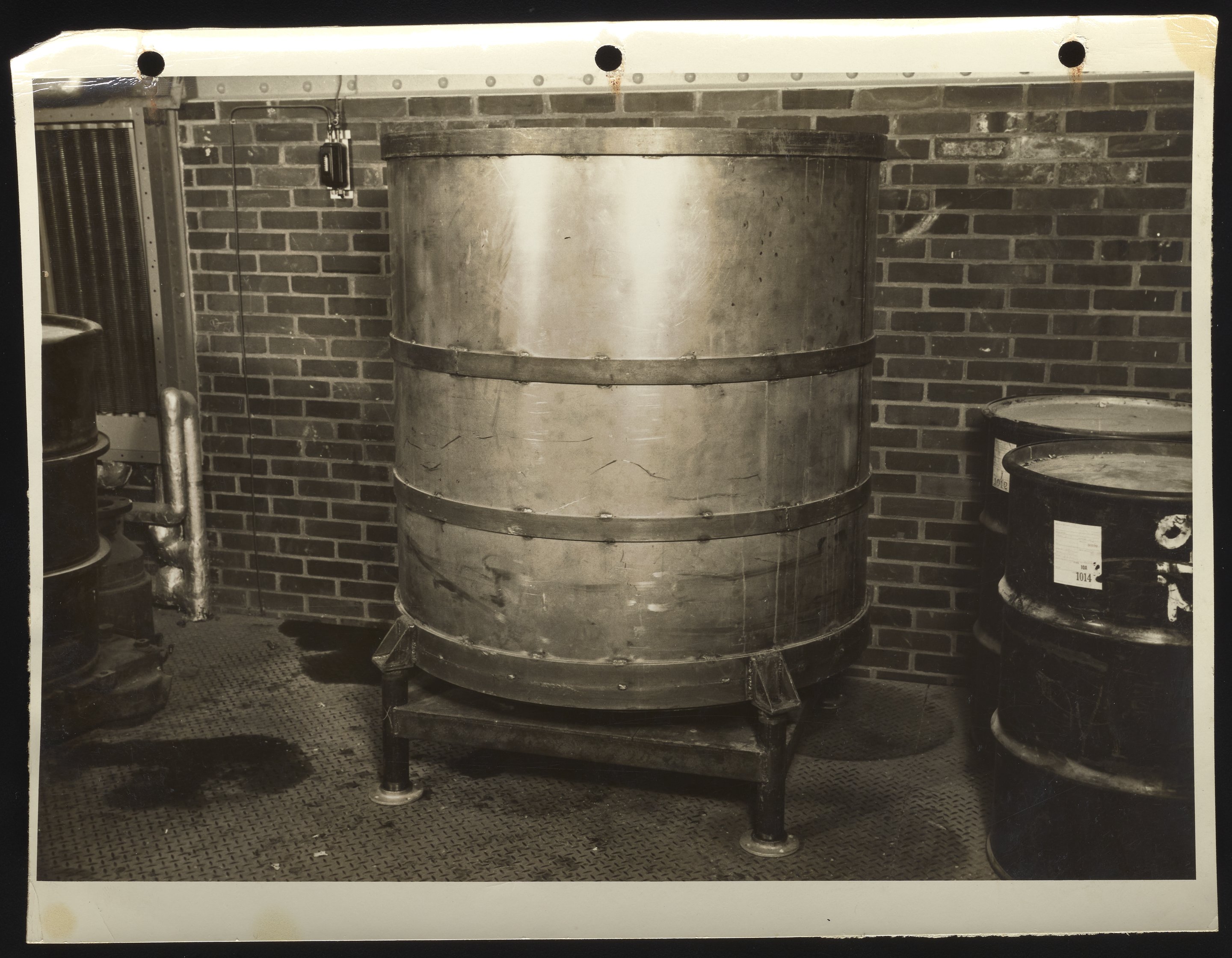 “Continuous Polymerizer Salt Holding Tank,” April 9, 1947. Joseph X. Labovsky Collection of Nylon Photographs and Ephemera, Box 3. Science History Institute. Philadelphia. https://digital.sciencehistory.org/works/wm117p06c.