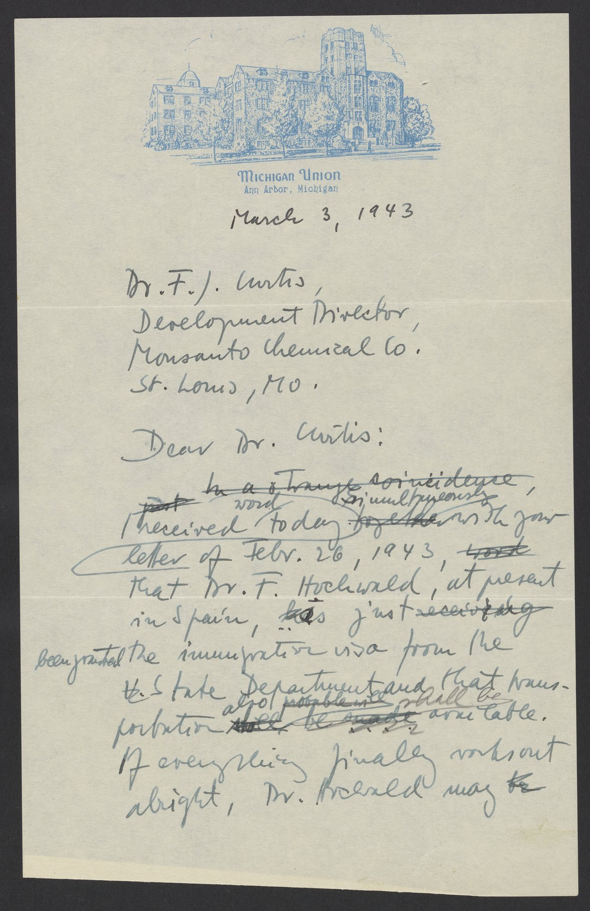 Letter from Max Bredig to Francis J. Curtis, March 3, 1943