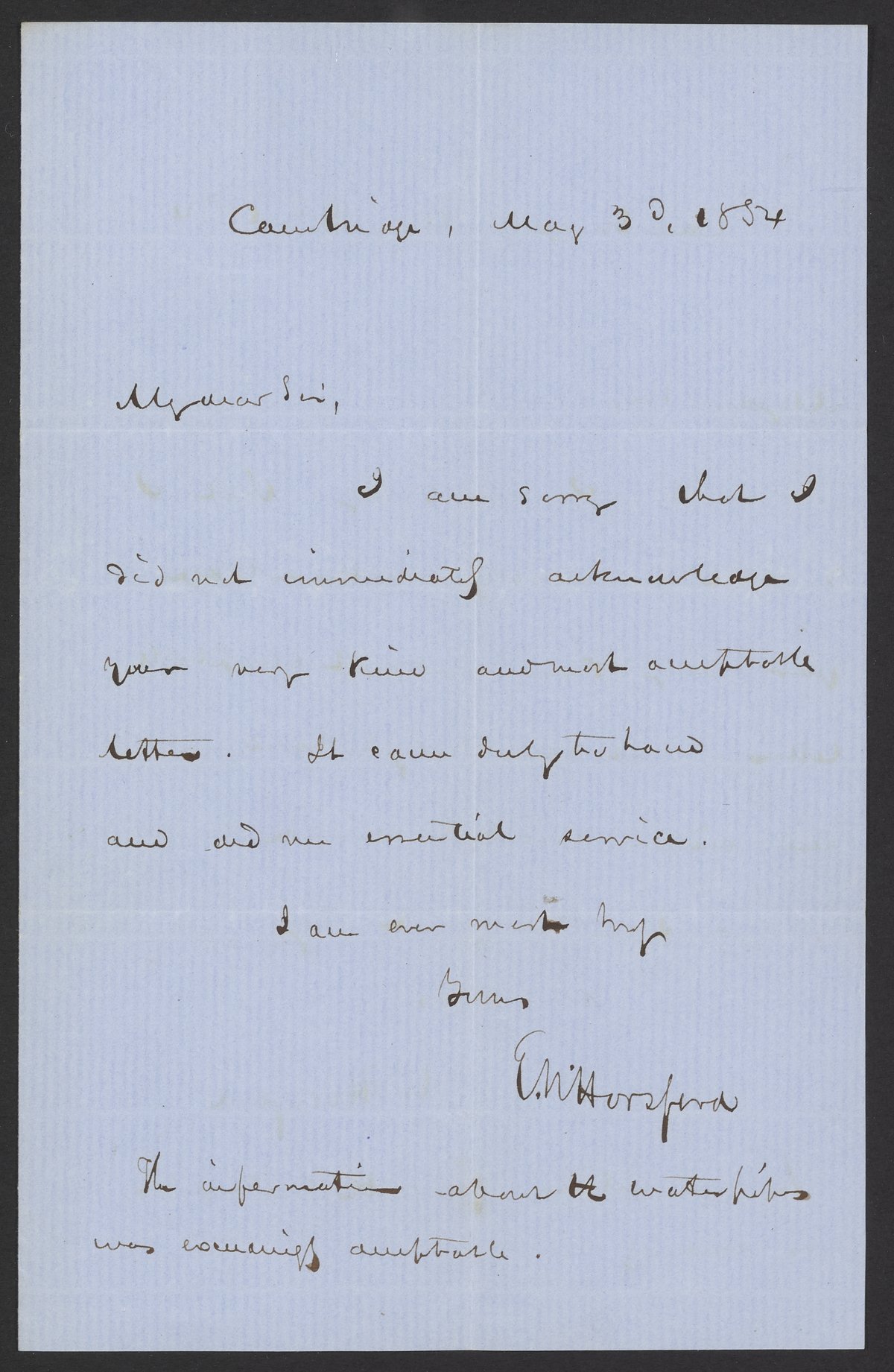 Letter from E.N. Horsford to James Curtis Booth, May 30, 1854