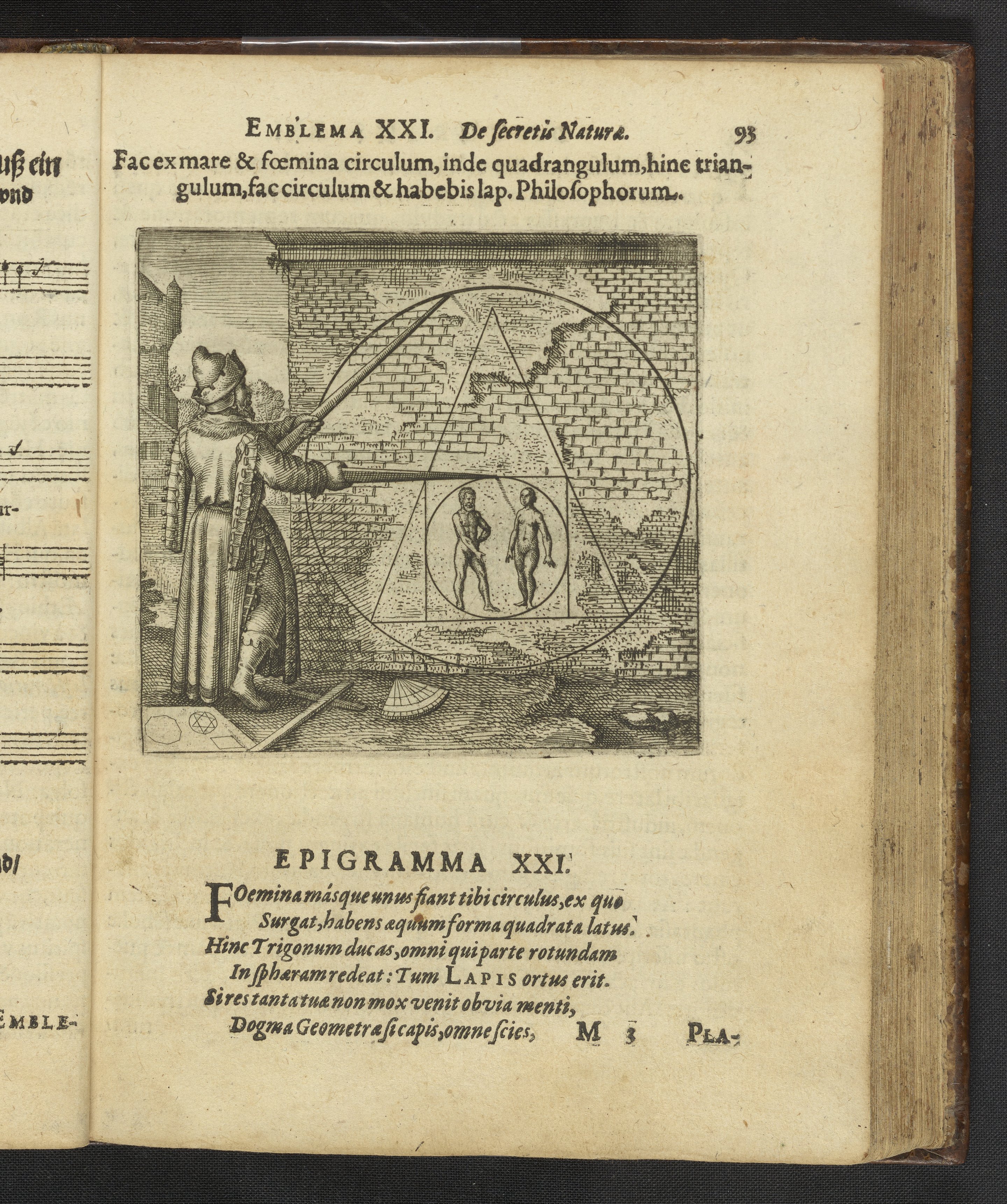 • Emblem 21. Make of the man and woman a circle, of that a quadrangle, of this a triangle, of the same a circle and you will have the stone of the Philosophers.