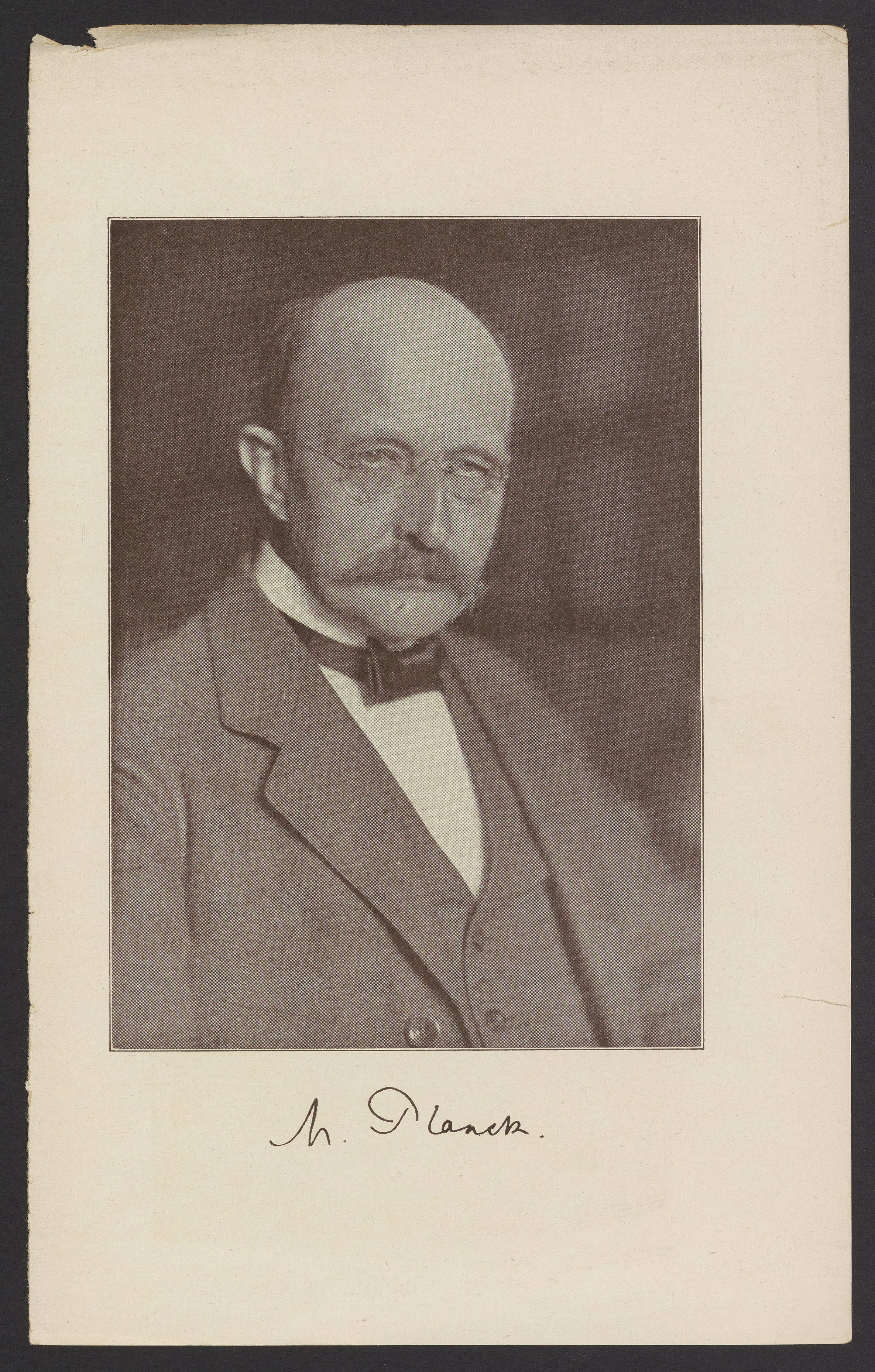 “Portrait of Max Planck,” n.d. Papers of Georg and Max Bredig, Box 4, Folder 41. Science History Institute. Philadelphia. https://digital.sciencehistory.org/works/wvdk2t3.