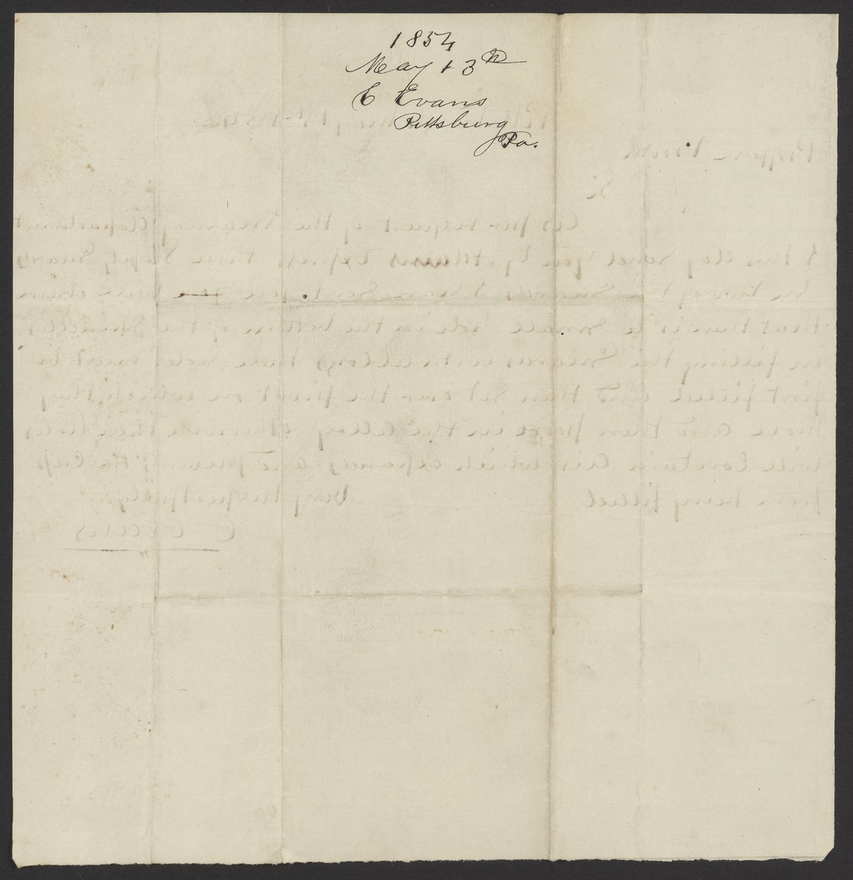 Letter from C. Evans to James Curtis Booth, May 13, 1854