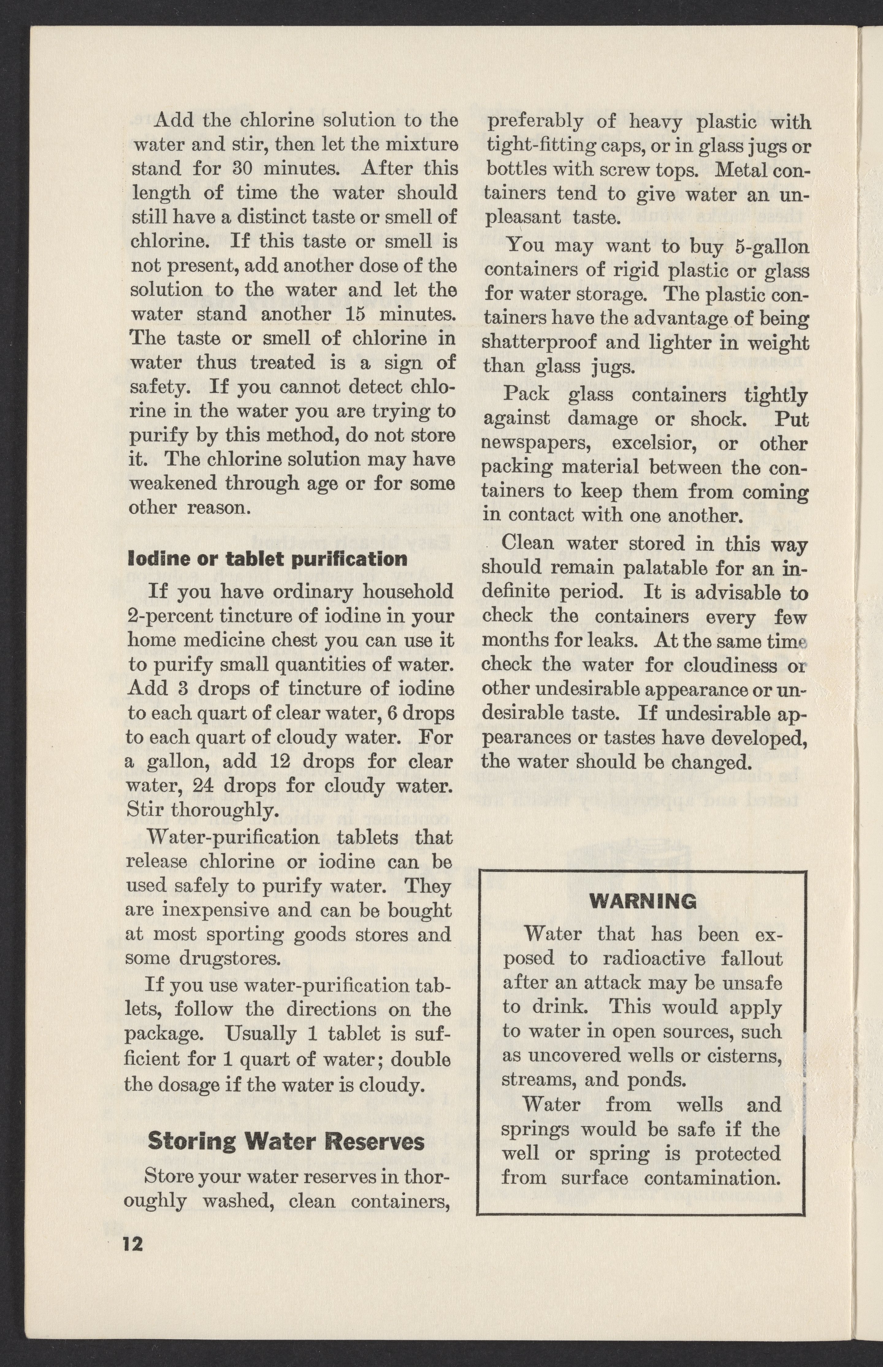 Small JPG1200 x 1846px — 384 KBLarge JPG2880 x 4431px — 2.1 MBFull-sized JPG3715 x 5716px — 3.3 MBOriginal fileTIFF — 3715 x 5716px — 60.8 MBPamphlet published by the United States Department of Agriculture instructing citizens on home food and water storage for a fallout shelter.