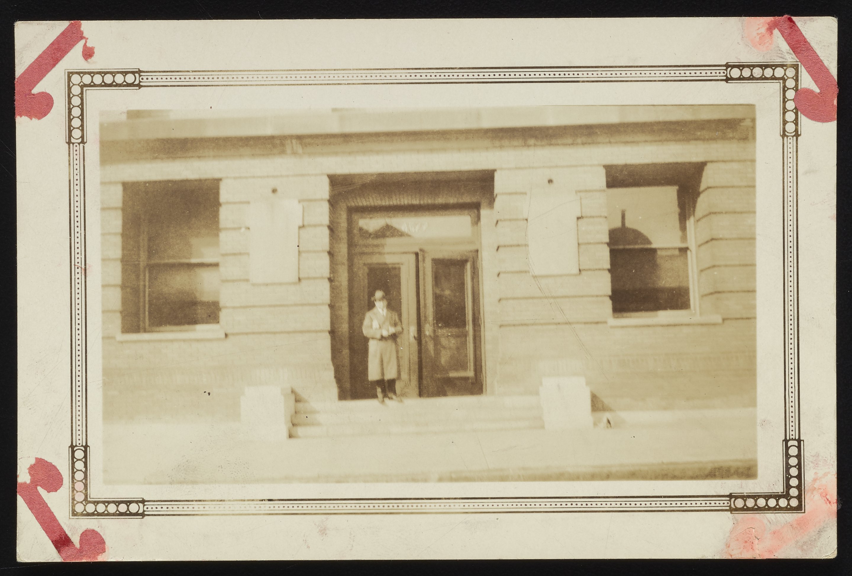 General view of Dr. Michael Somogyi (1883-1971) posed in front of a building on the Washington University Medical School campus. A Hungarian American professor of biochemistry at the Washington University and Jewish Hospital of St. Louis, Dr. Somogyi is best known for his preparation of the first insulin treatment given to a child with diabetes in the United States in October 1922.