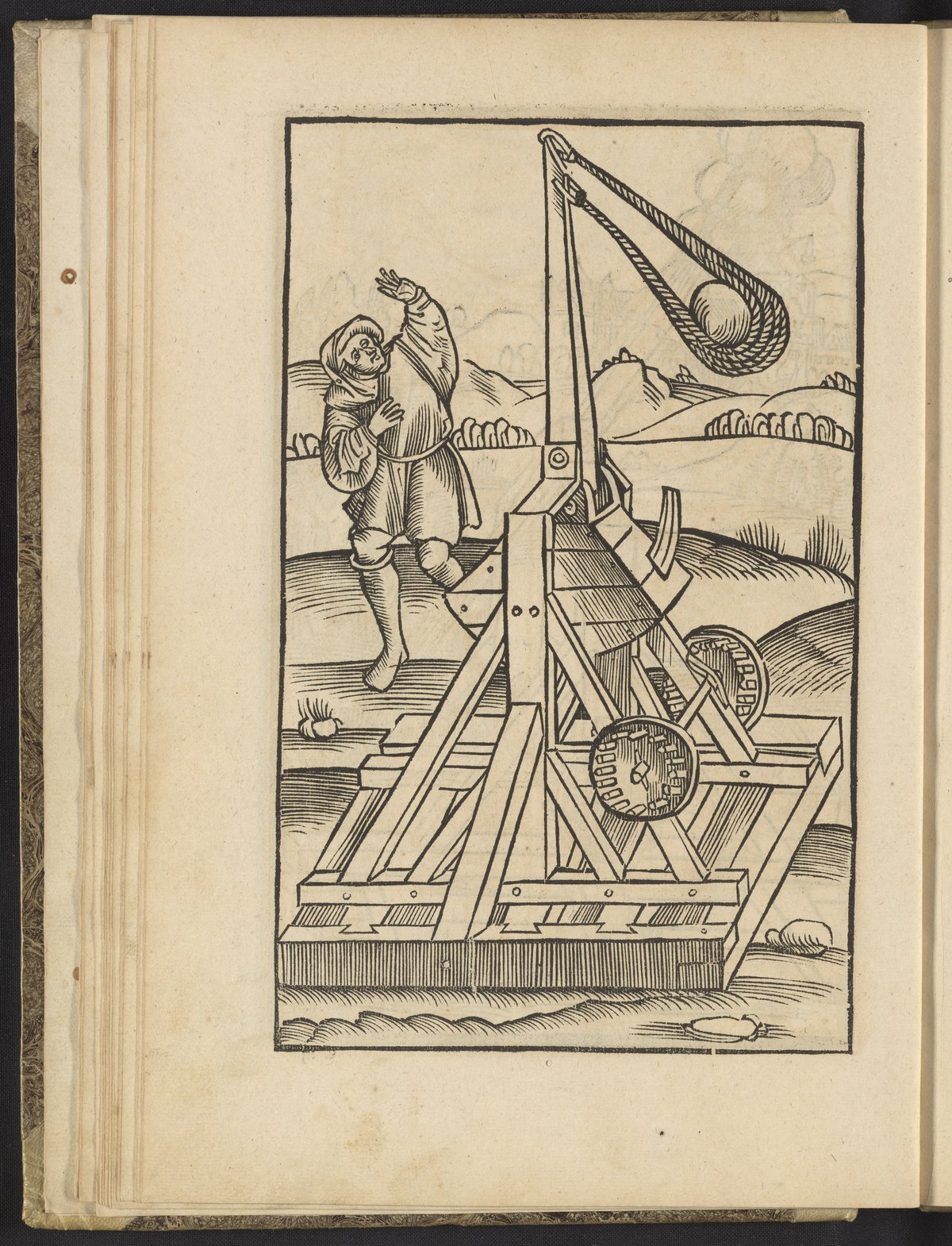 Vegetius Renatus, Flavius. “Wooden Catapult.” In Vier Bücher Der Ritterschafft. Augsburg, Germany: Heinrich Stayner, 1529. https://digital.sciencehistory.org/works/x346d4386.