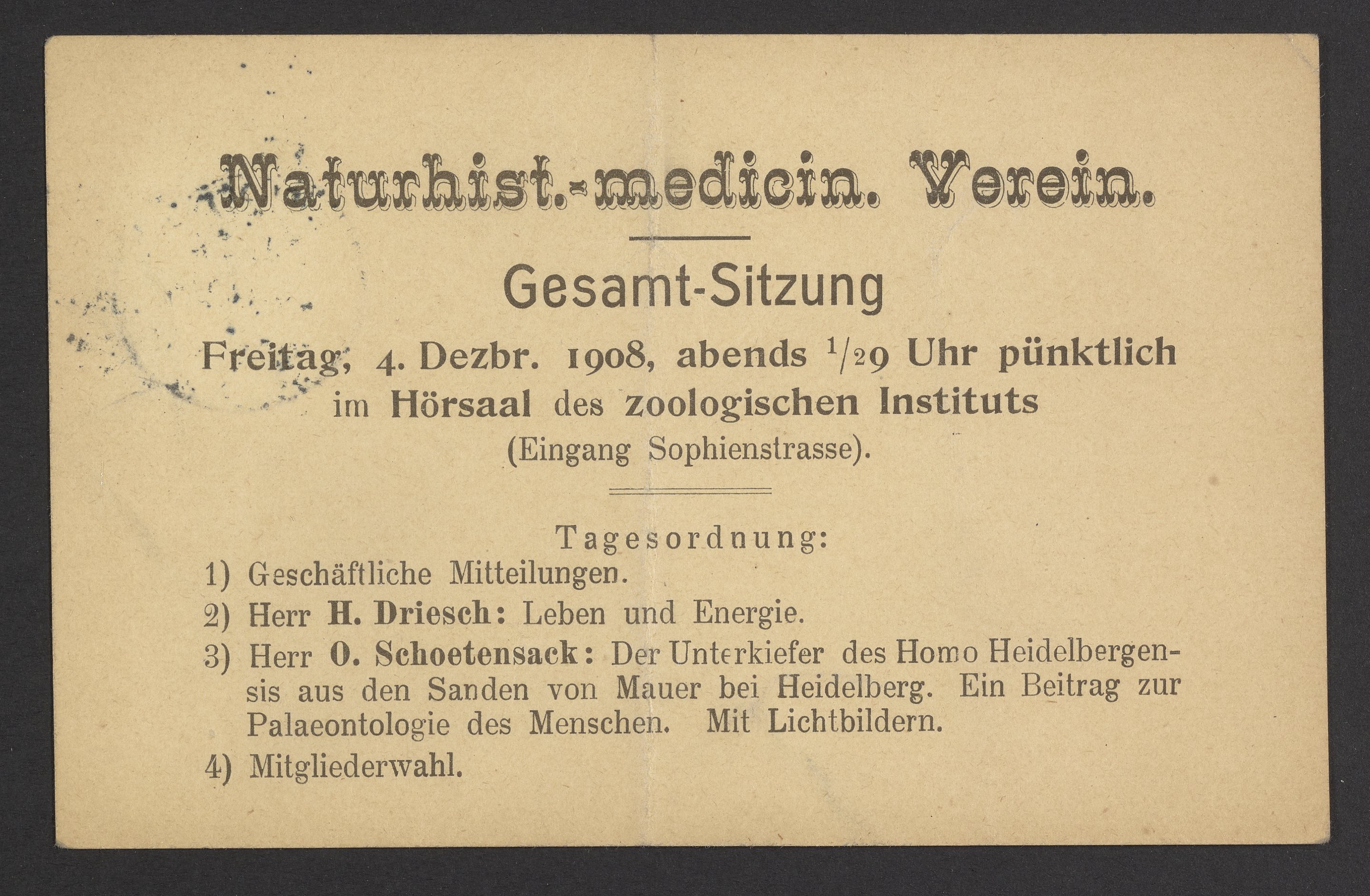 Naturhist-Medicin. Verein. “Postcard from the Naturopathic Medicine Association to Georg Bredig,” 1908. Papers of Georg and Max Bredig, Box 5, Folder 6. Science History Institute. Philadelphia. https://digital.sciencehistory.org/works/x5qv2ag.