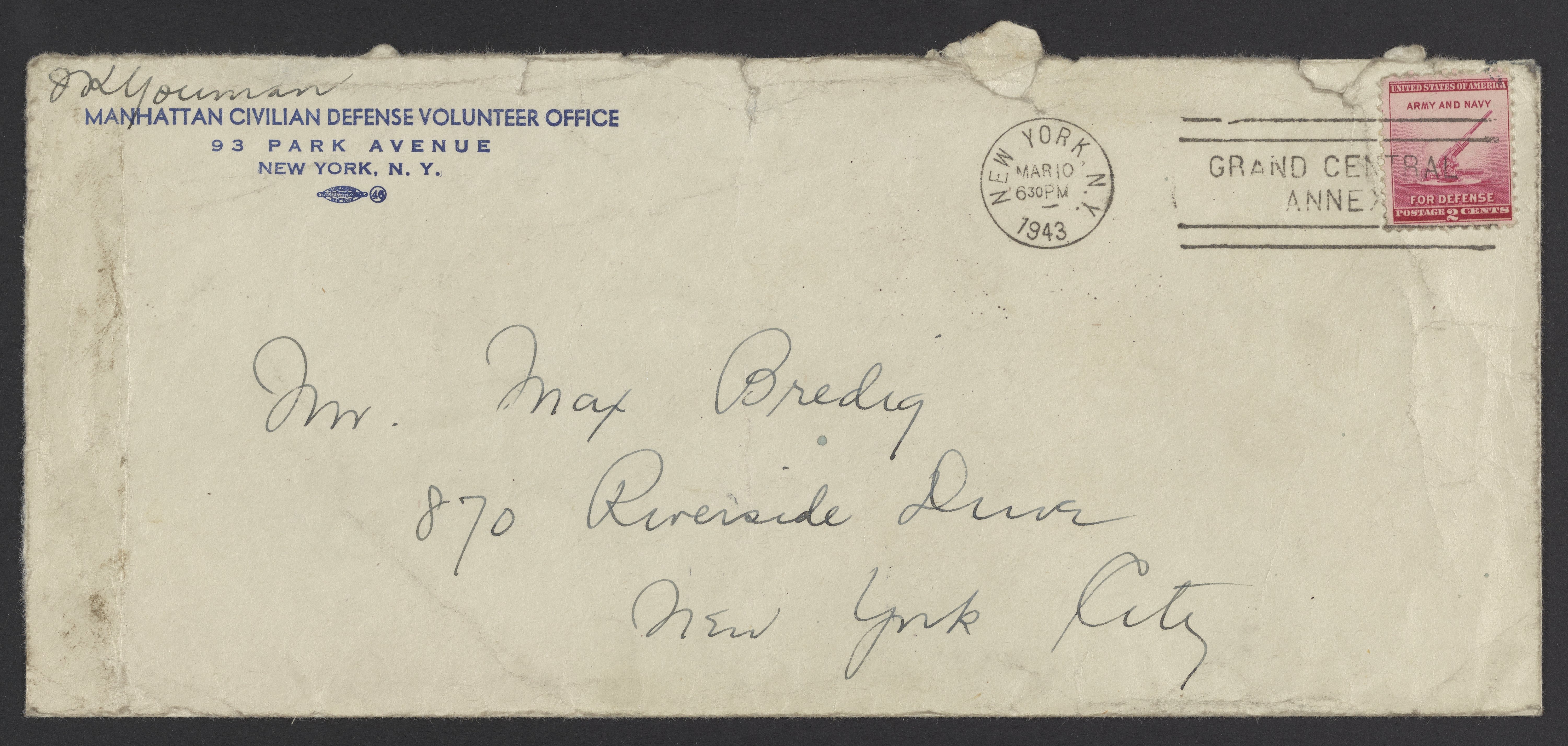Letter from the Manhattan civilian defense volunteer office to Max Bredig