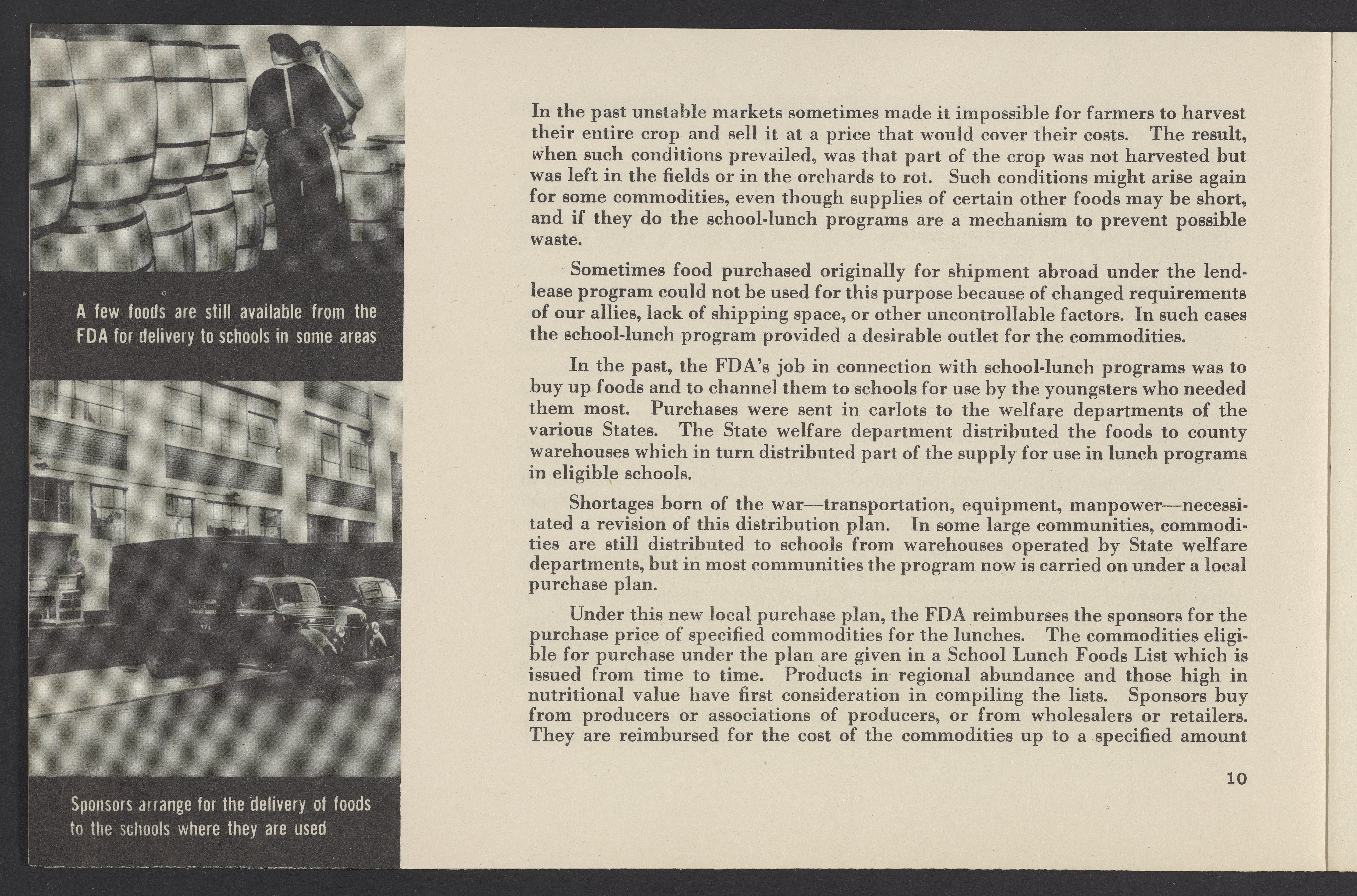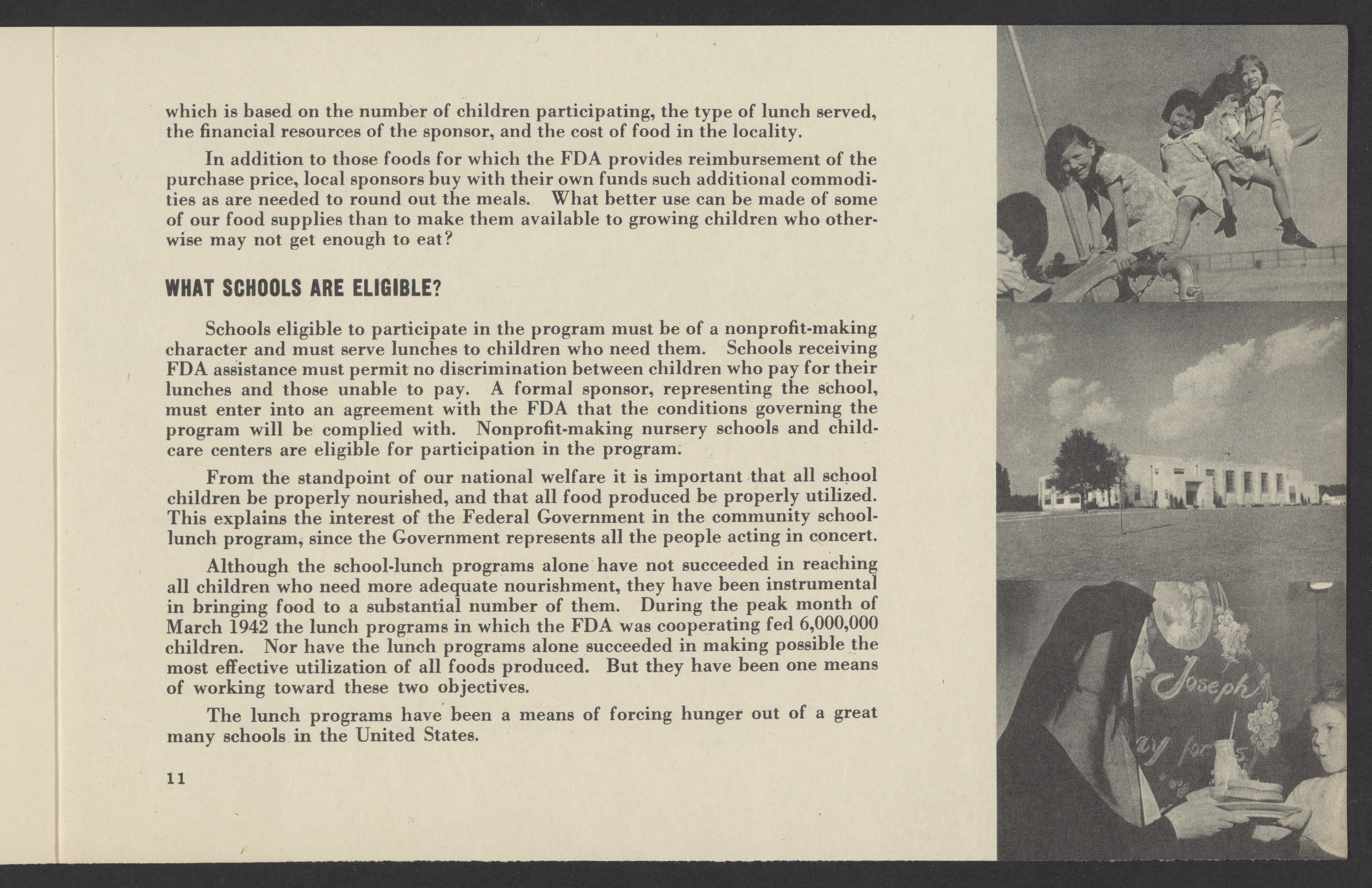 Small JPG1200 x 776px — 167 KBLarge JPG2880 x 1863px — 1.2 MBFull-sized JPG5778 x 3738px — 5.5 MBOriginal fileTIFF — 5778 x 3738px — 61.8 MBHunger Quits School is a pamphlet published in 1943 by the United States Food Distribution Administration. This pamphlet explains the benefits of school lunch programs, and how to start them in local communities.