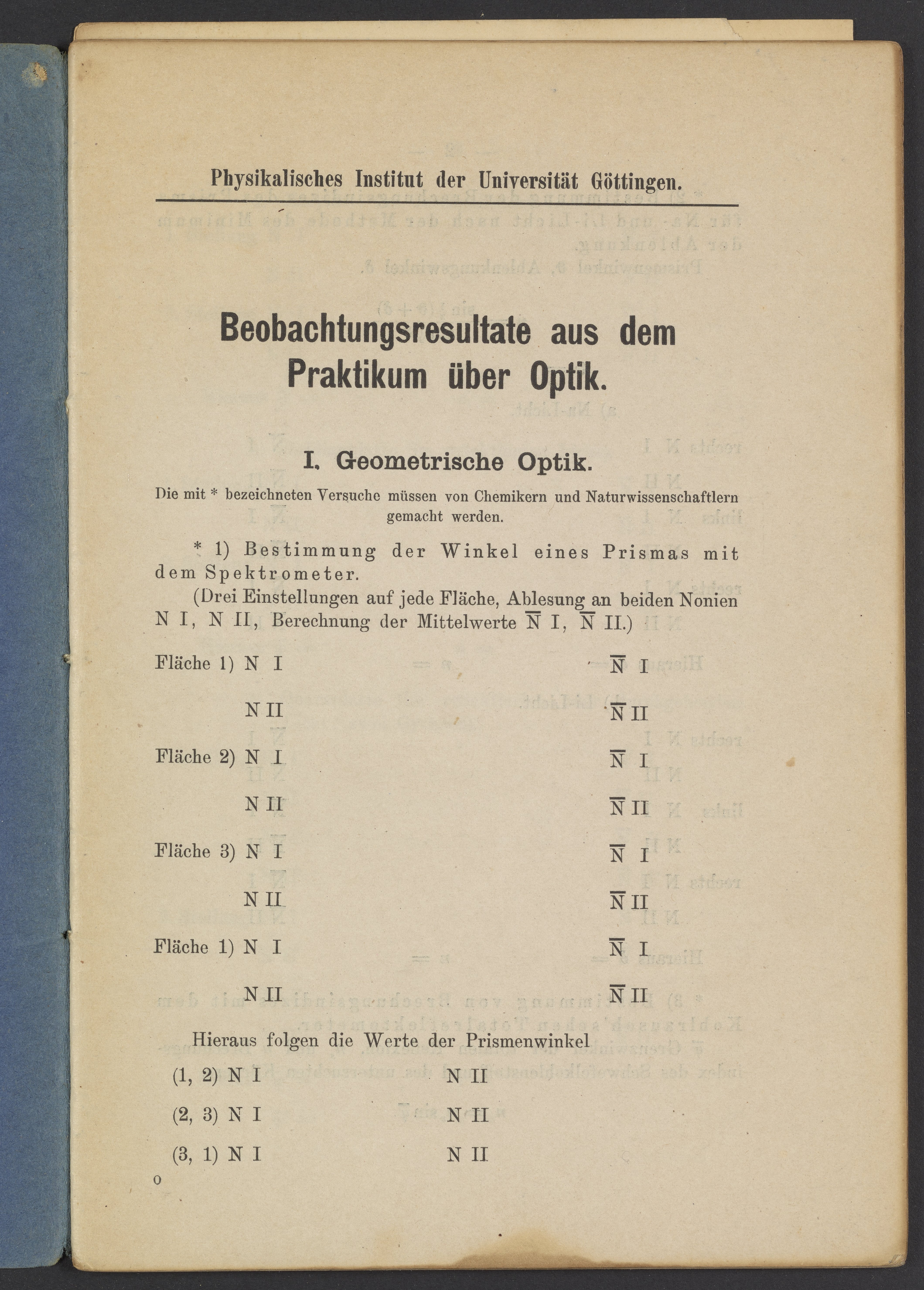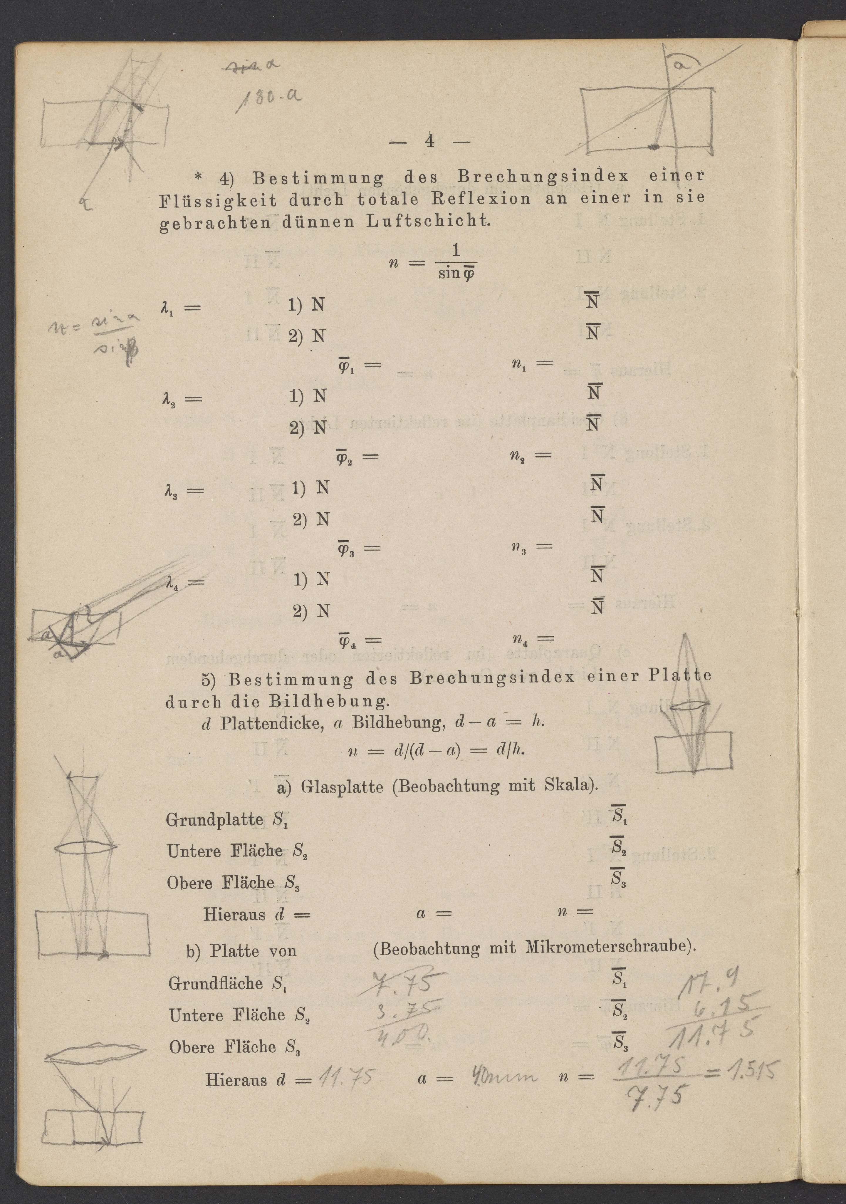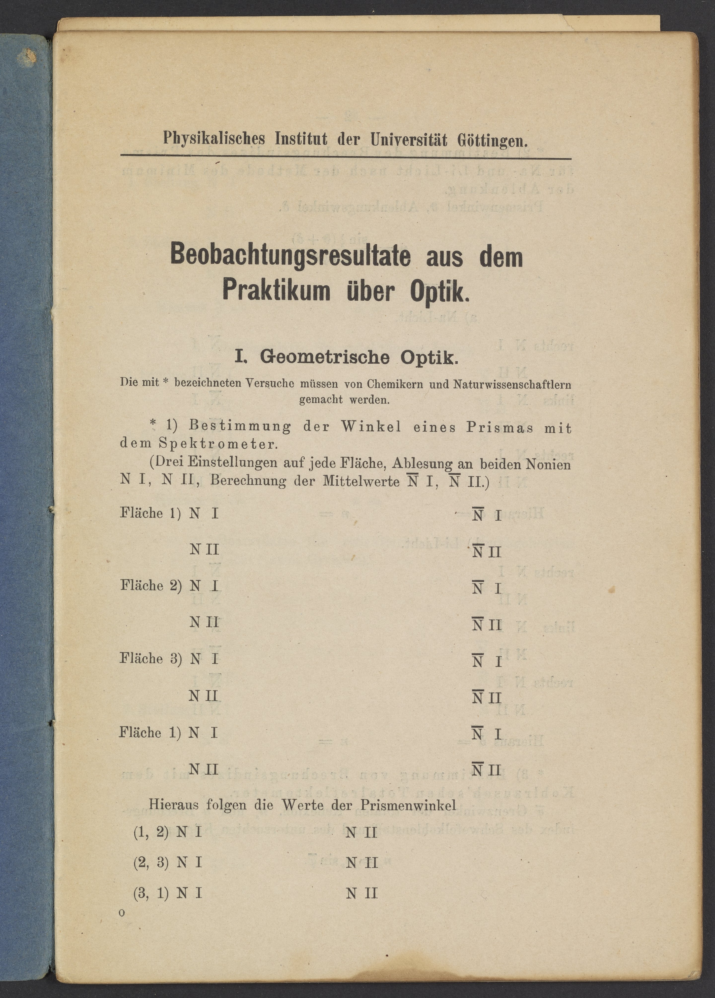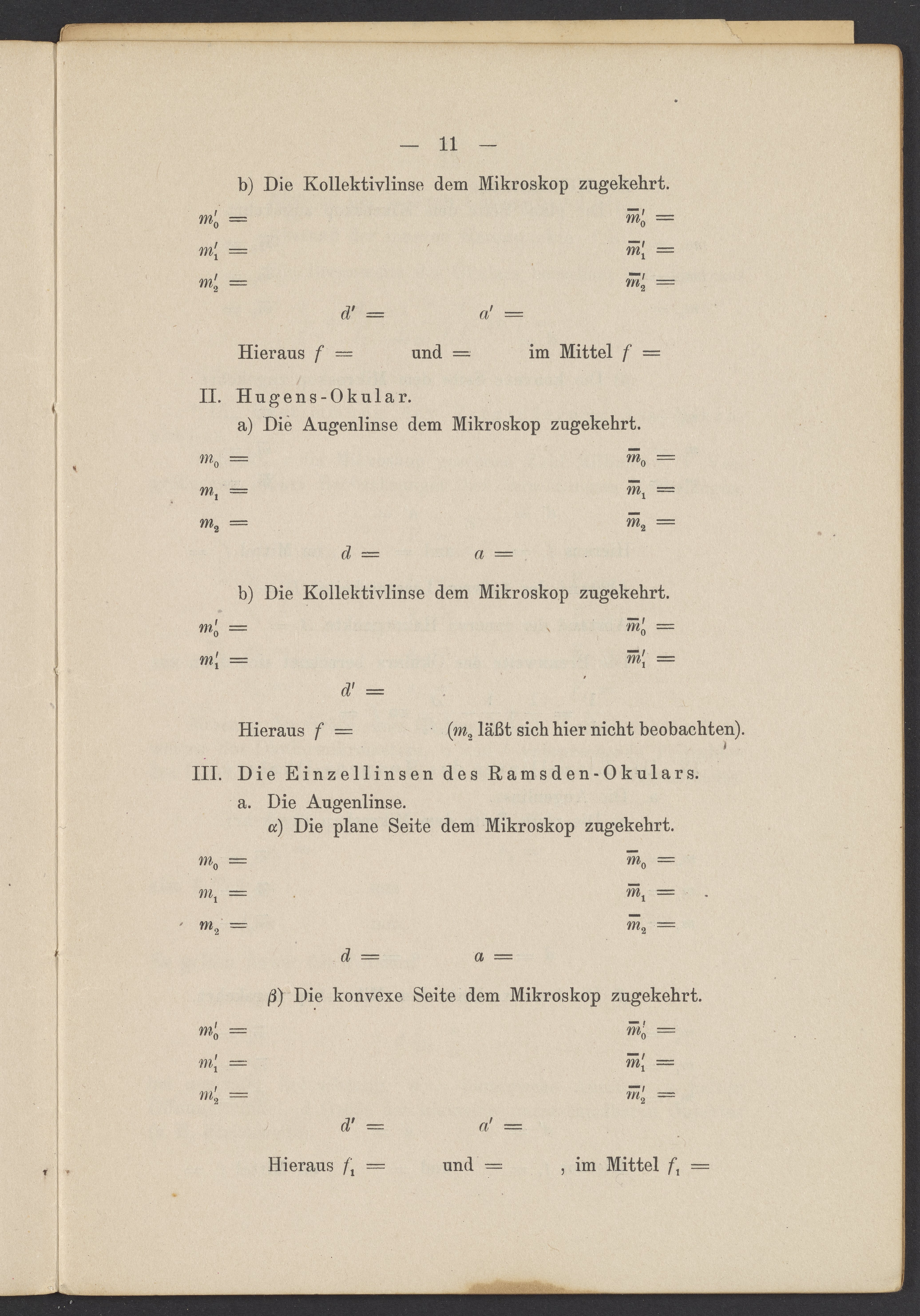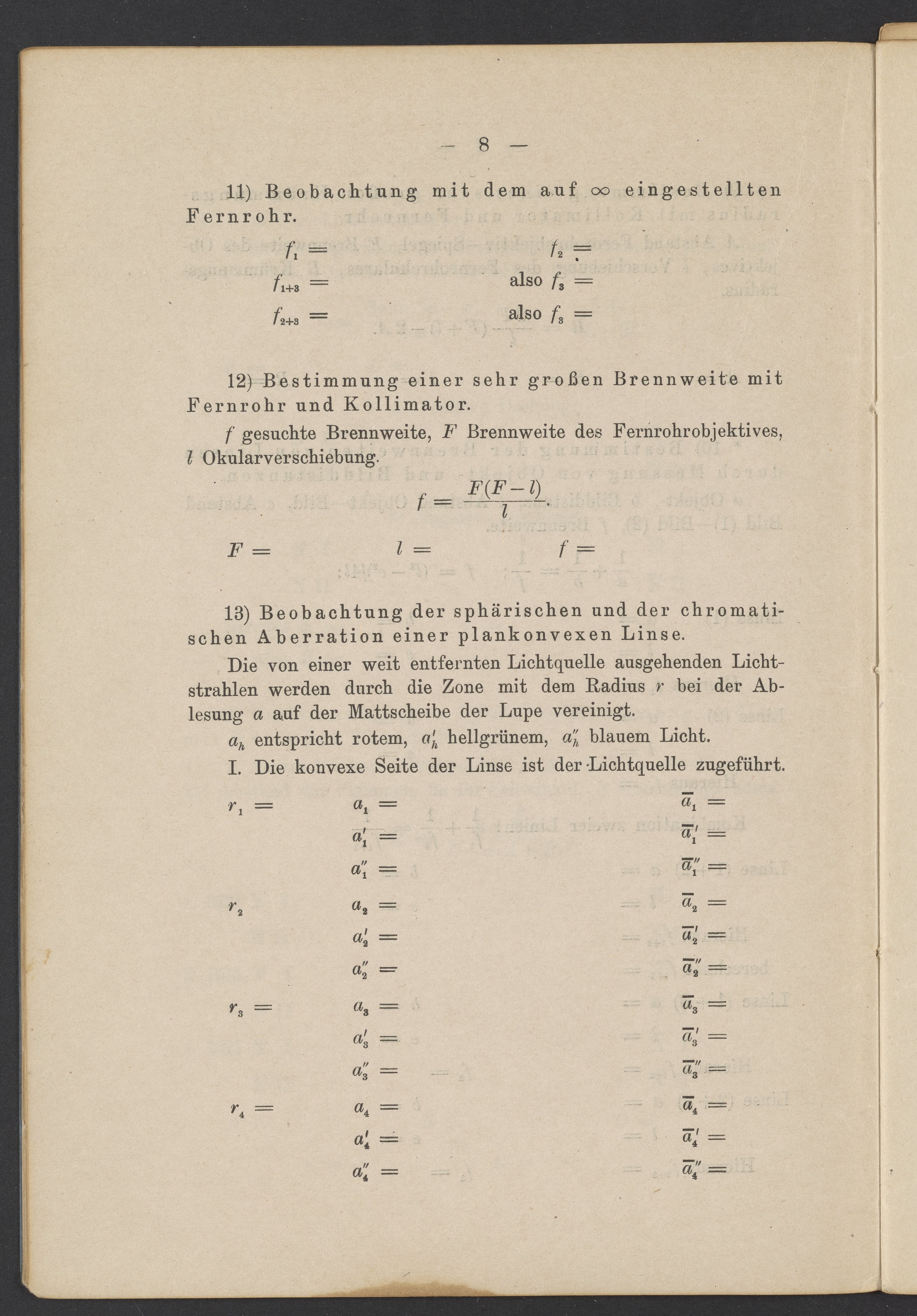 Beobachtungsresultate aus dem Praktikum über Optik