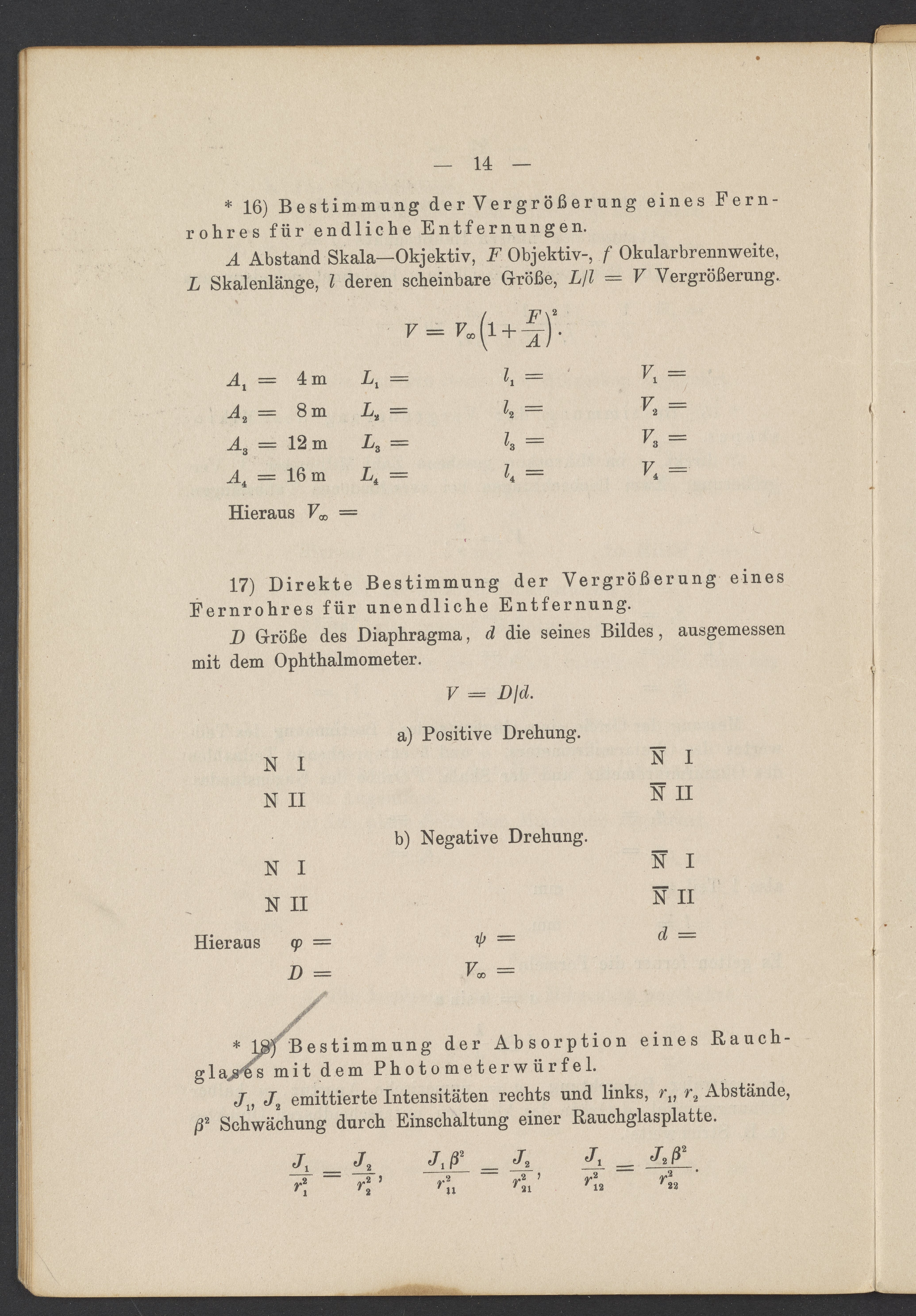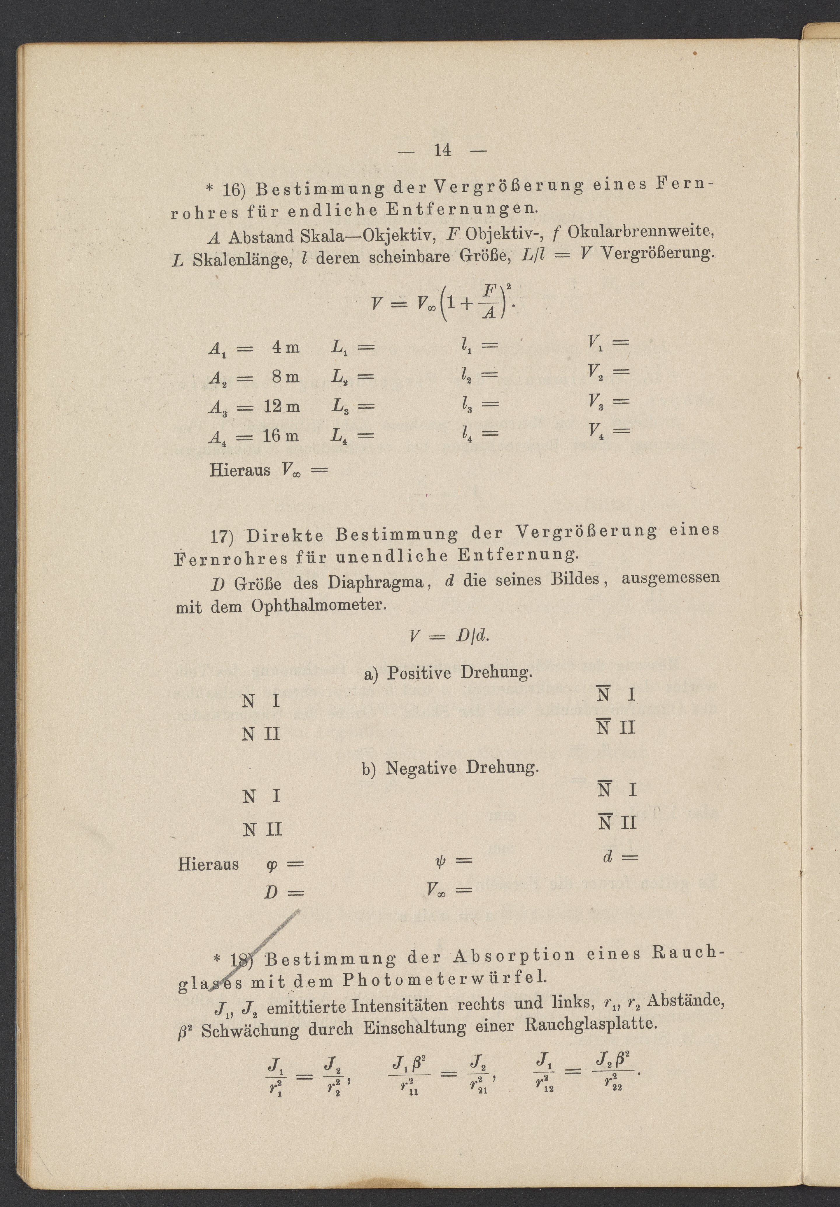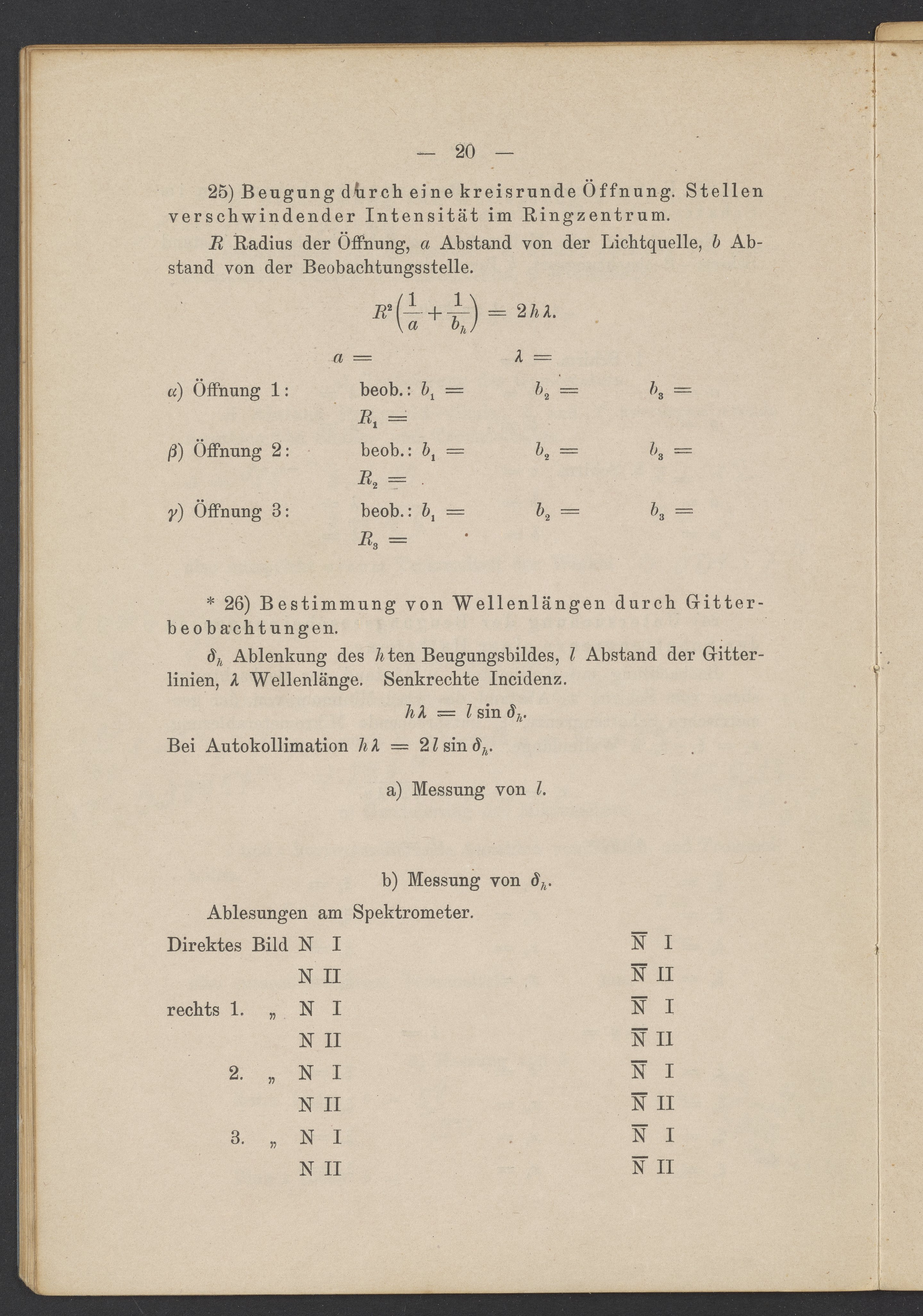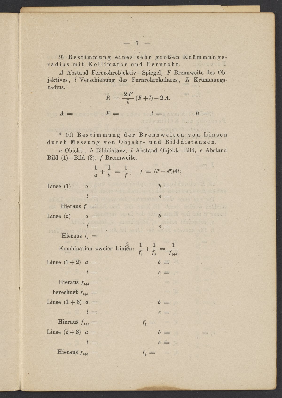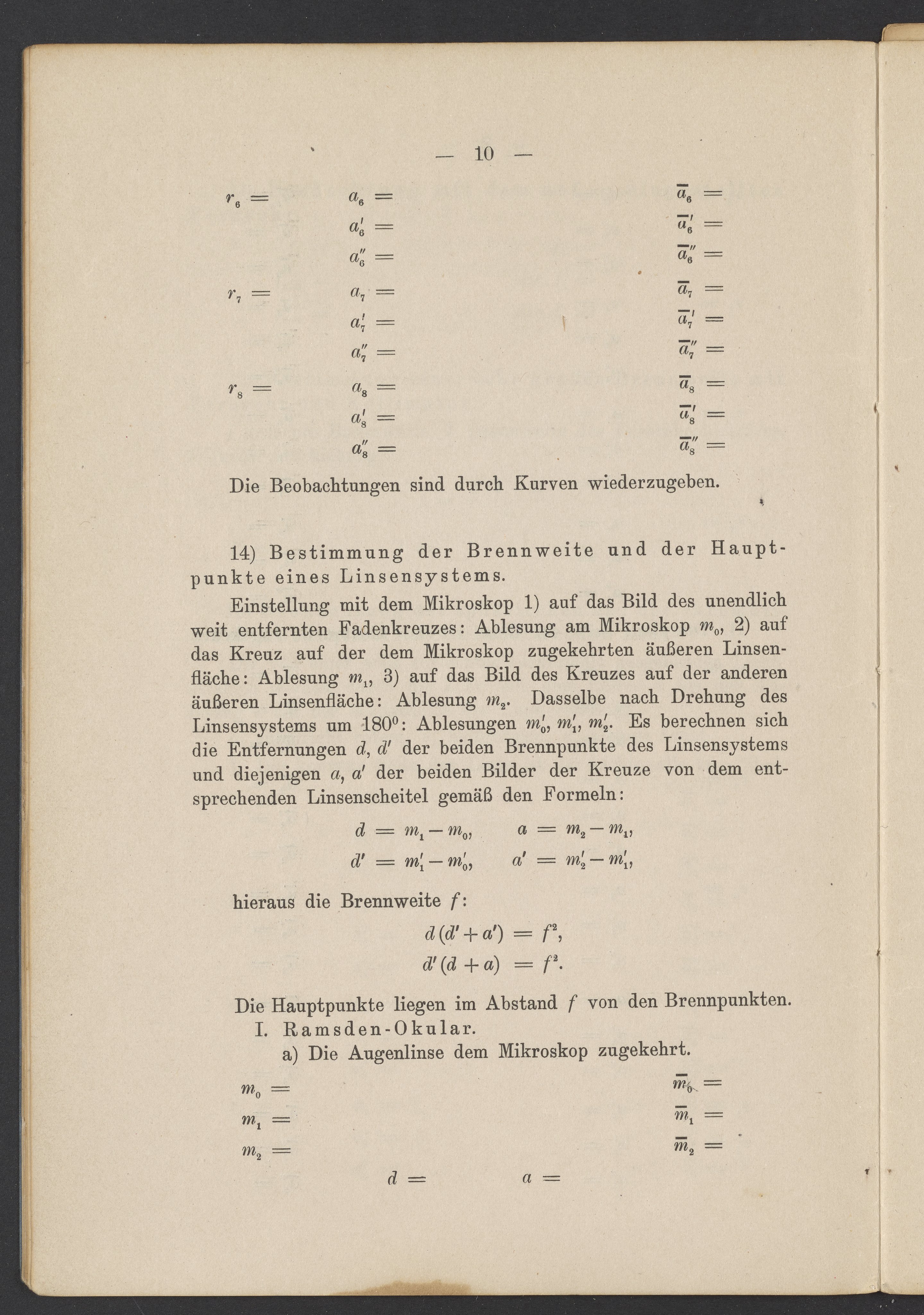 Beobachtungsresultate aus dem Praktikum über Optik