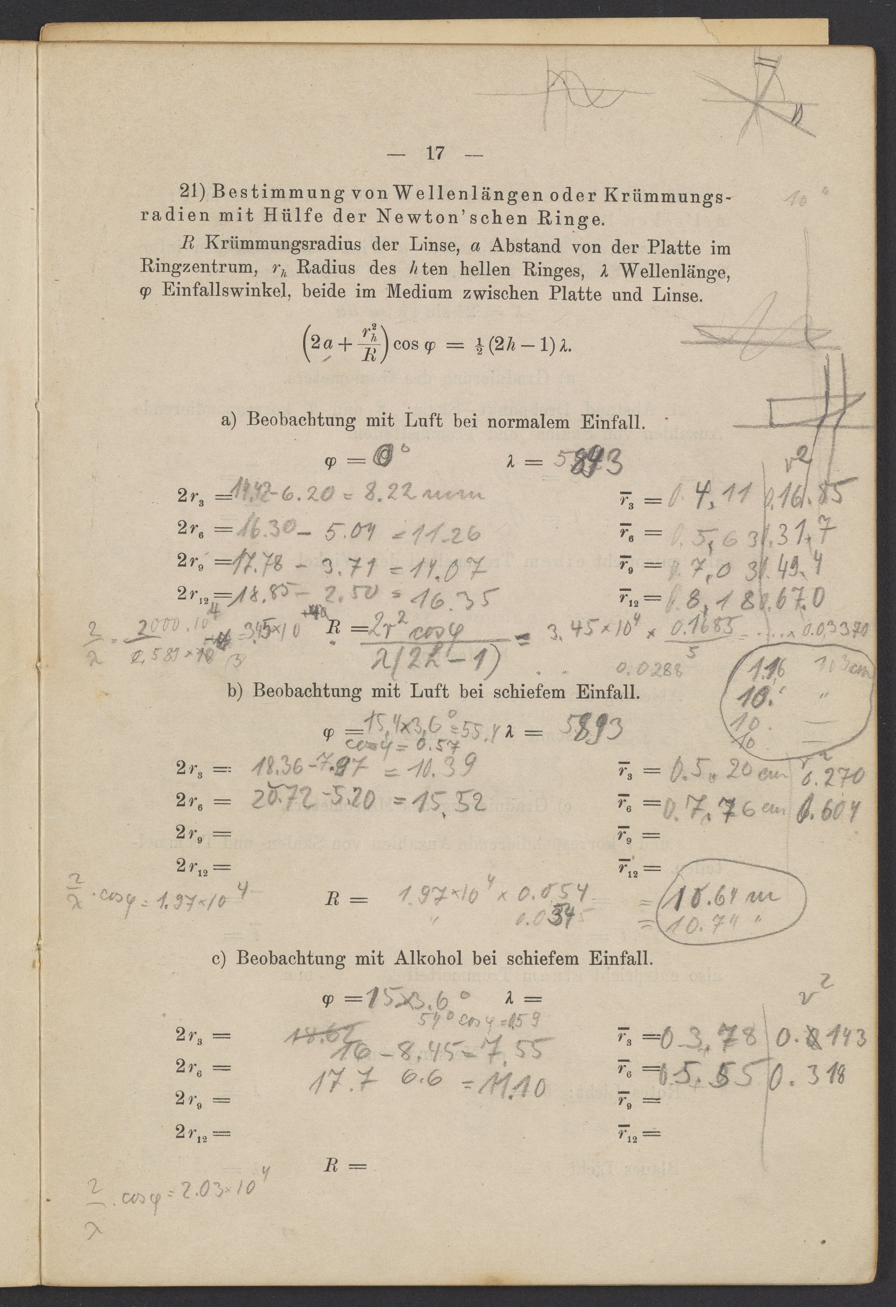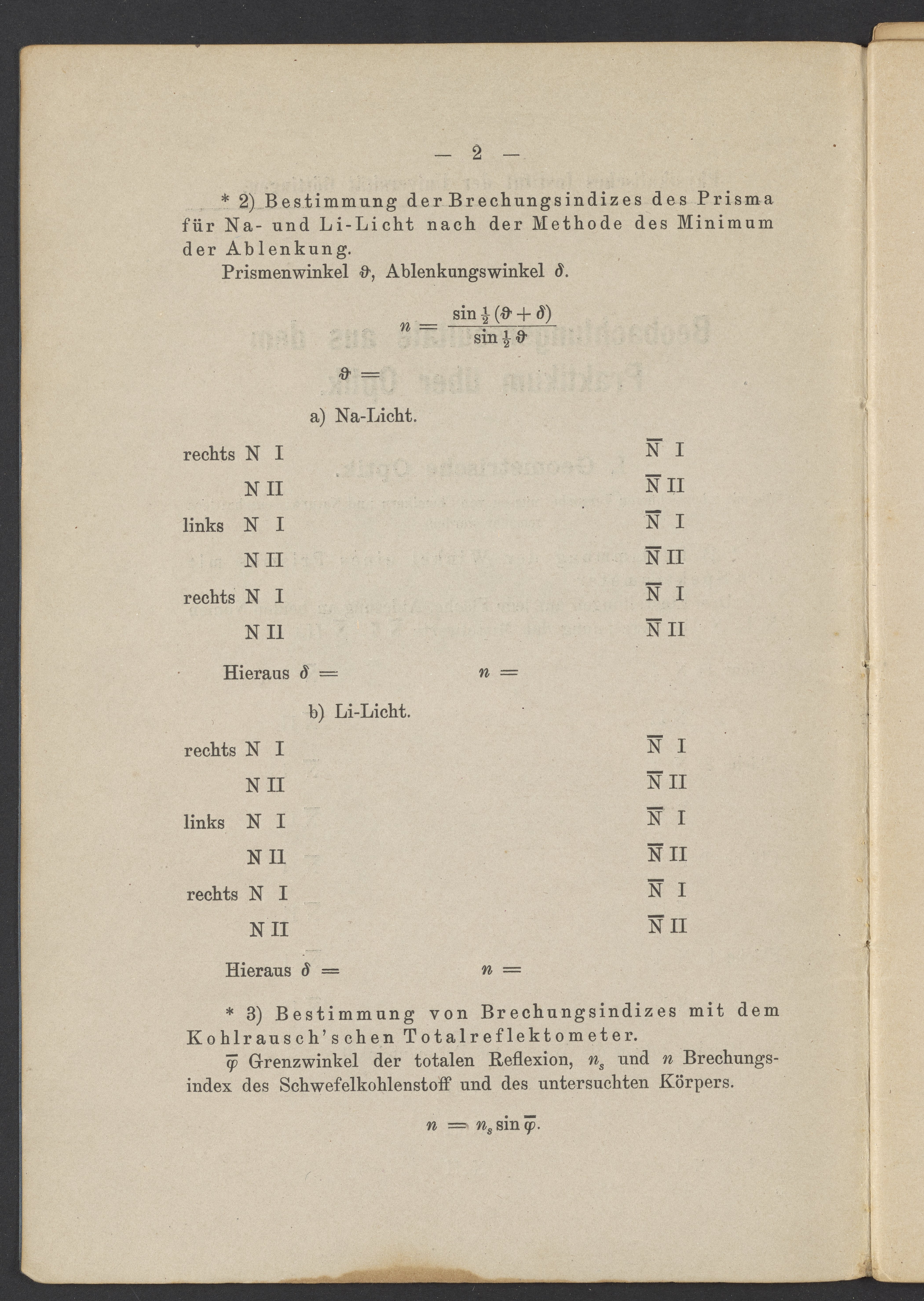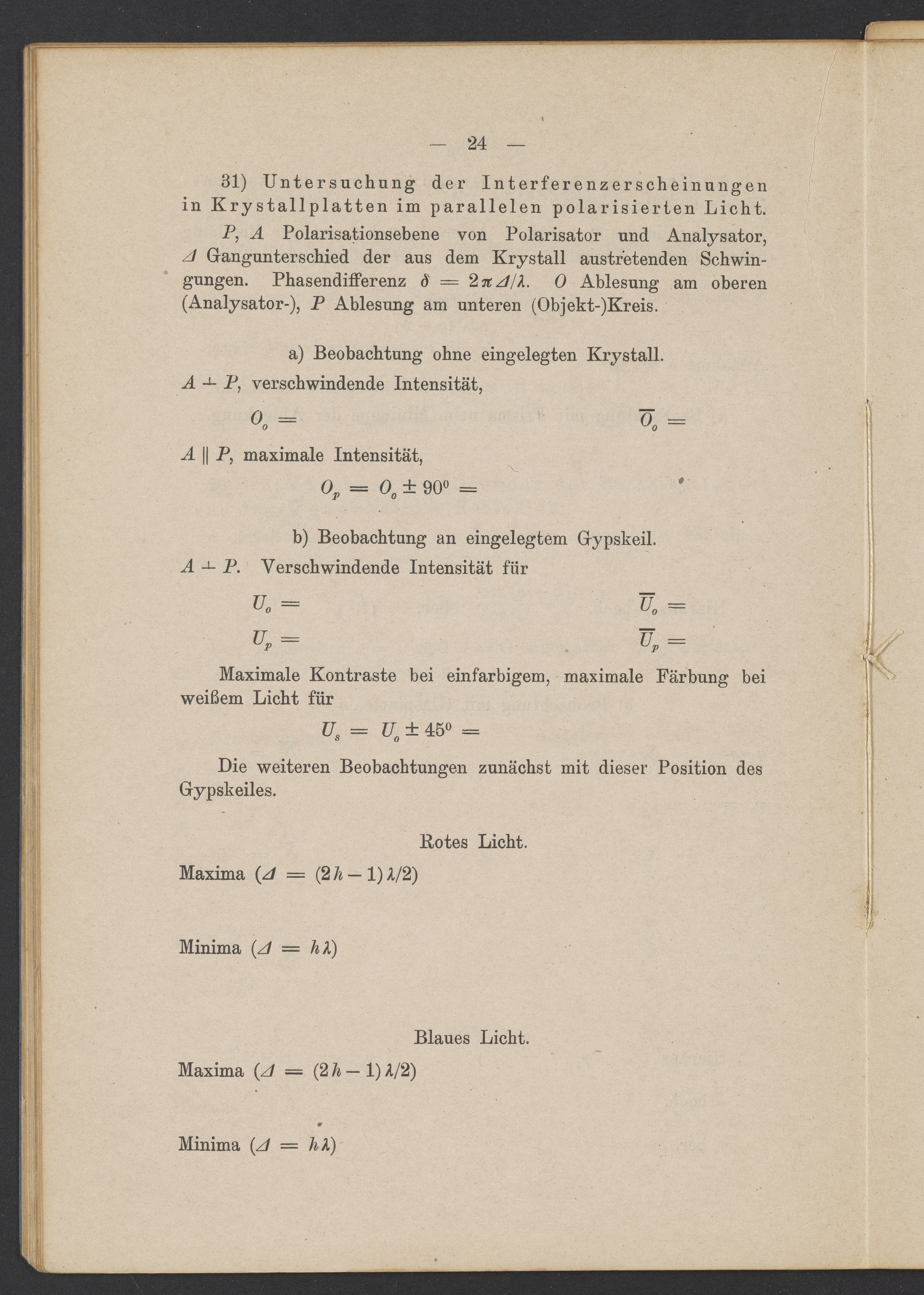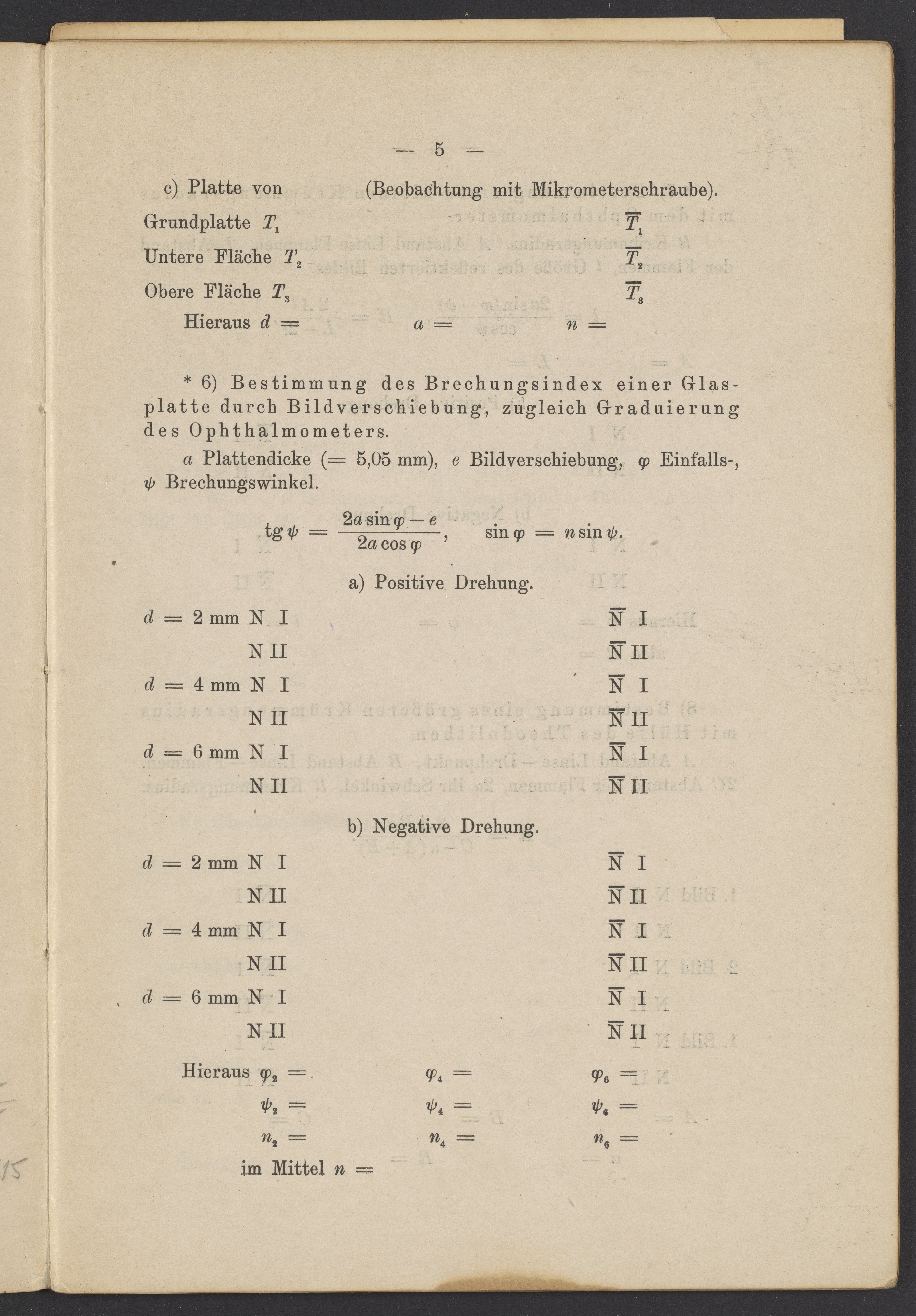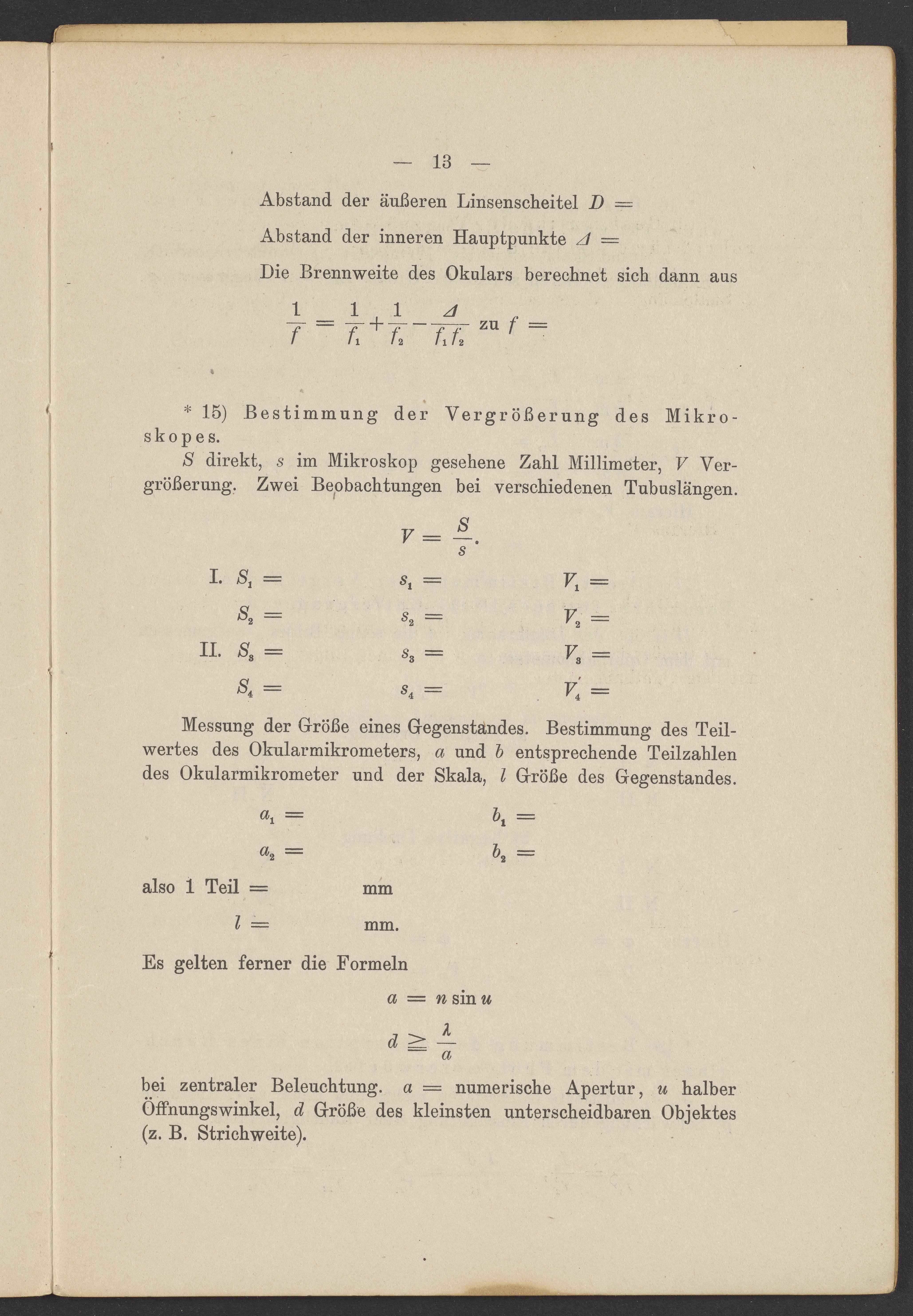 Beobachtungsresultate aus dem Praktikum über Optik