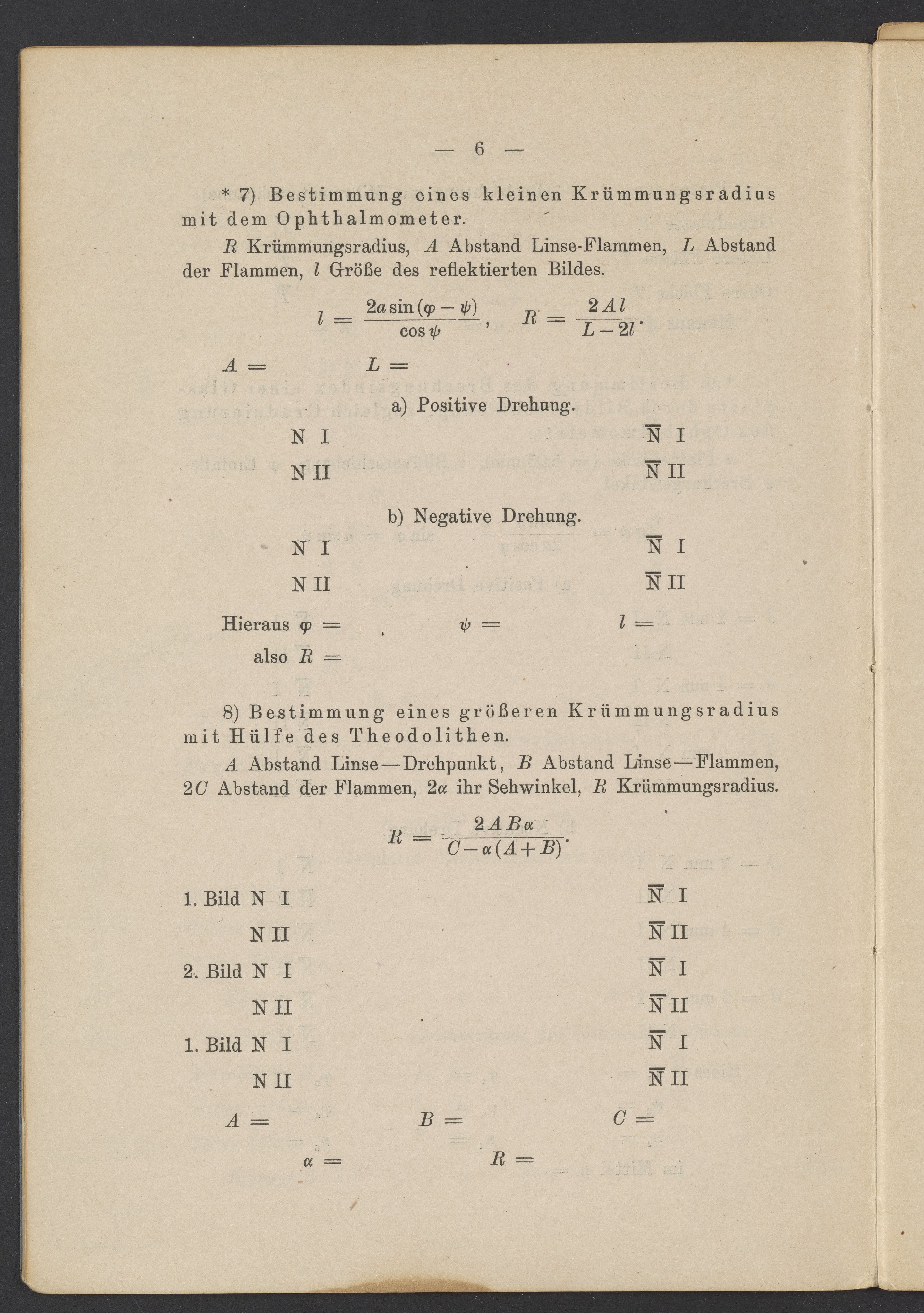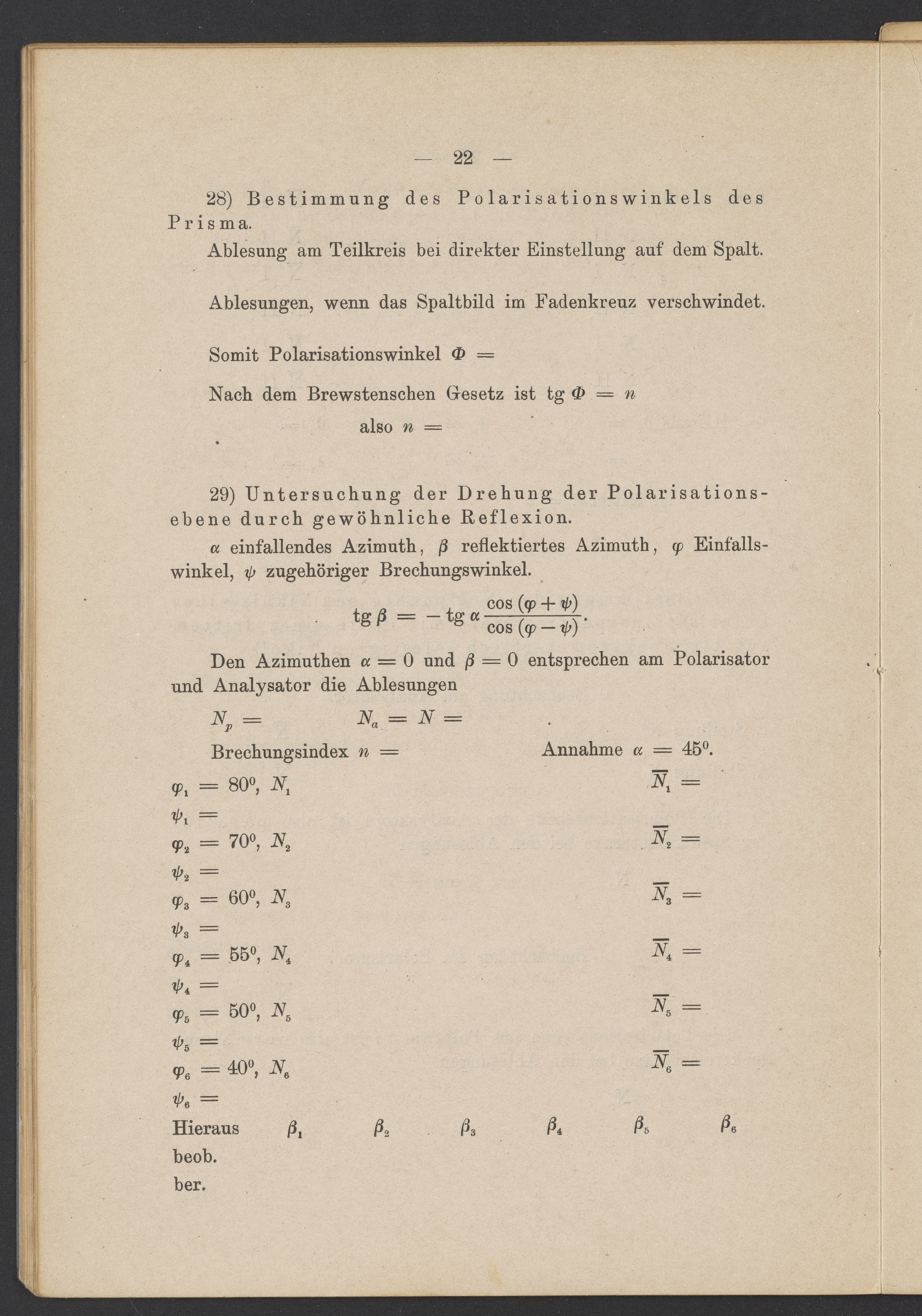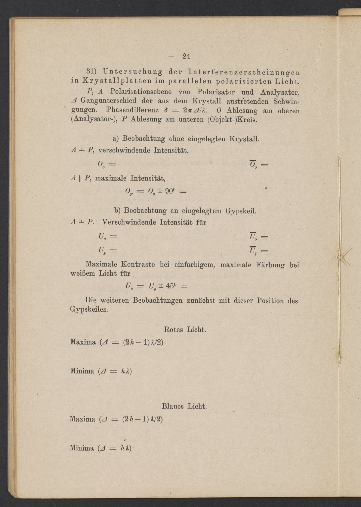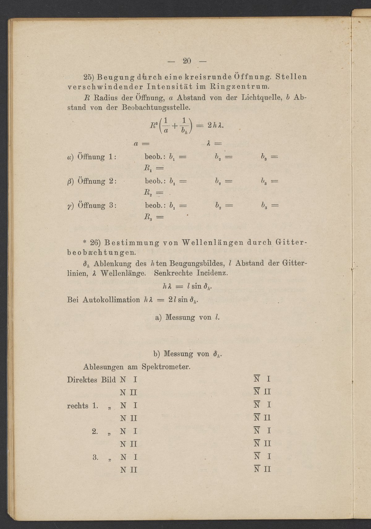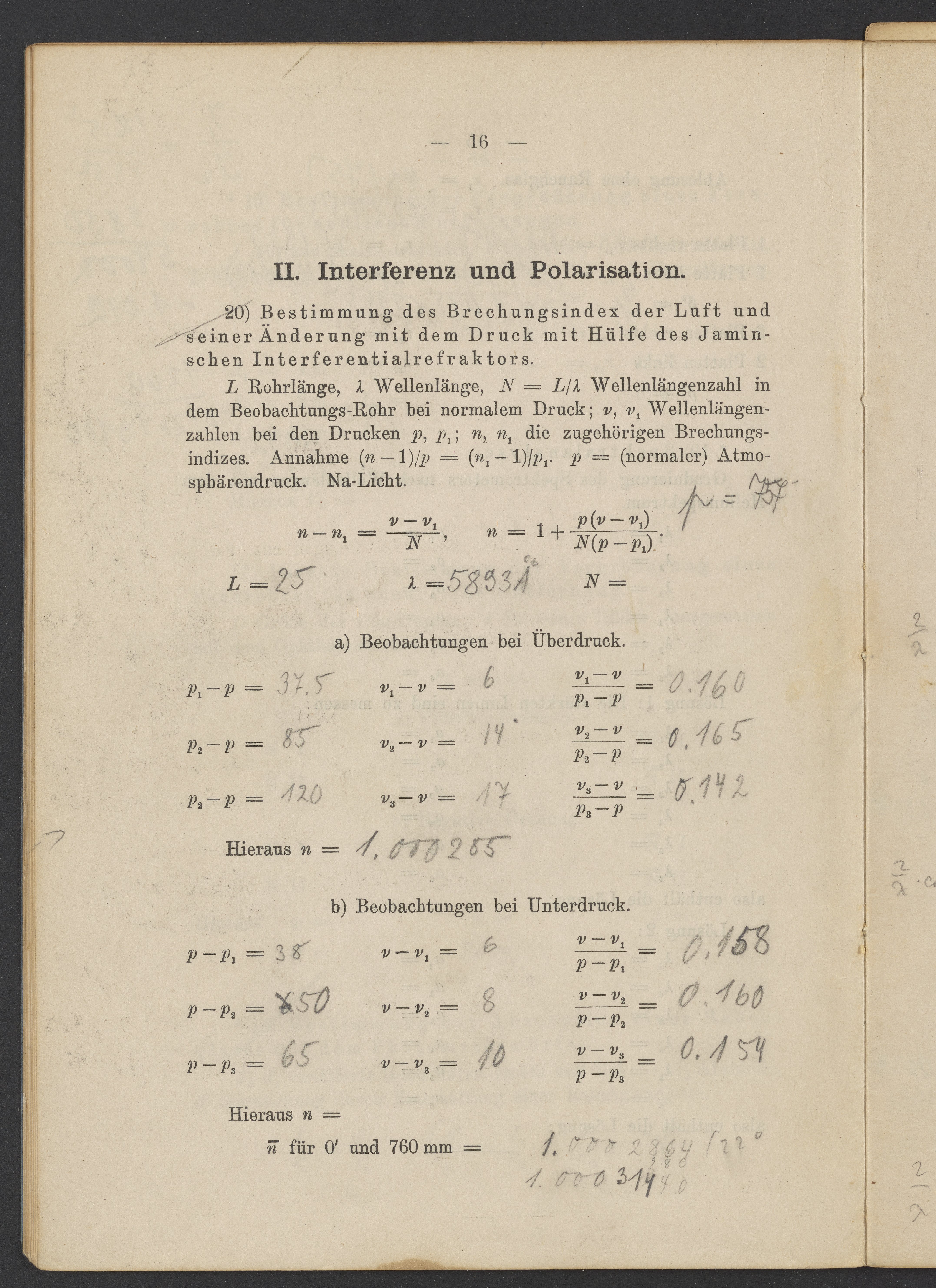 Beobachtungsresultate aus dem Praktikum über Optik