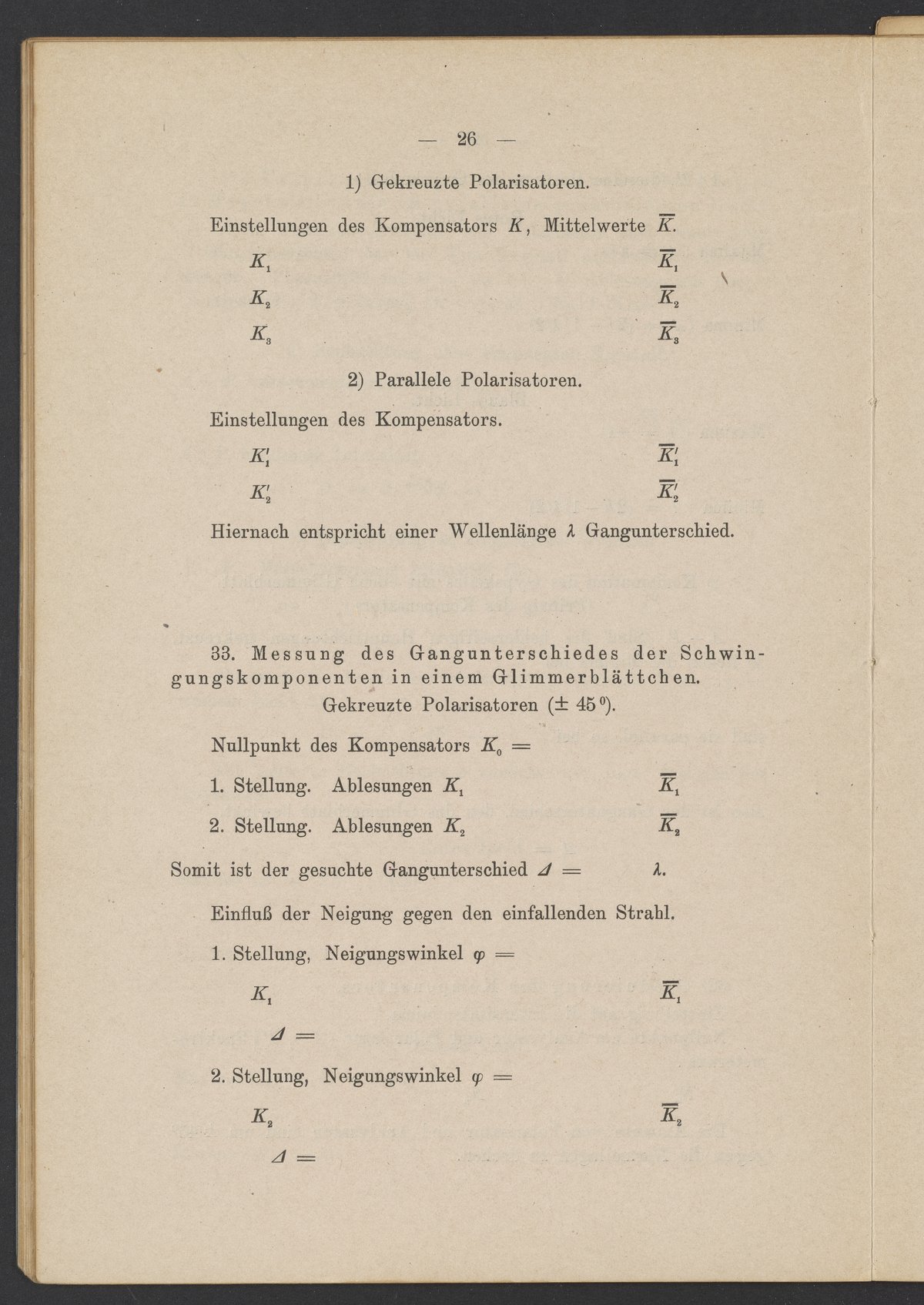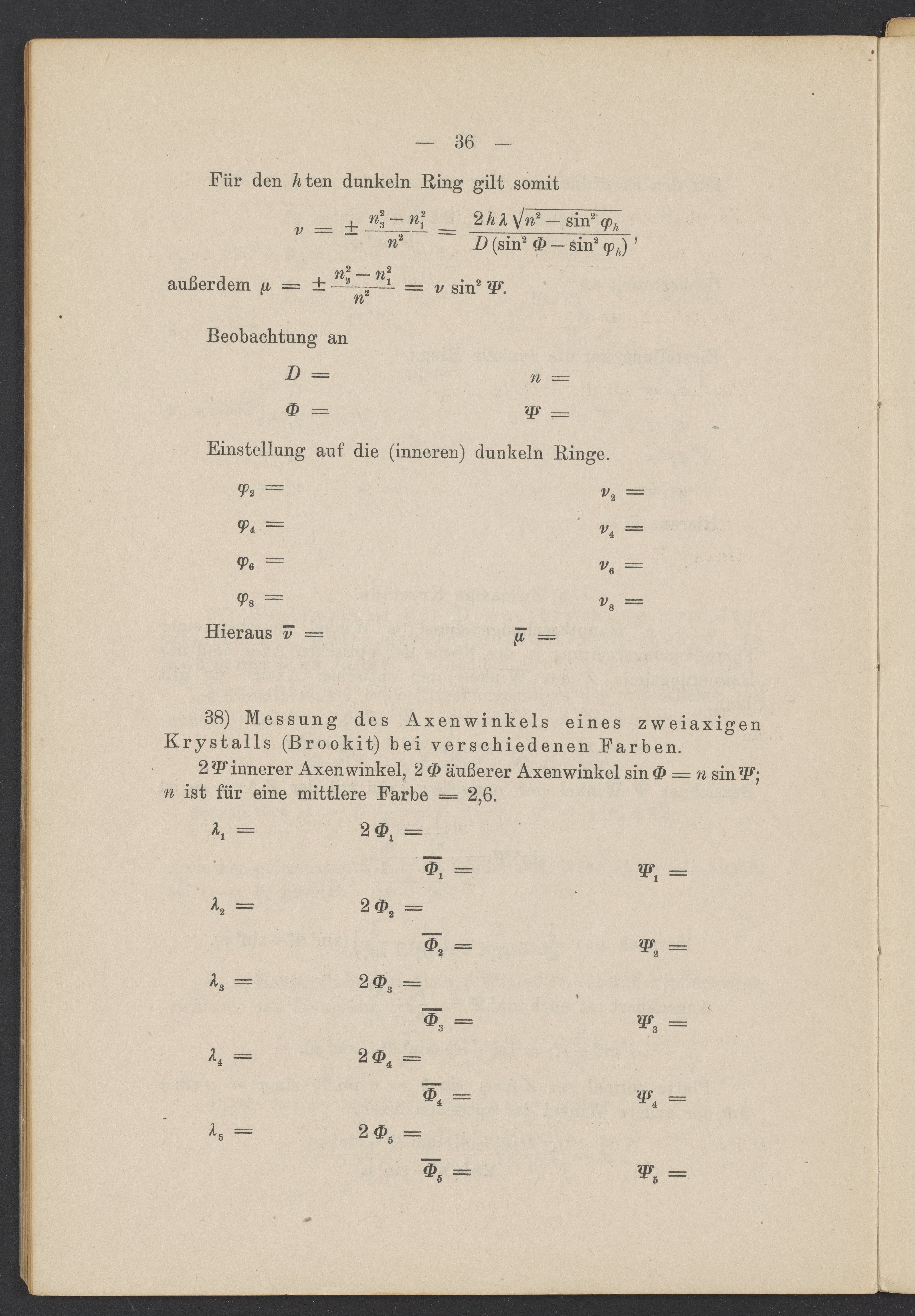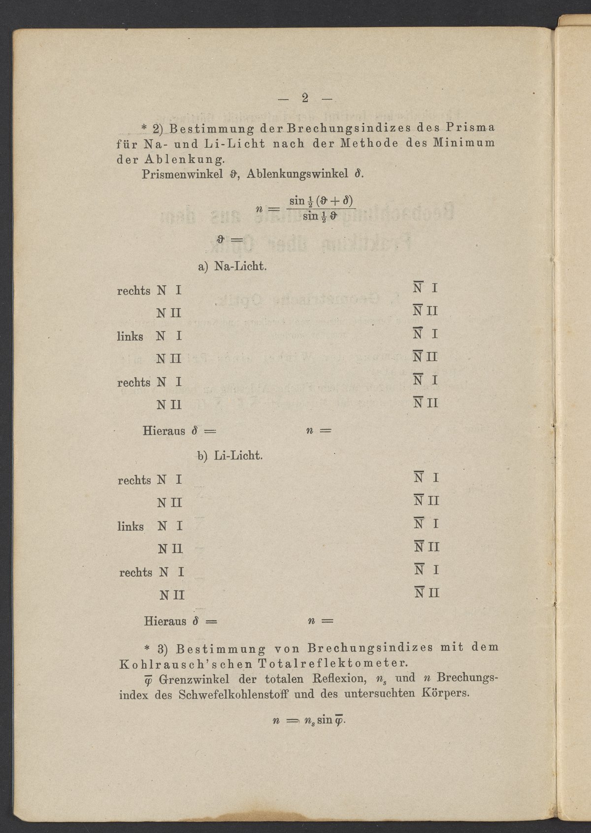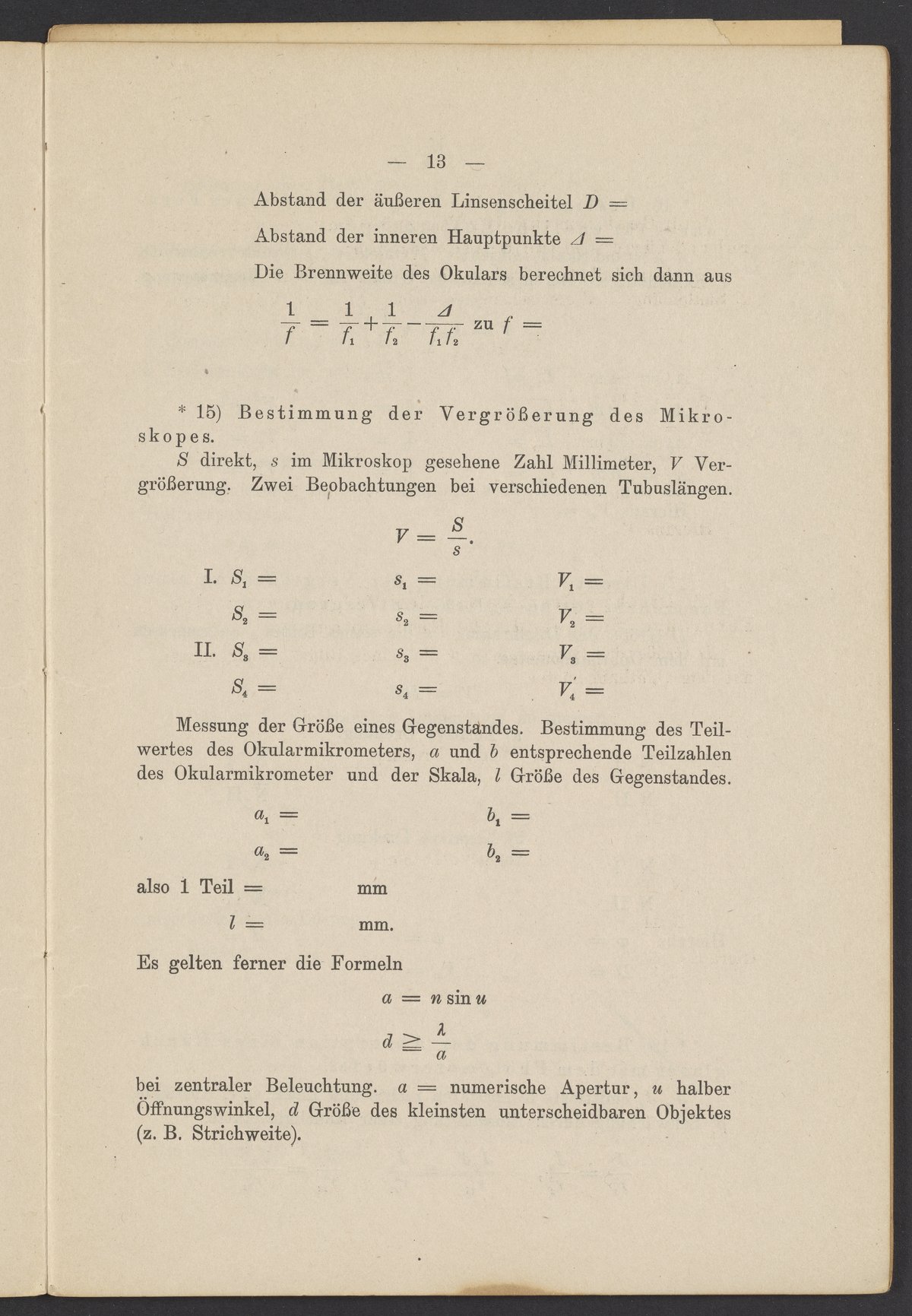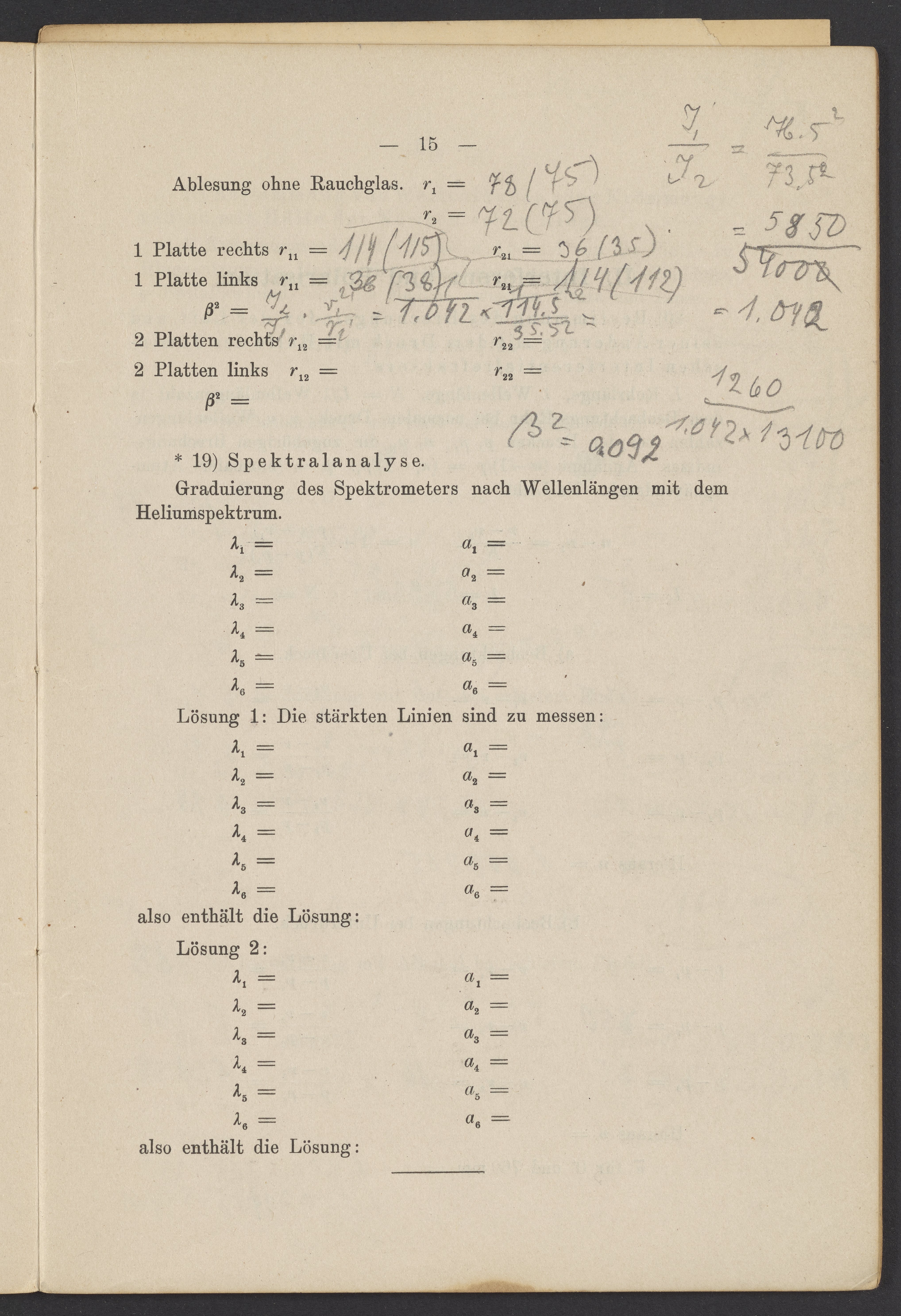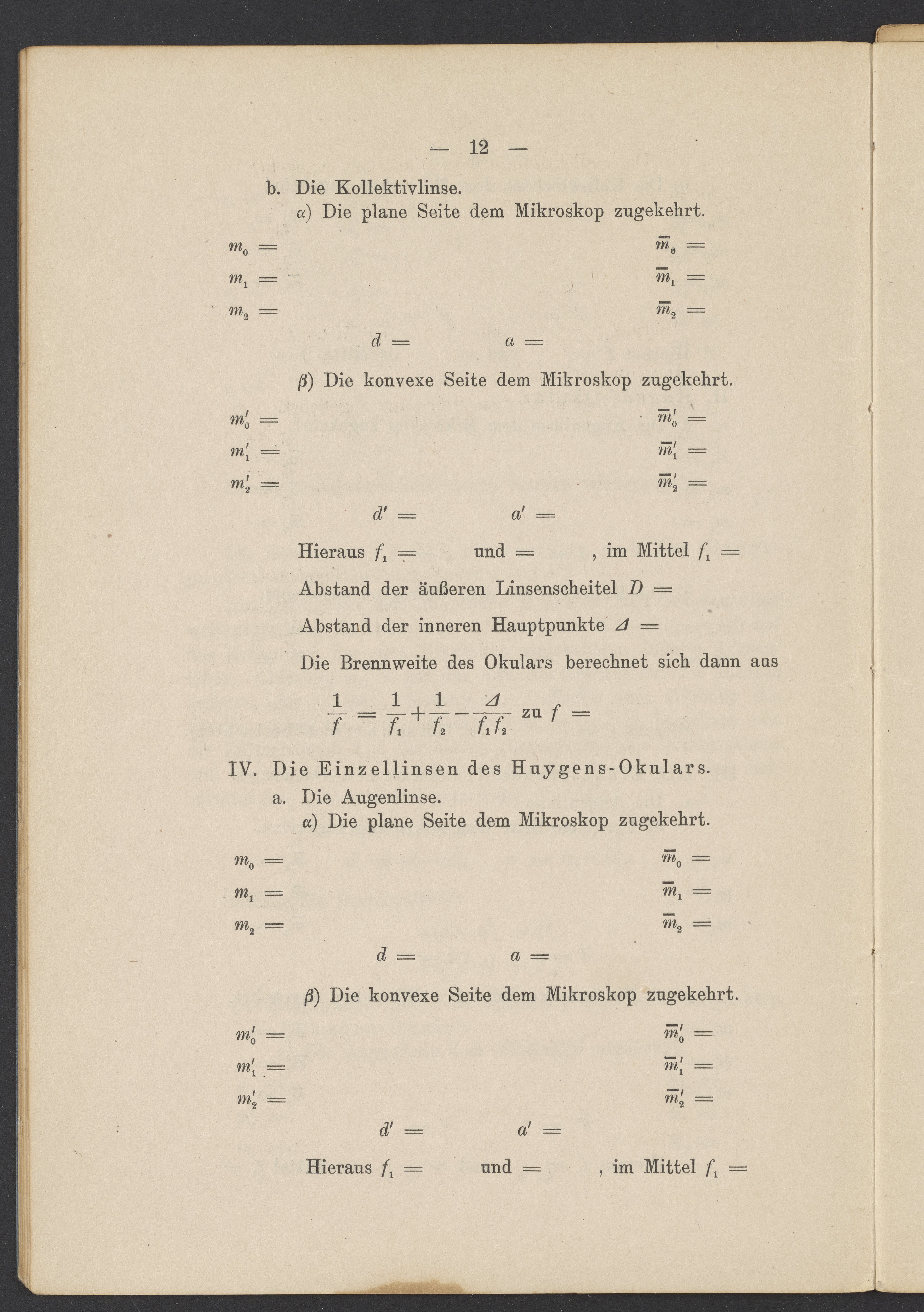 Beobachtungsresultate aus dem Praktikum über Optik