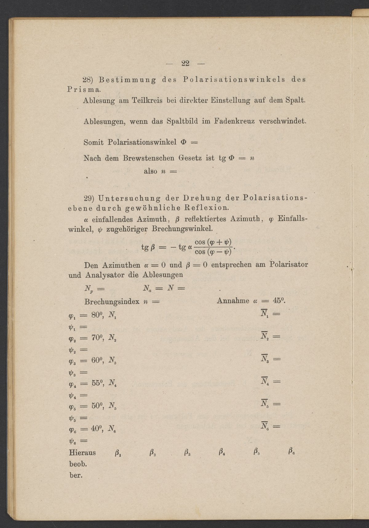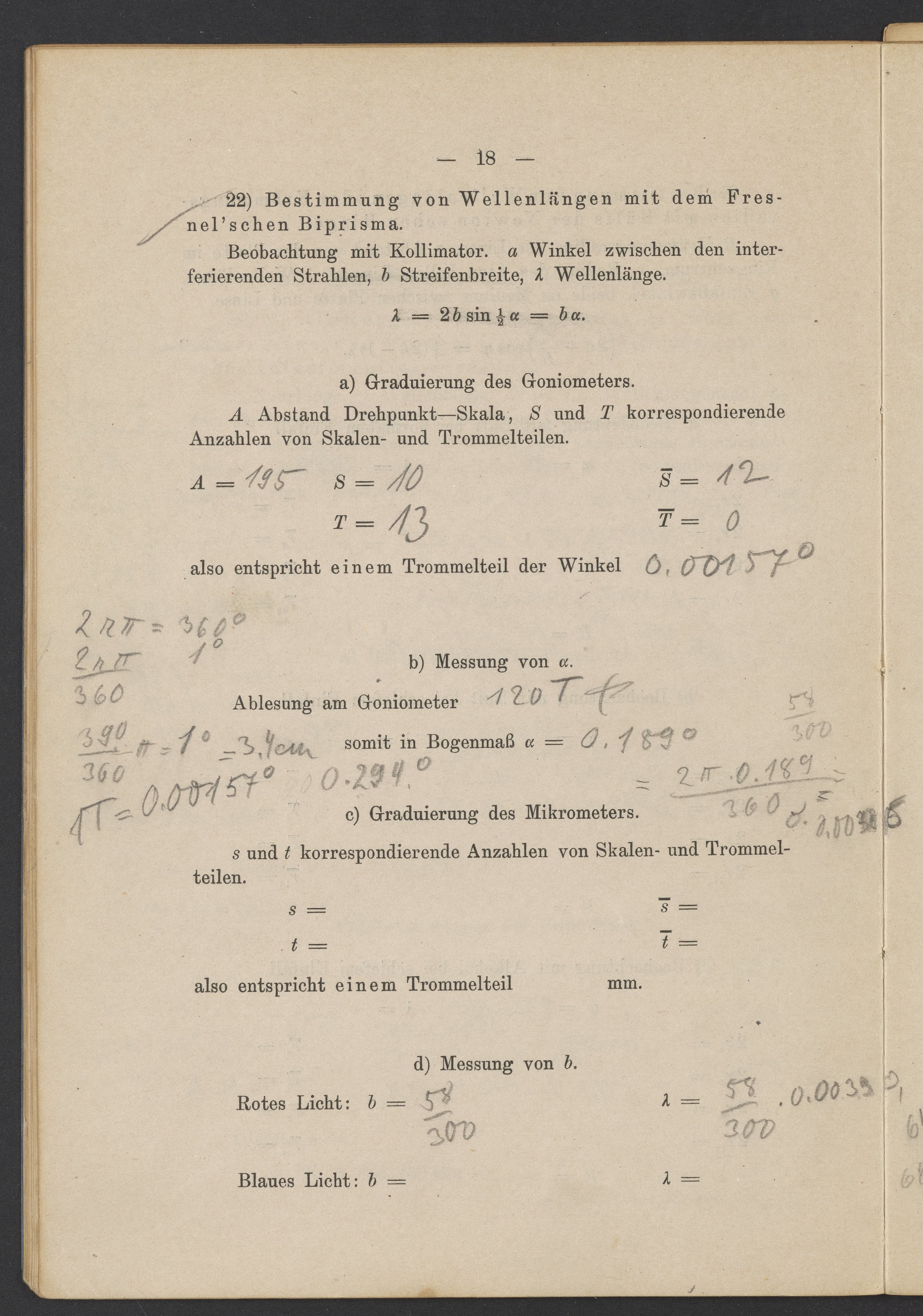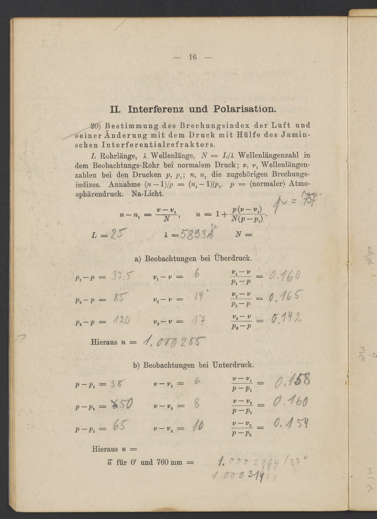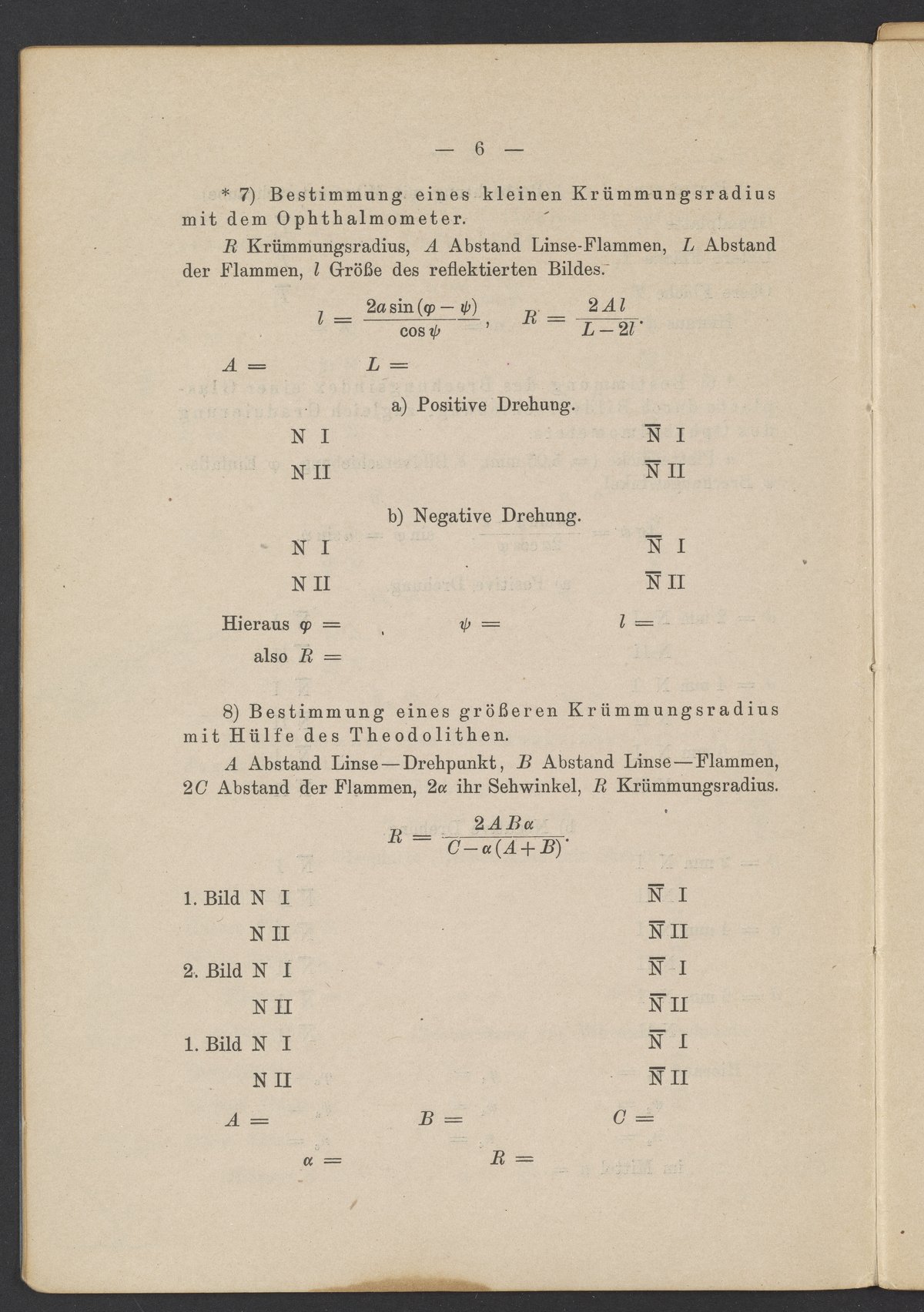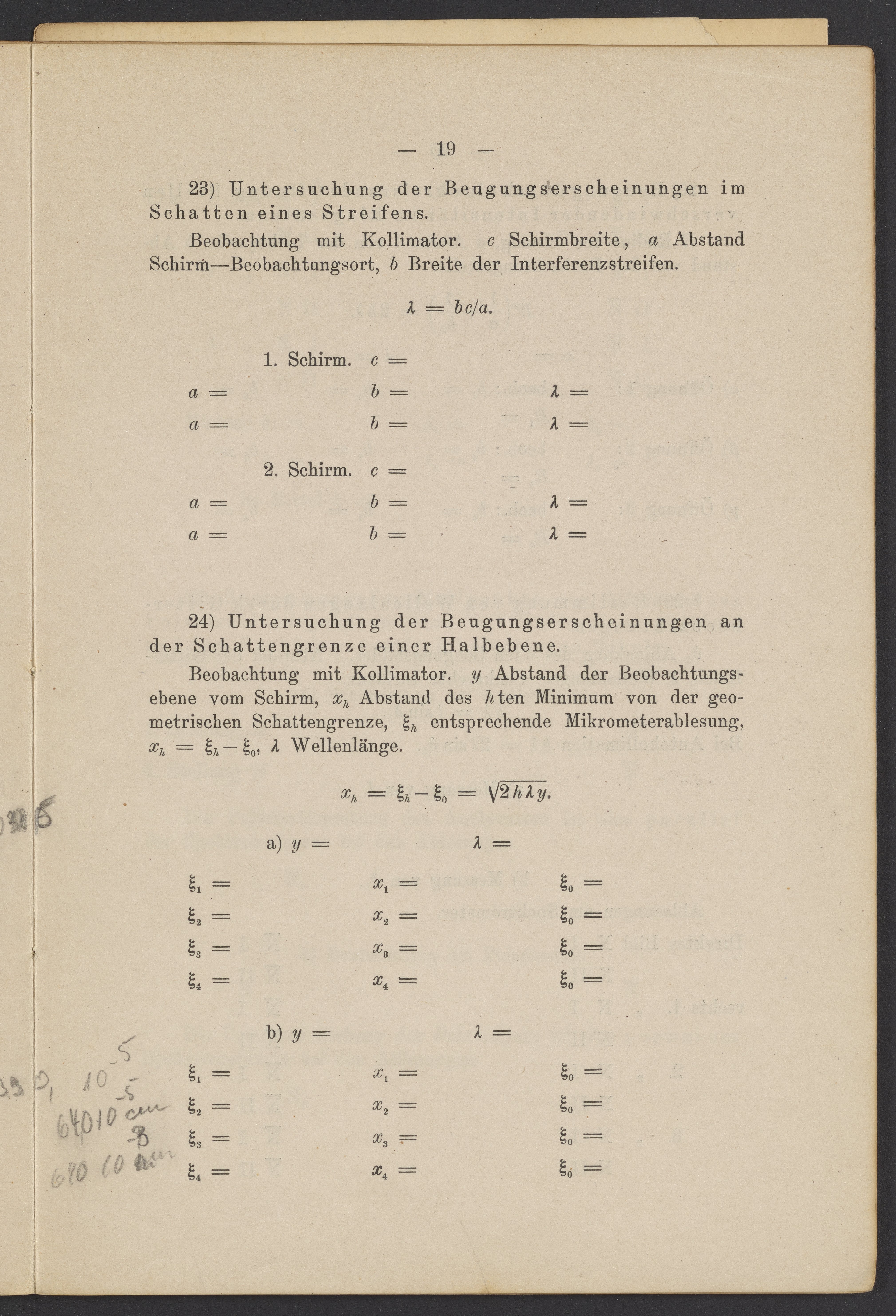 Beobachtungsresultate aus dem Praktikum über Optik