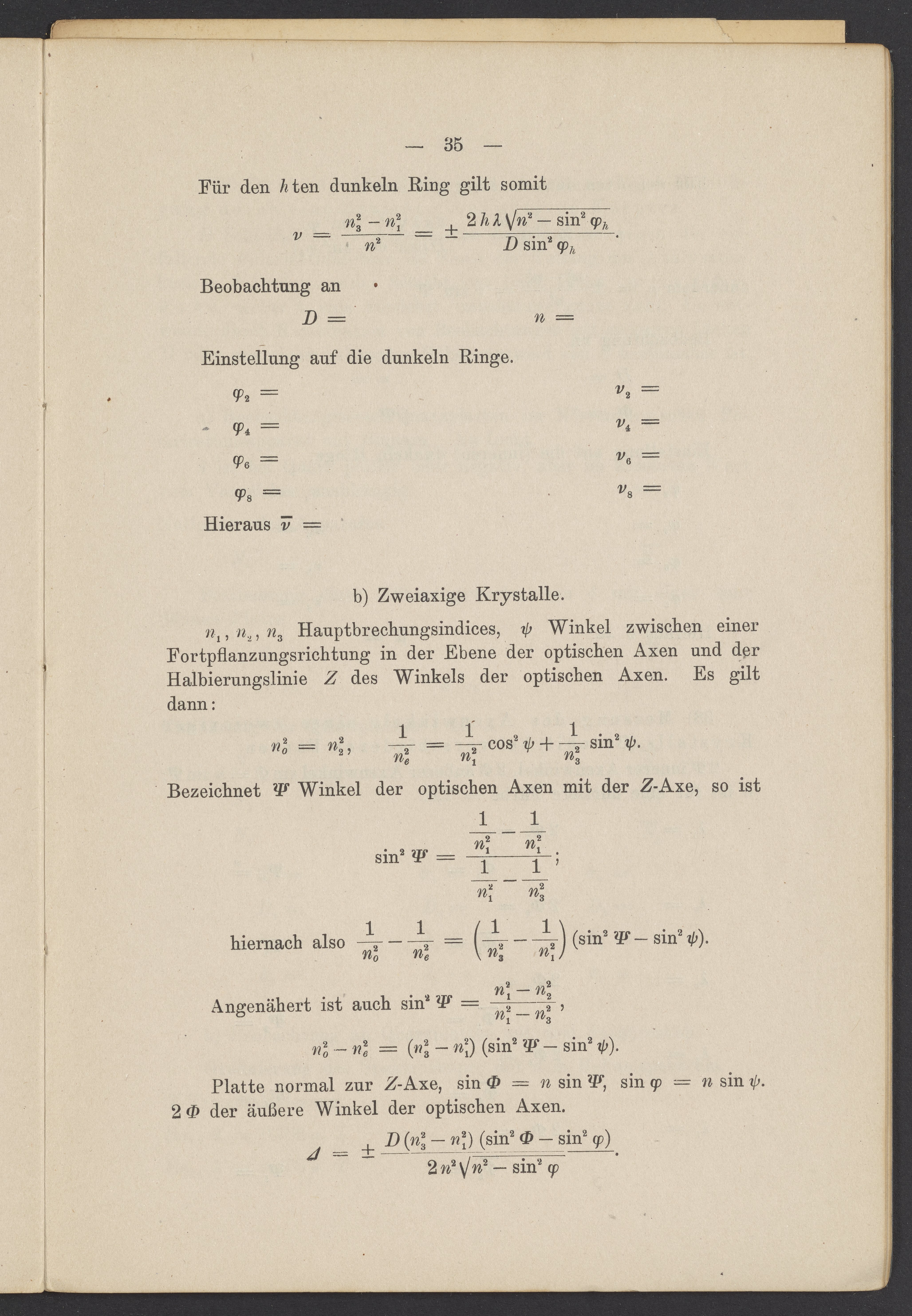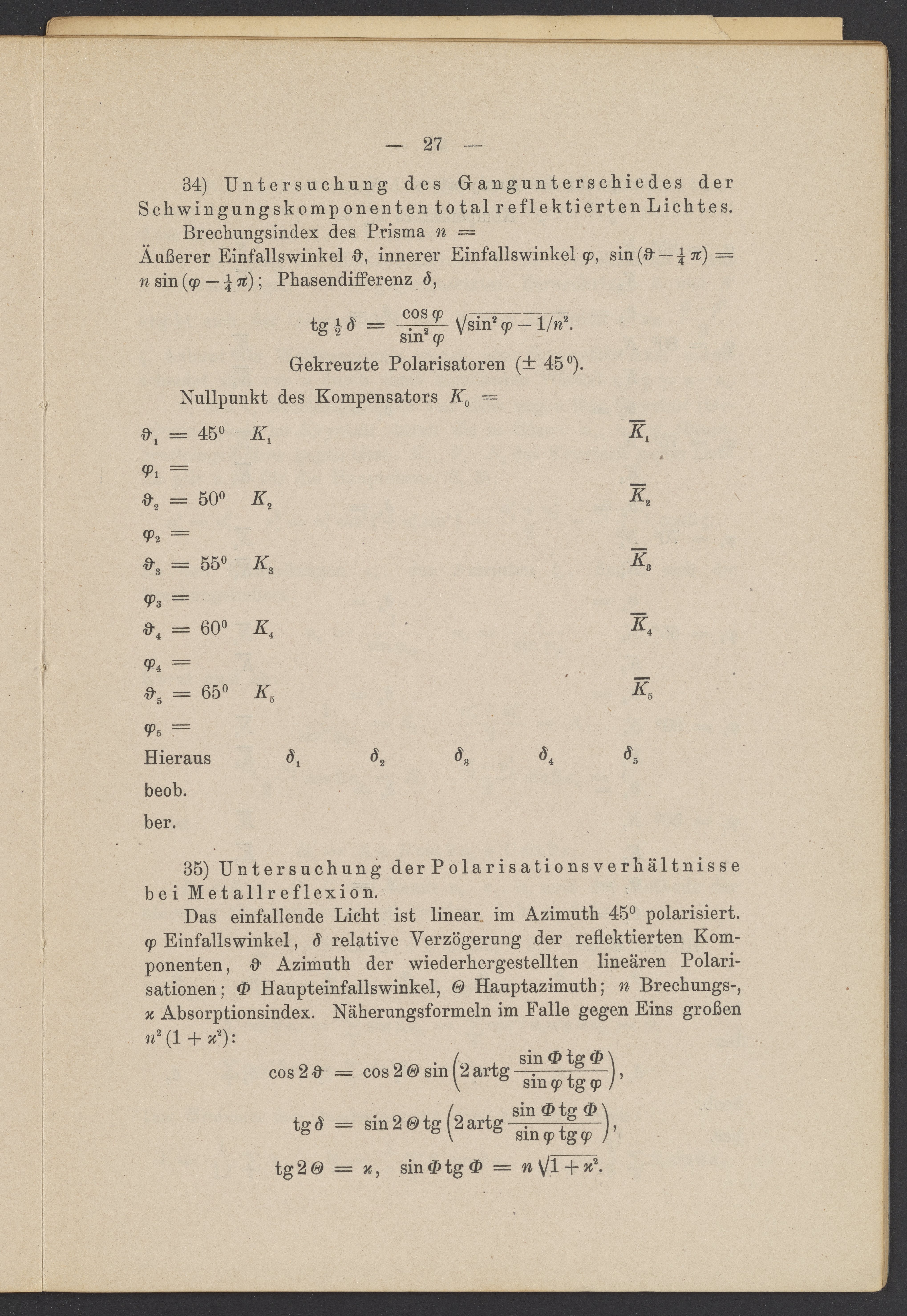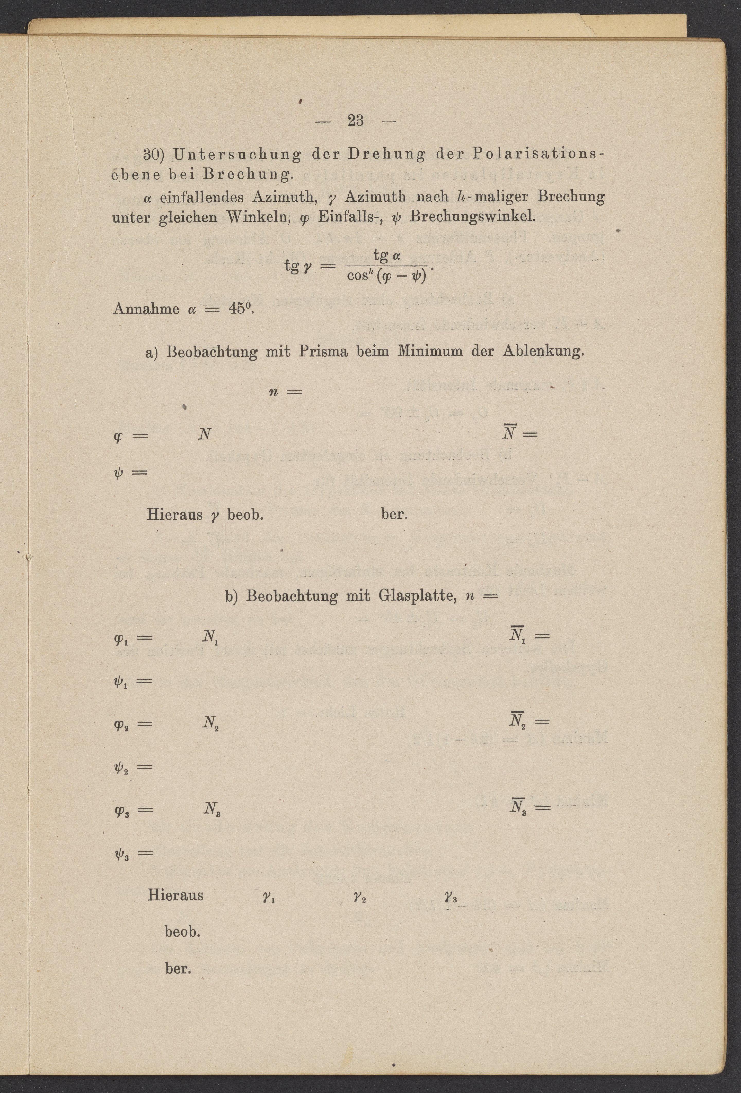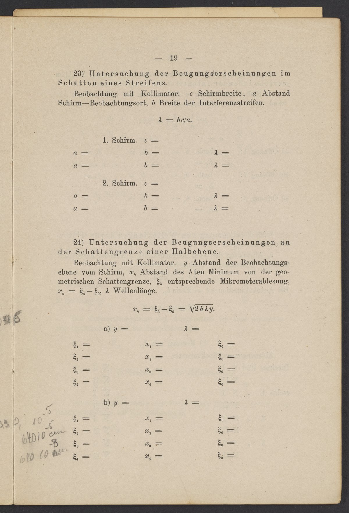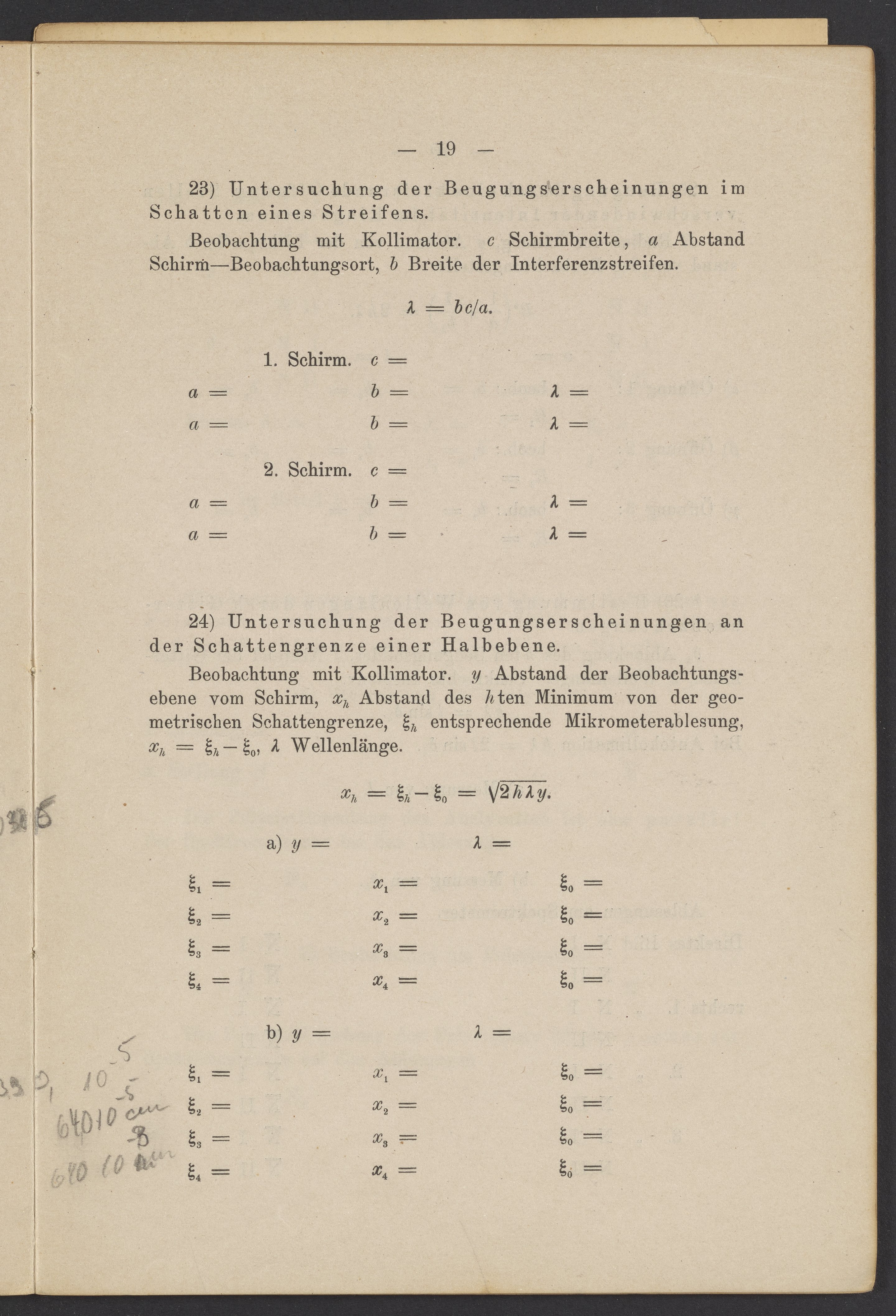 Beobachtungsresultate aus dem Praktikum über Optik