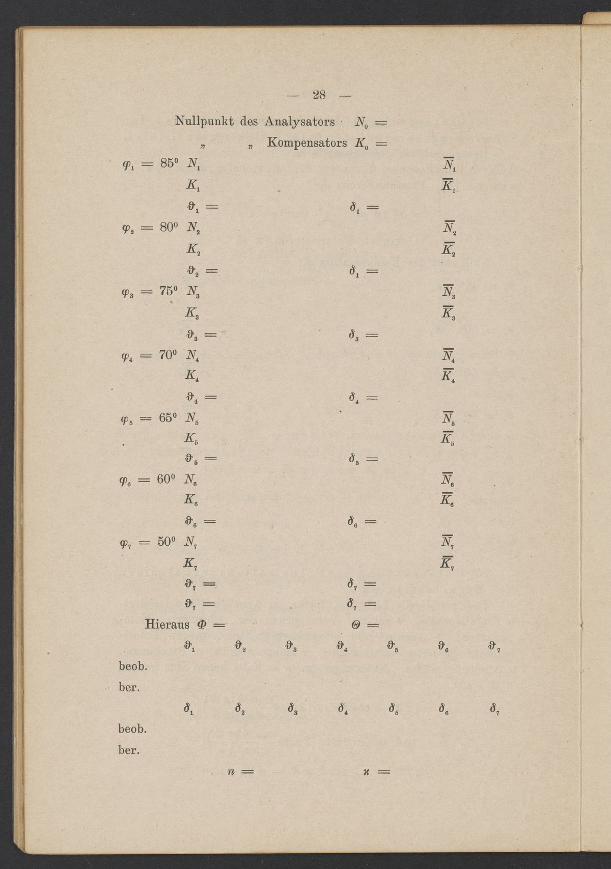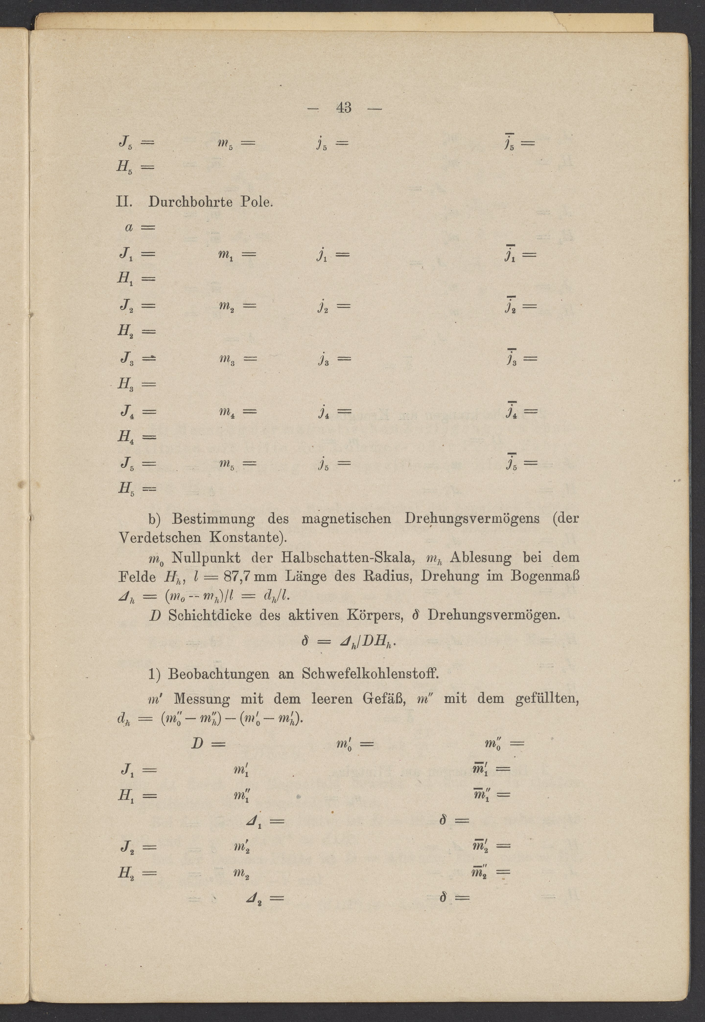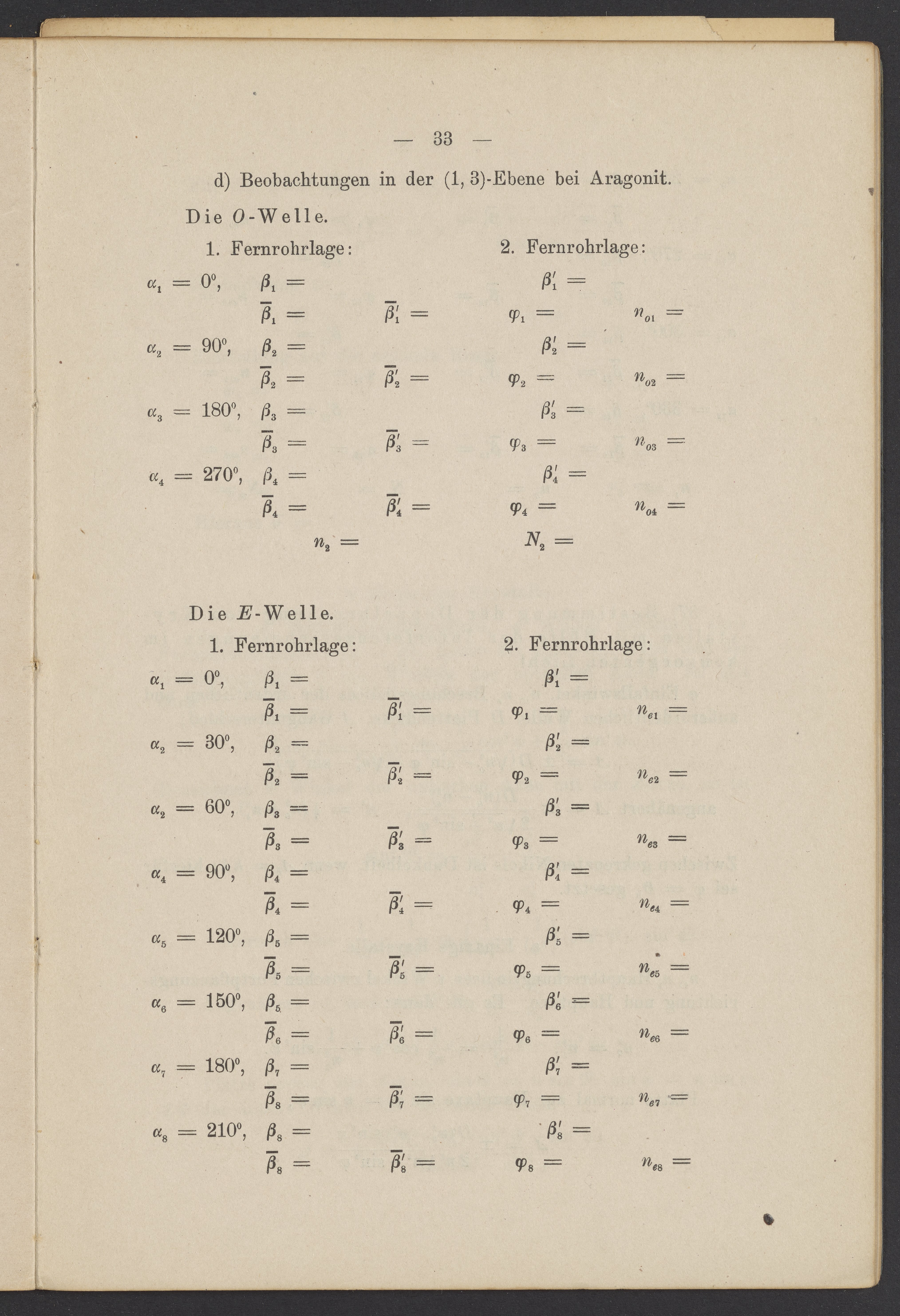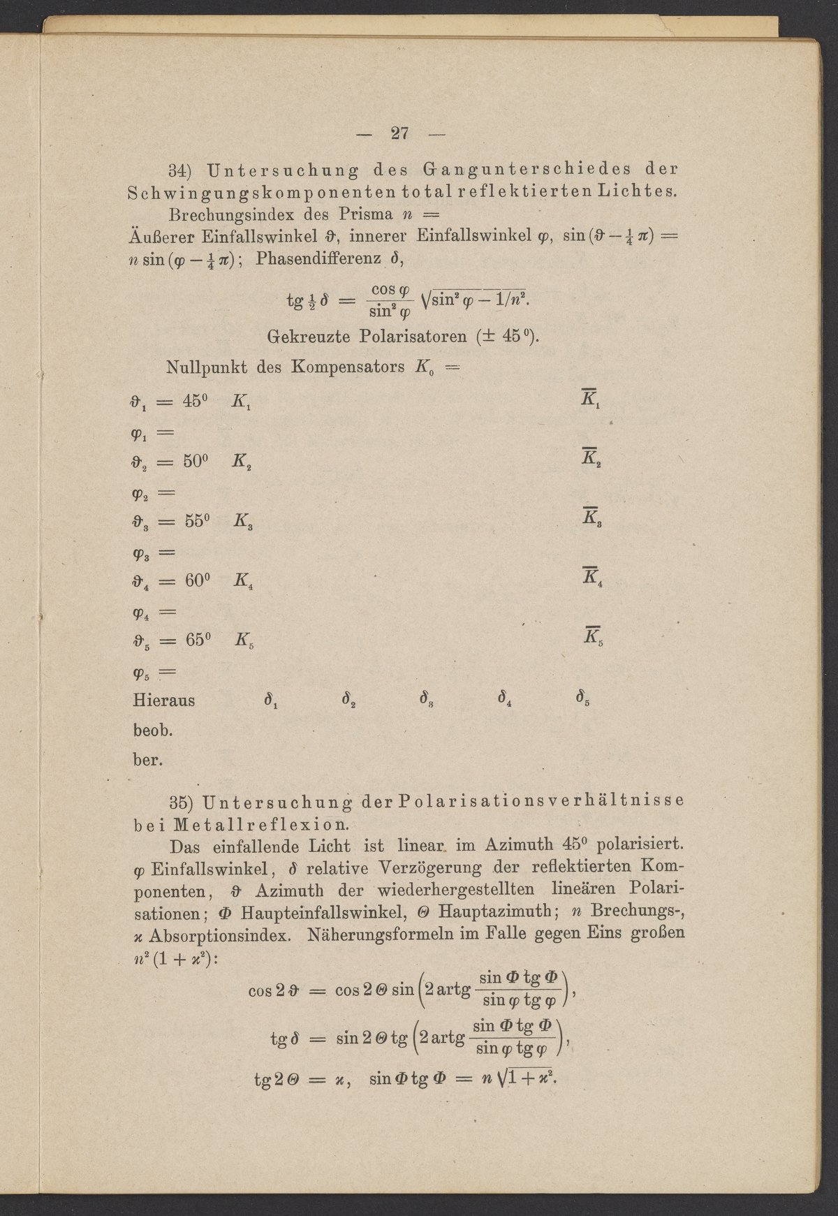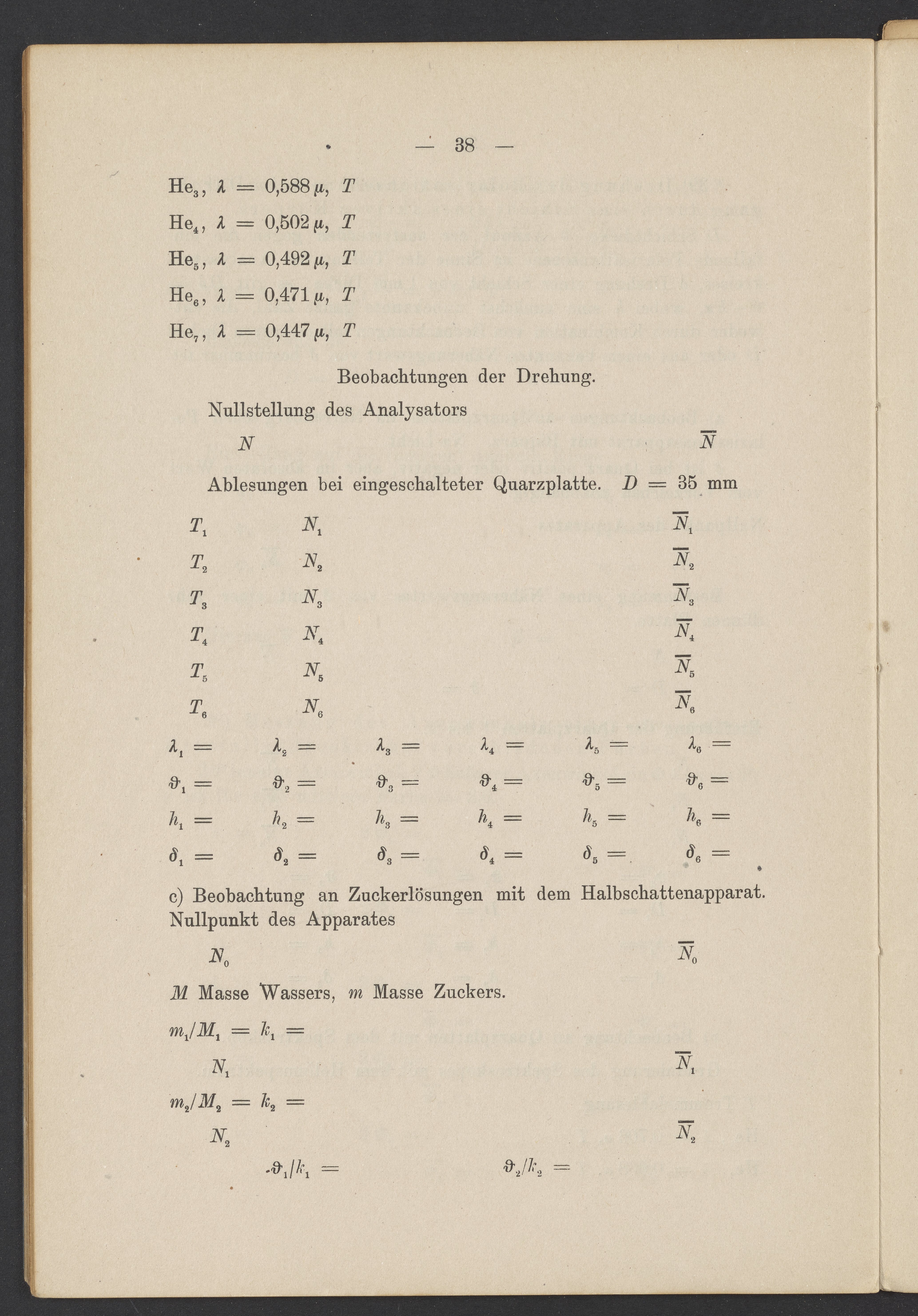 Beobachtungsresultate aus dem Praktikum über Optik