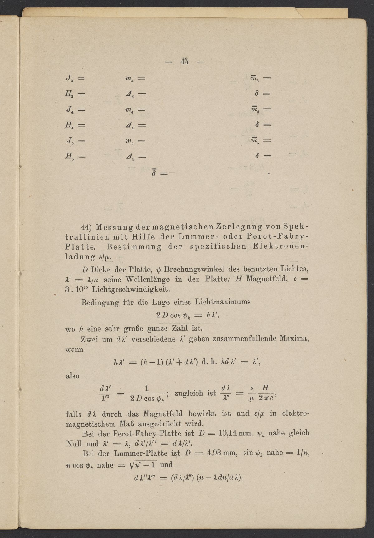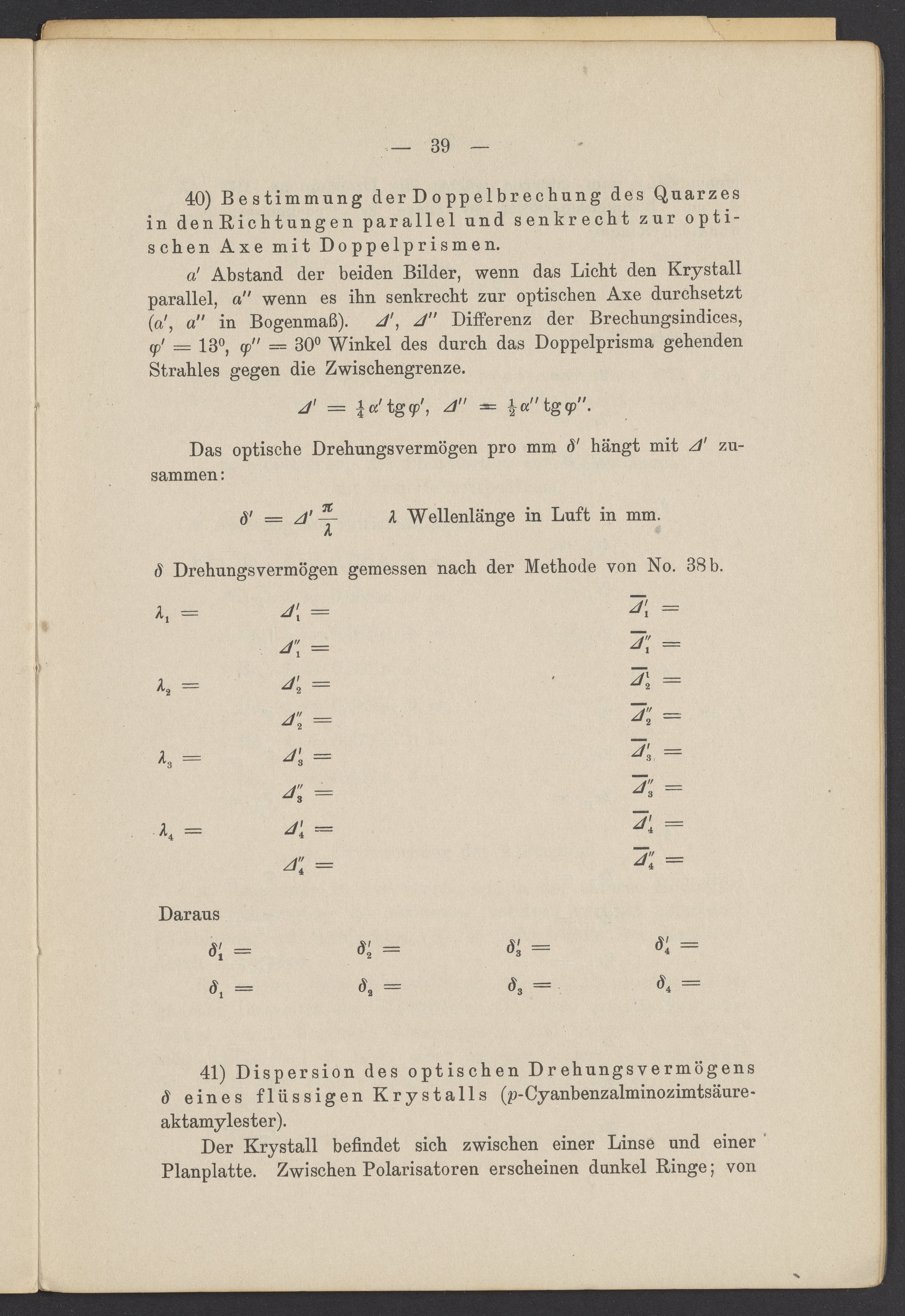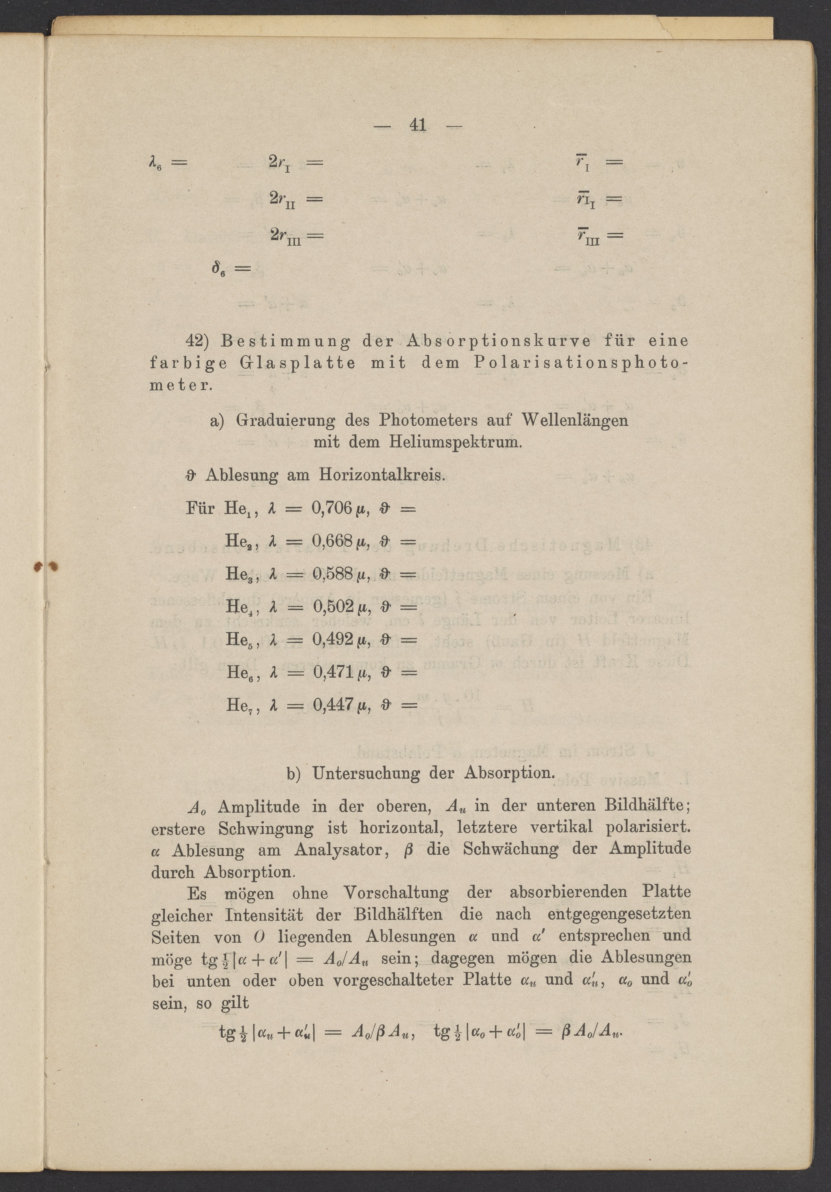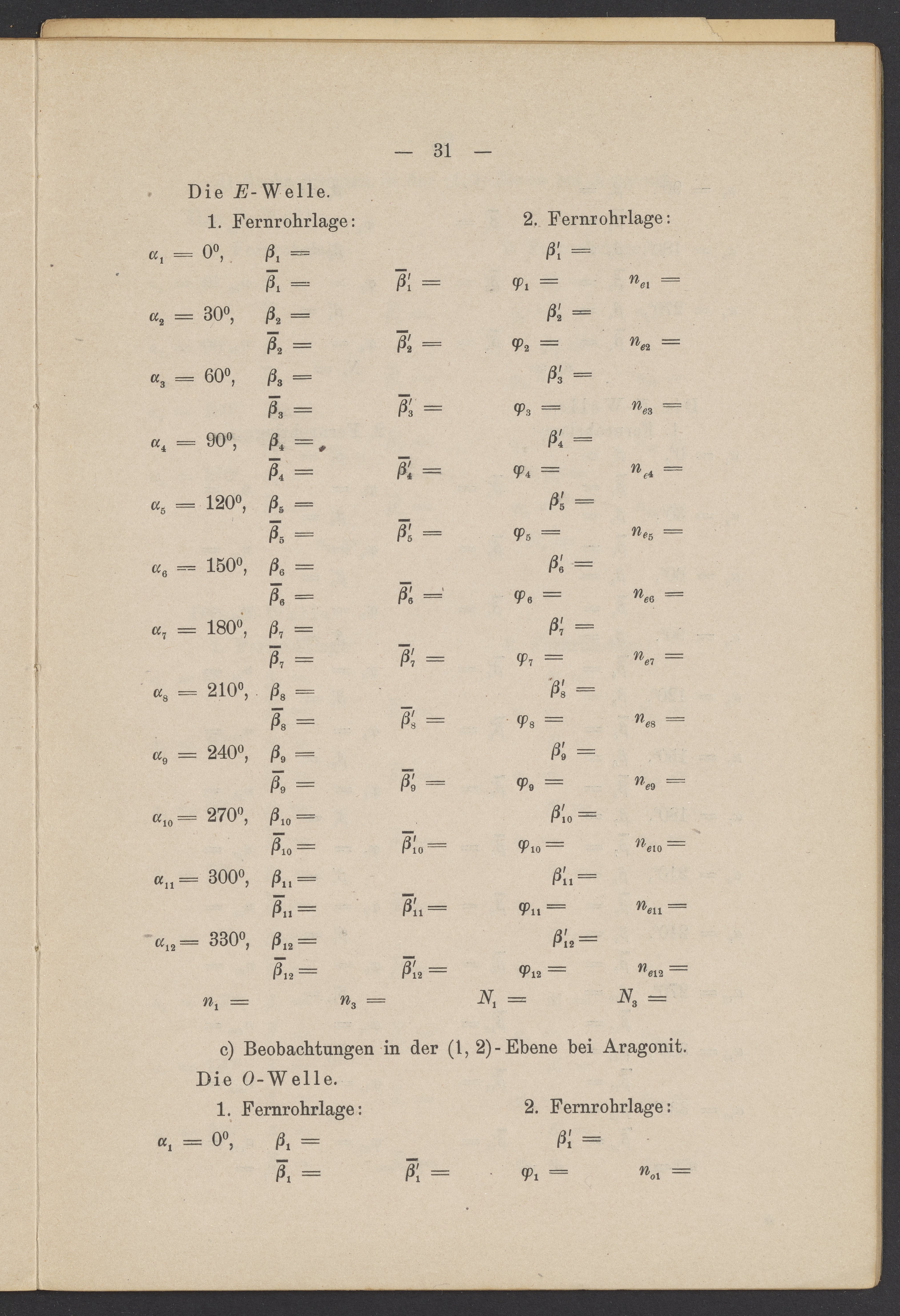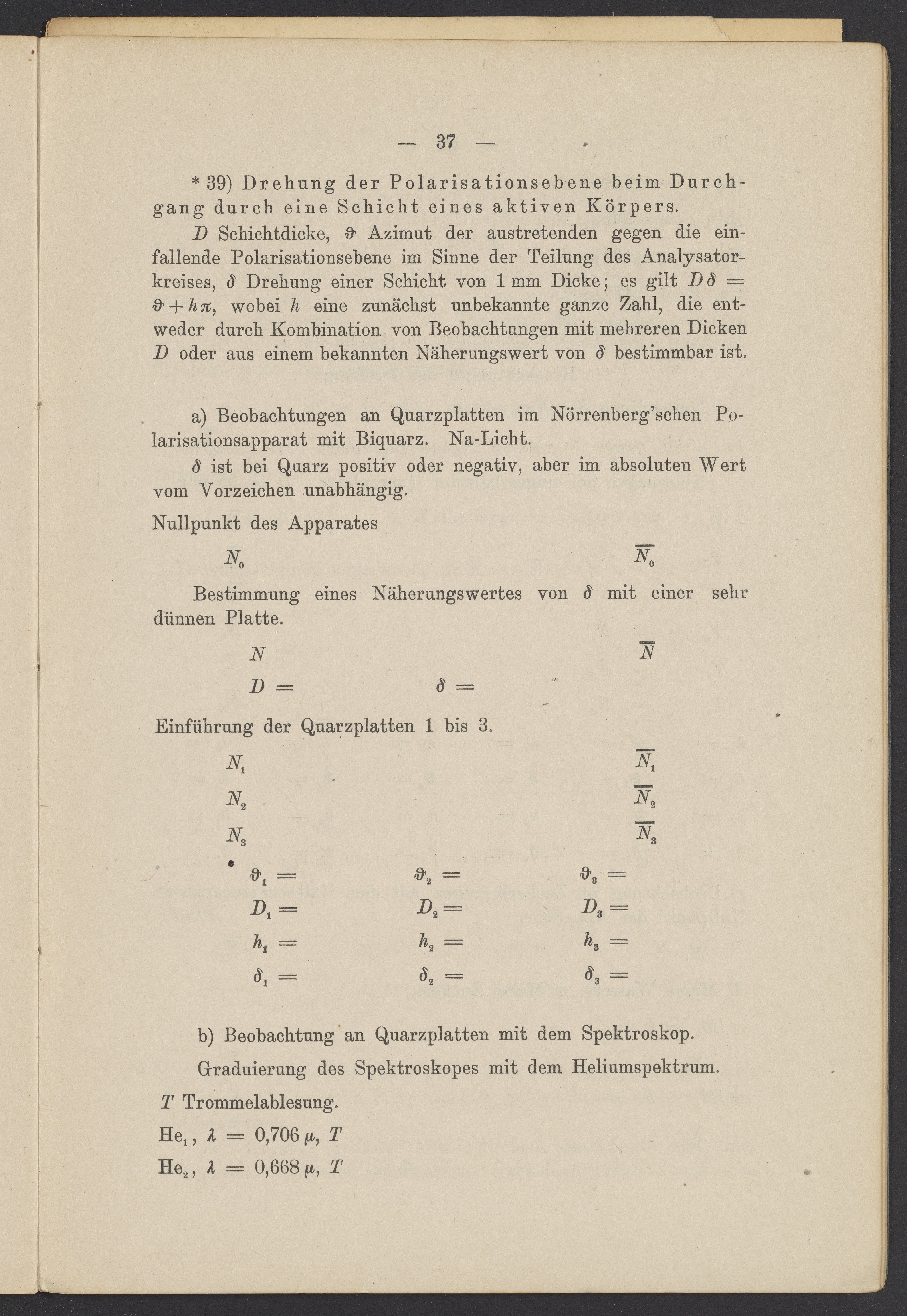Beobachtungsresultate aus dem Praktikum über Optik