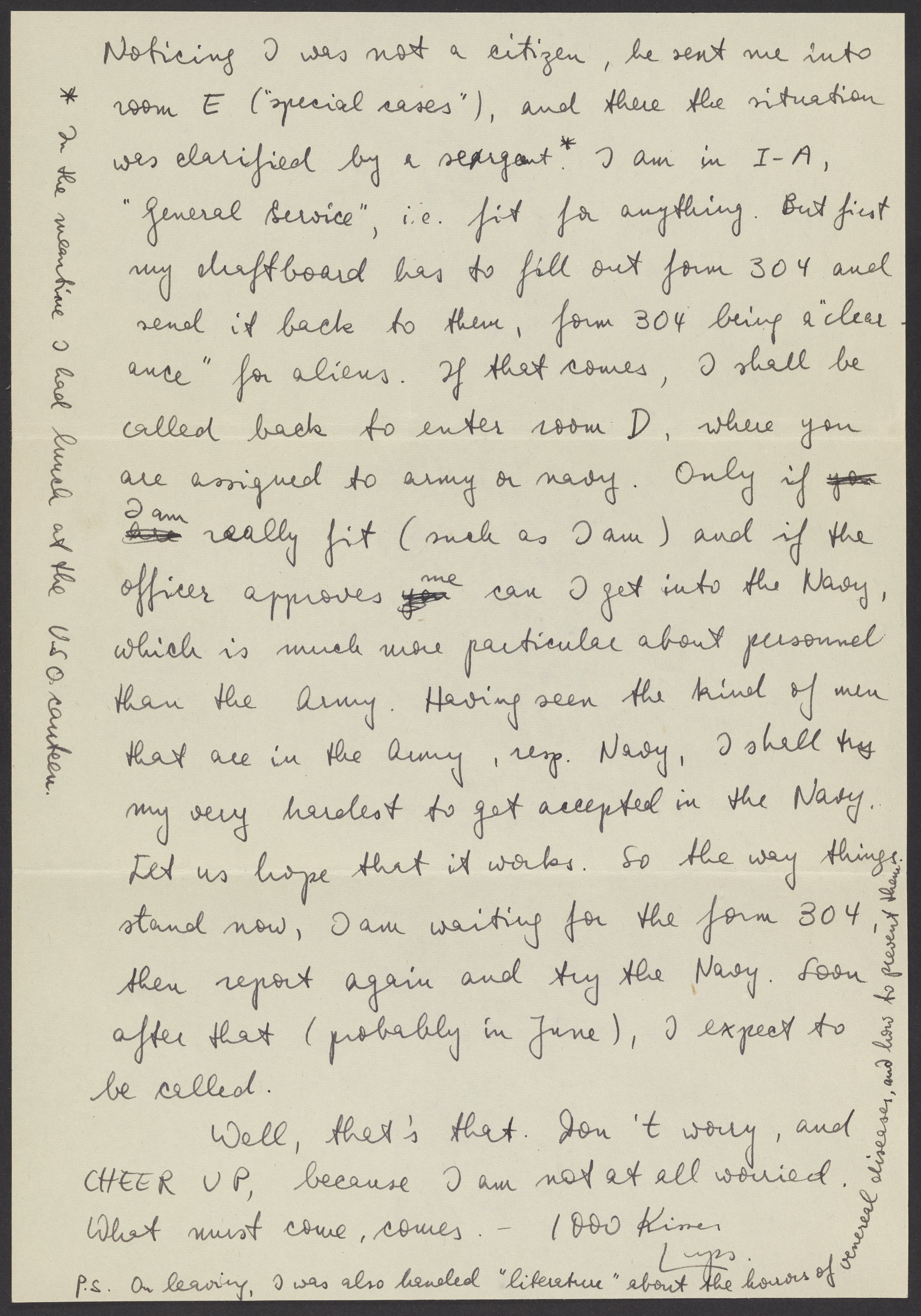 Small JPG1200 x 1717px — 277 KBLarge JPG2880 x 4121px — 1.7 MBFull-sized JPG4577 x 6549px — 4.3 MBOriginal fileTIFF — 4577 x 6549px — 85.8 MBLetter from Kurt M. Mislow (1923-2017) to his parents, Ida and Max. Mislow tells his father how proud he is of him, and then details a physical examination he had with other students from the California Institute of Technology.