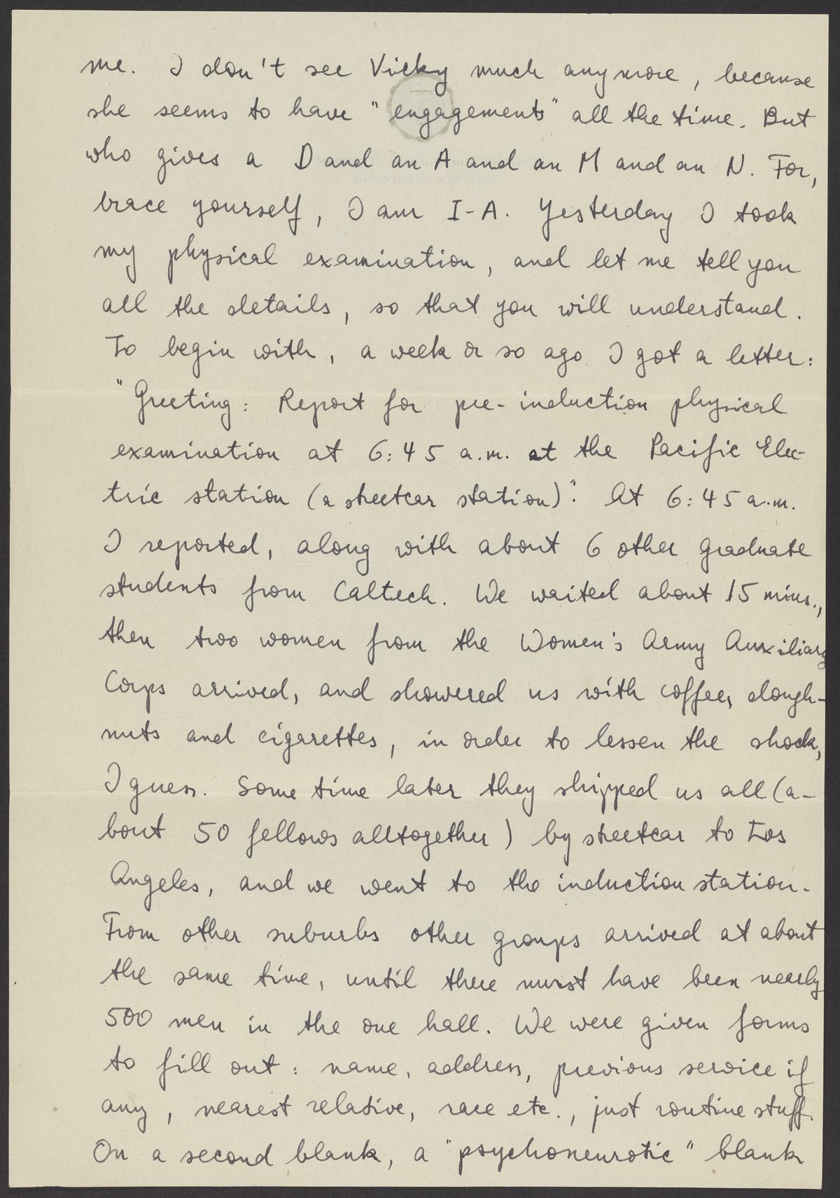 Small JPG1200 x 1717px — 277 KBLarge JPG2880 x 4121px — 1.7 MBFull-sized JPG4577 x 6549px — 4.3 MBOriginal fileTIFF — 4577 x 6549px — 85.8 MBLetter from Kurt M. Mislow (1923-2017) to his parents, Ida and Max. Mislow tells his father how proud he is of him, and then details a physical examination he had with other students from the California Institute of Technology.
