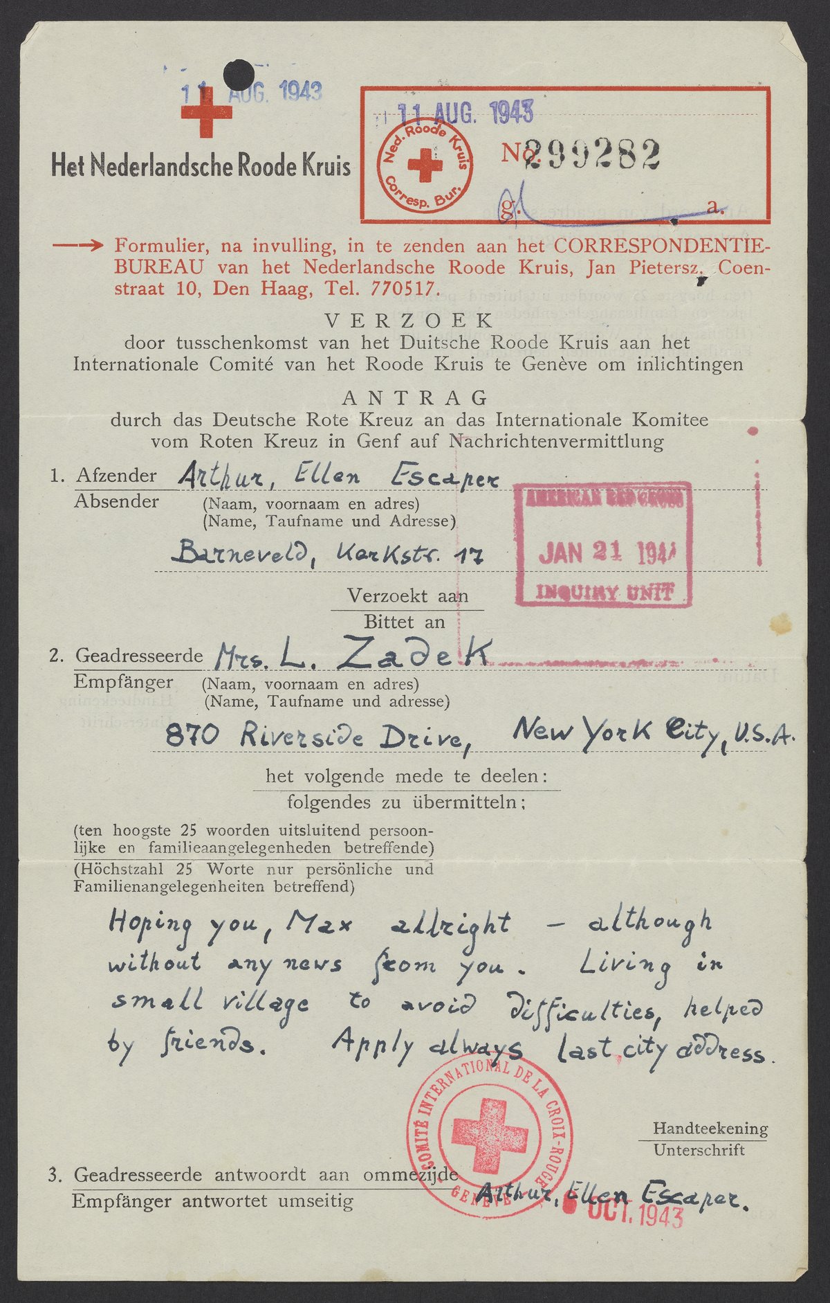 Letter from Arthur and Ellen Escaper (Alfred and Eva Schnell) to Liselotte Zadek, August 11, 1943