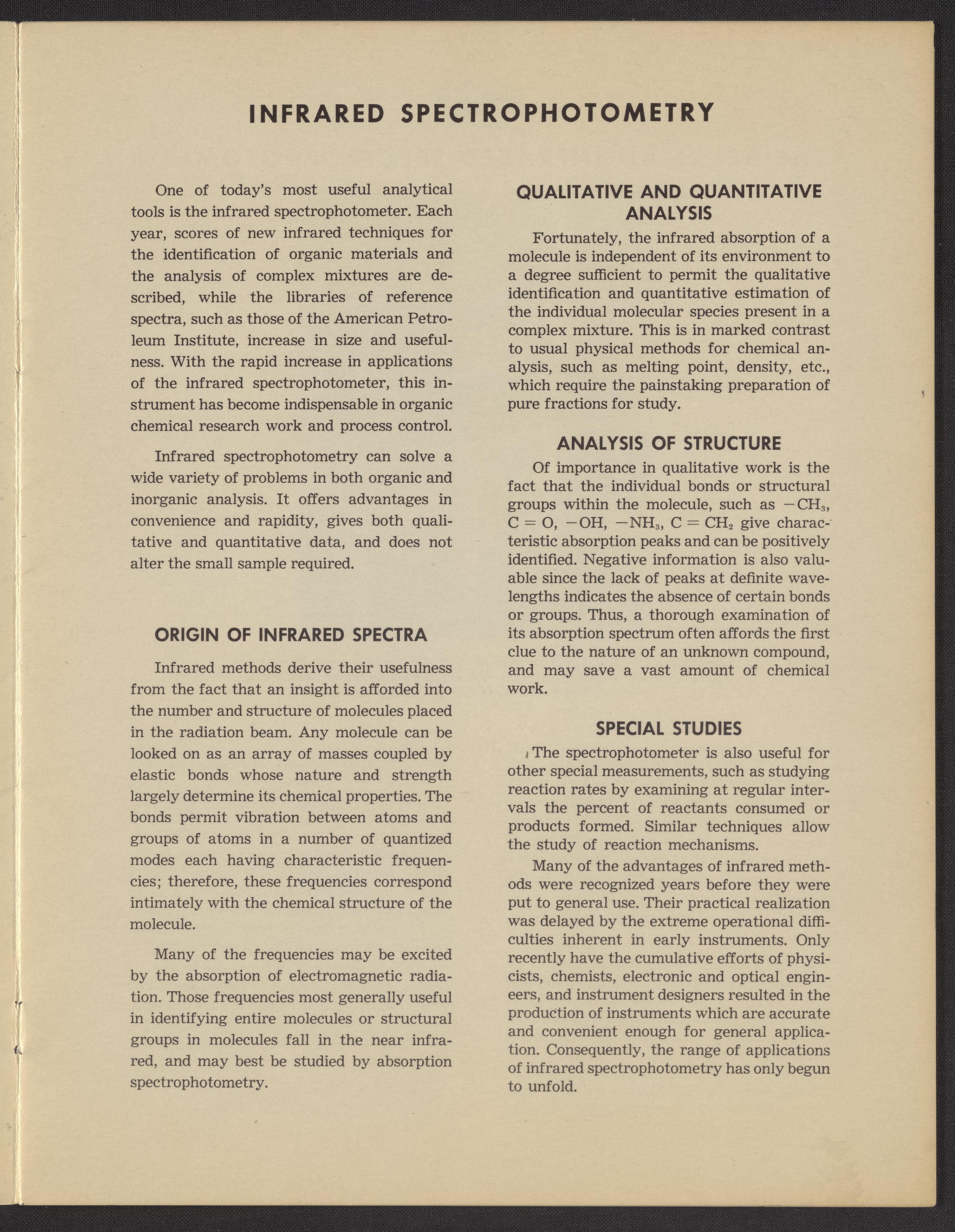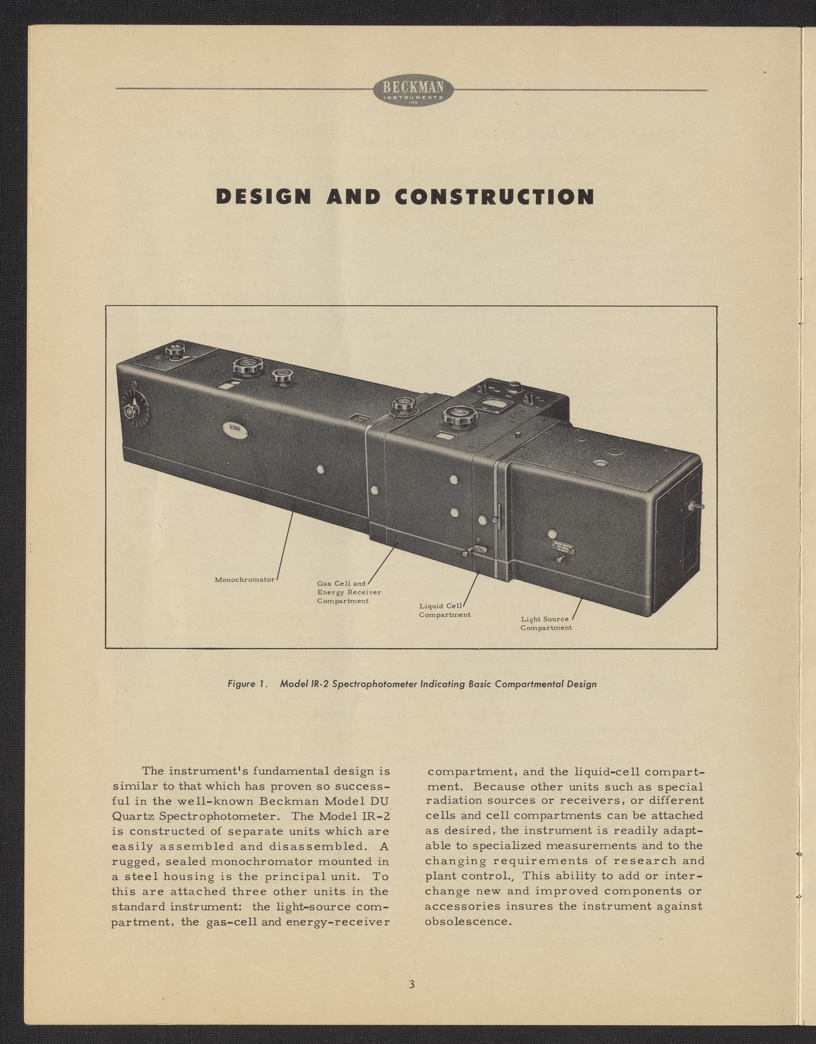 Beckman Instruments, Inc. “Beckman Infrared Spectrophotometer Model IR-2,” 1946–1955. Beckman Historical Collection, Box 18, Folder 14. Science History Institute. Philadelphia. https://digital.sciencehistory.org/works/xd07gt25z.