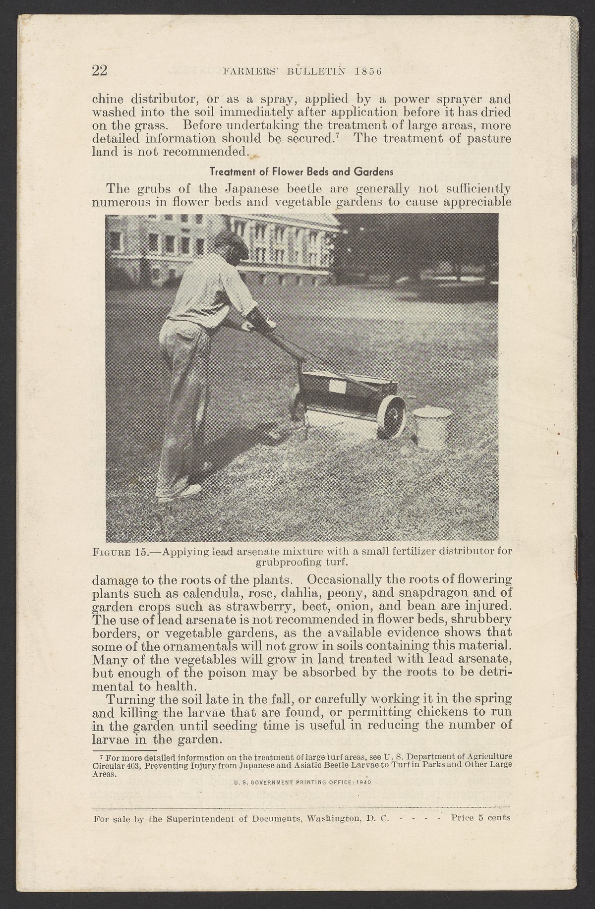 Small JPG1200 x 1843px — 544 KBFull-sized JPG2509 x 3853px — 2.3 MBOriginal fileTIFF — 2509 x 3853px — 27.7 MBJournal number 1856 in the Farmers' Bulletin series published by the United States Department of Agriculture. The article describes the Japanese beetle, a pest brought to the United States from Japan, including its seasonal history, harmful habits, and the methods found useful in destroying the insect or preventing injury to crops and plants. The work includes both black and white and color illustrations. This issue was contributed to by the United States Bureau of Entomology and Plant Quarantine.