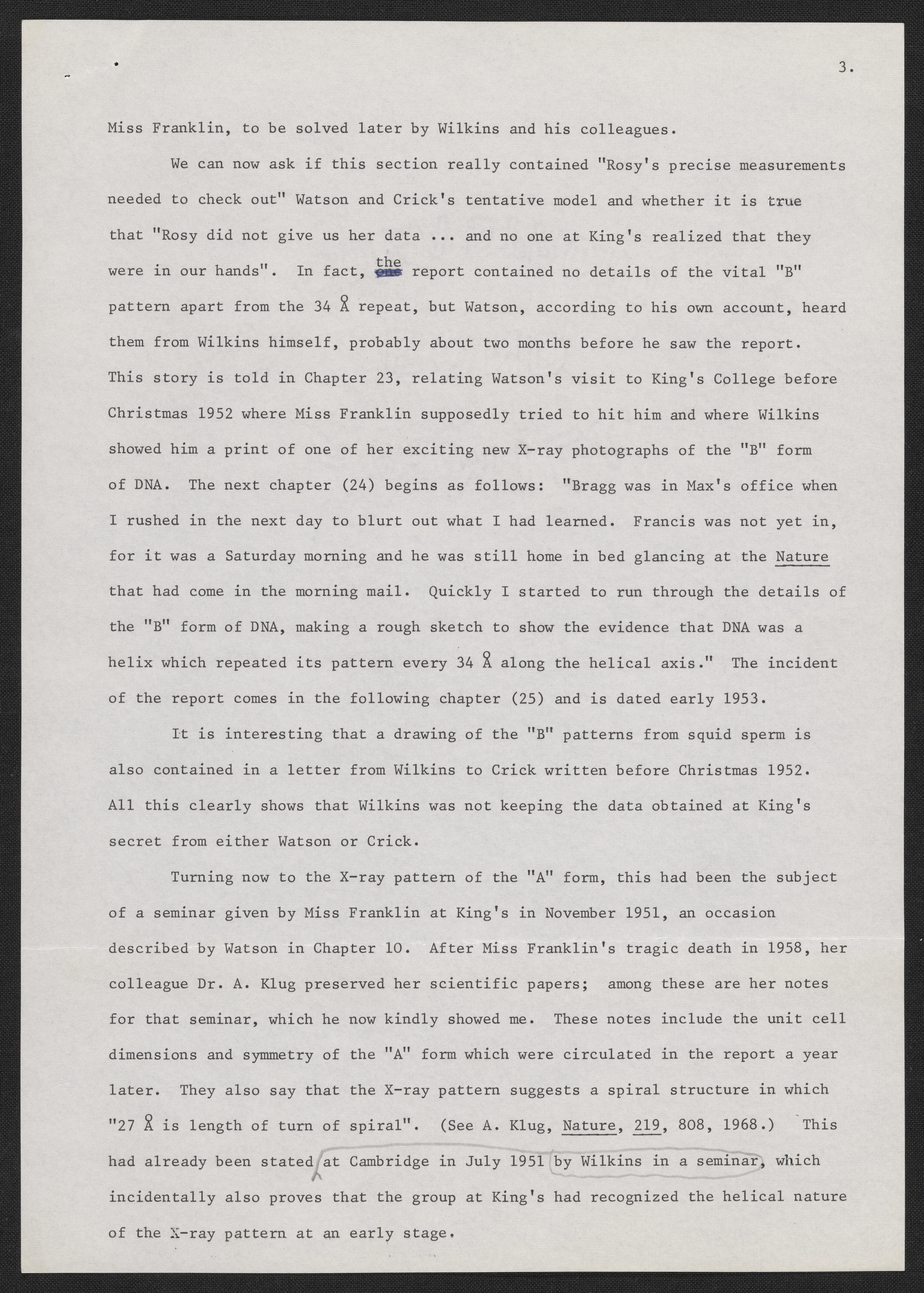 Small JPG1200 x 1701px — 351 KBLarge JPG2880 x 4081px — 1.8 MBFull-sized JPG5183 x 7345px — 5.5 MBOriginal fileTIFF — 5183 x 7345px — 109 MBDrafts of a letter to the editor of Scientific American, written by Max Perutz (1914-2002), regarding Andre Lwoff's (1902-1994) review of James D. Watson's (1928-2025) book The Double Helix.