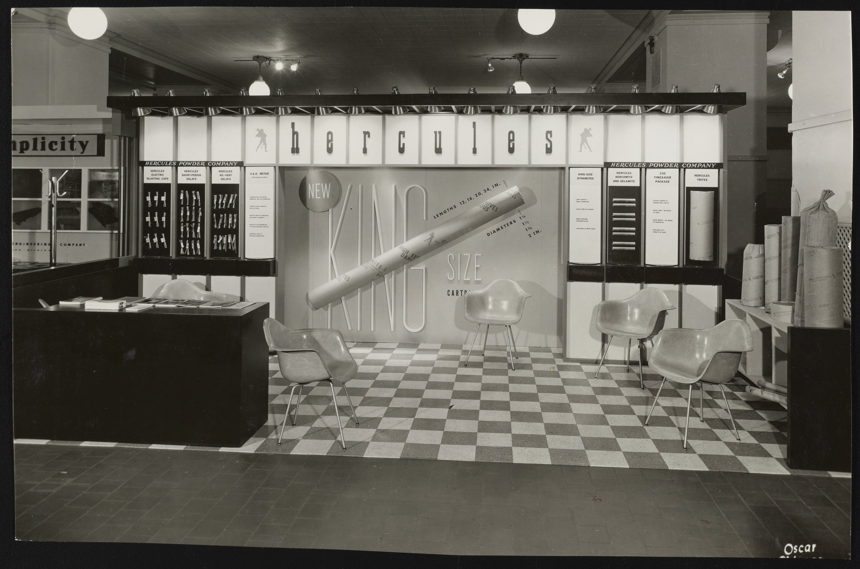 General view of the Hercules Powder Company display at the 1956 National Crushed Stone Association trade show held at the Conrad Hilton Hotel in Chicago.