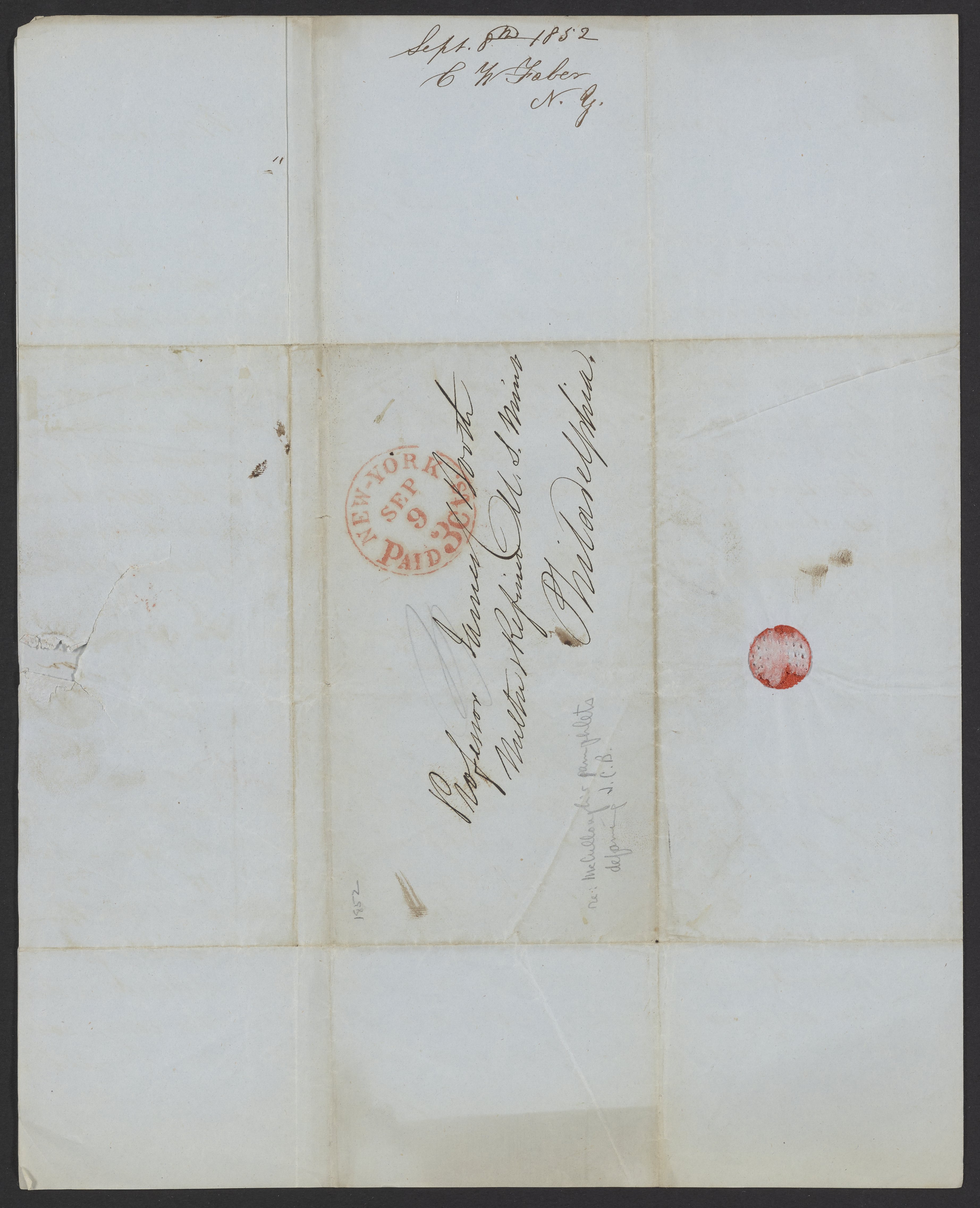 Letter from Conrad William Faber to James Curtis Booth, September 8, 1852